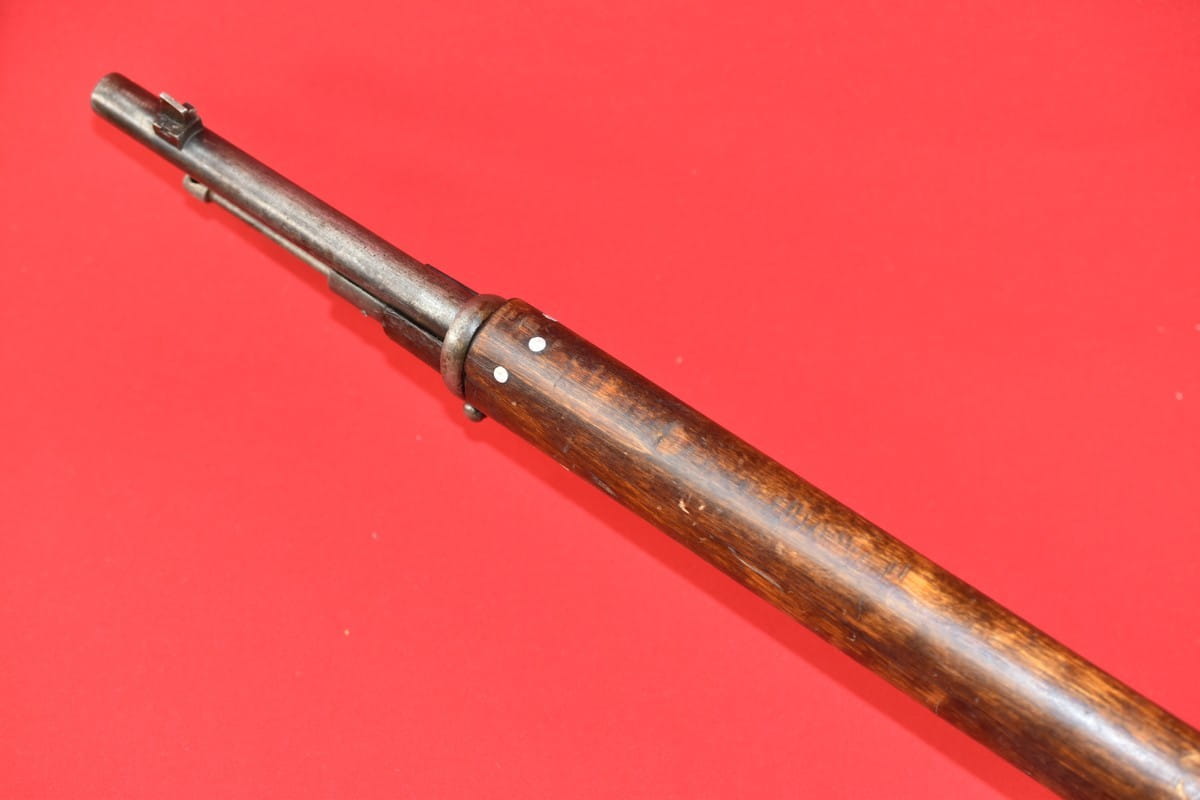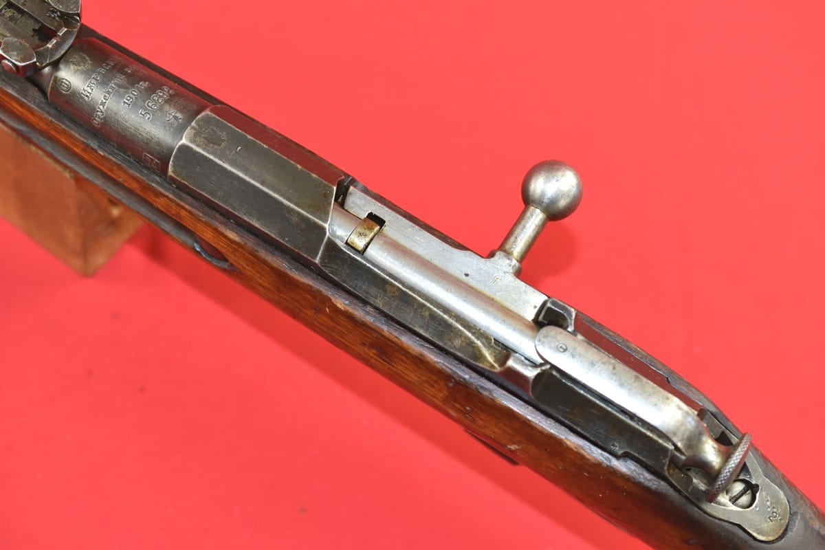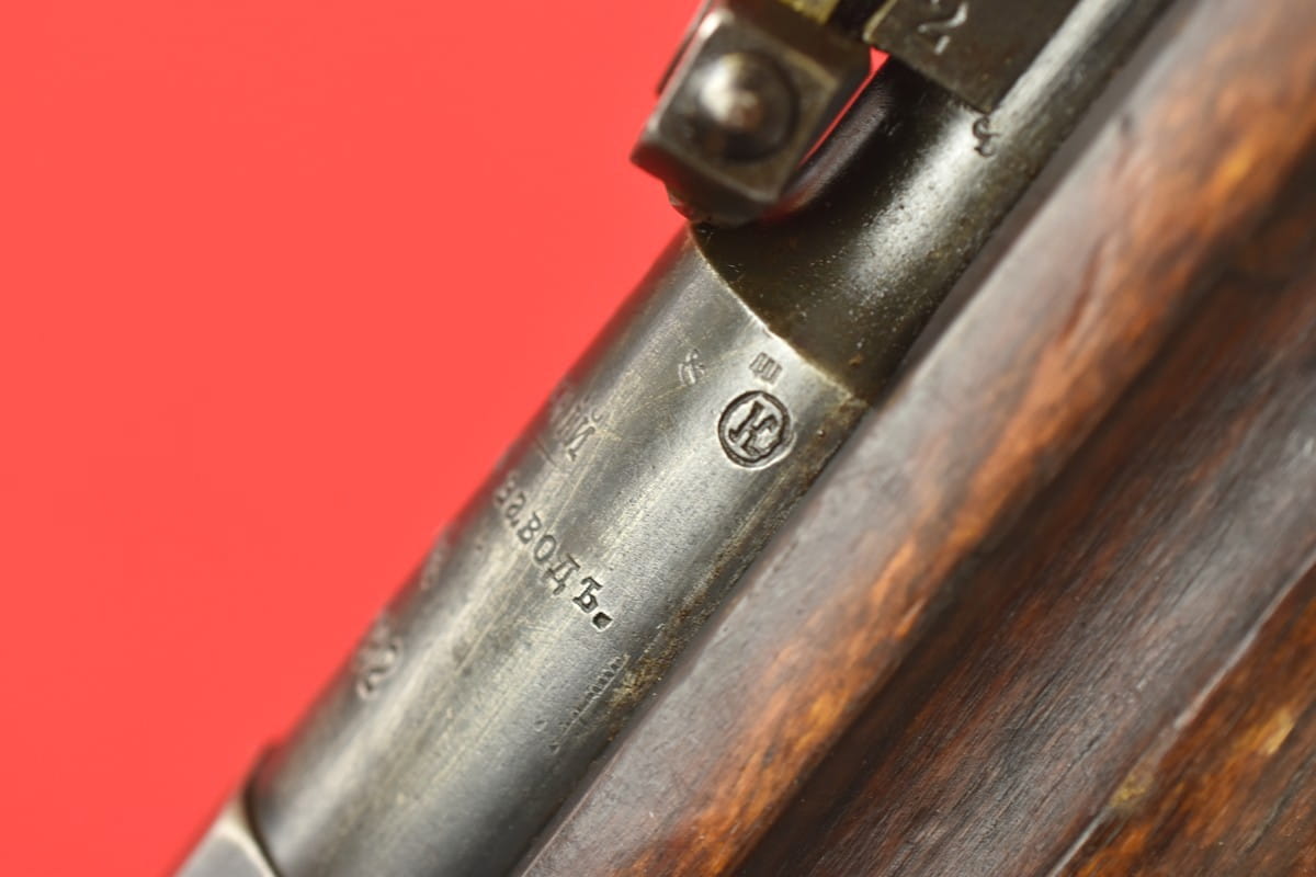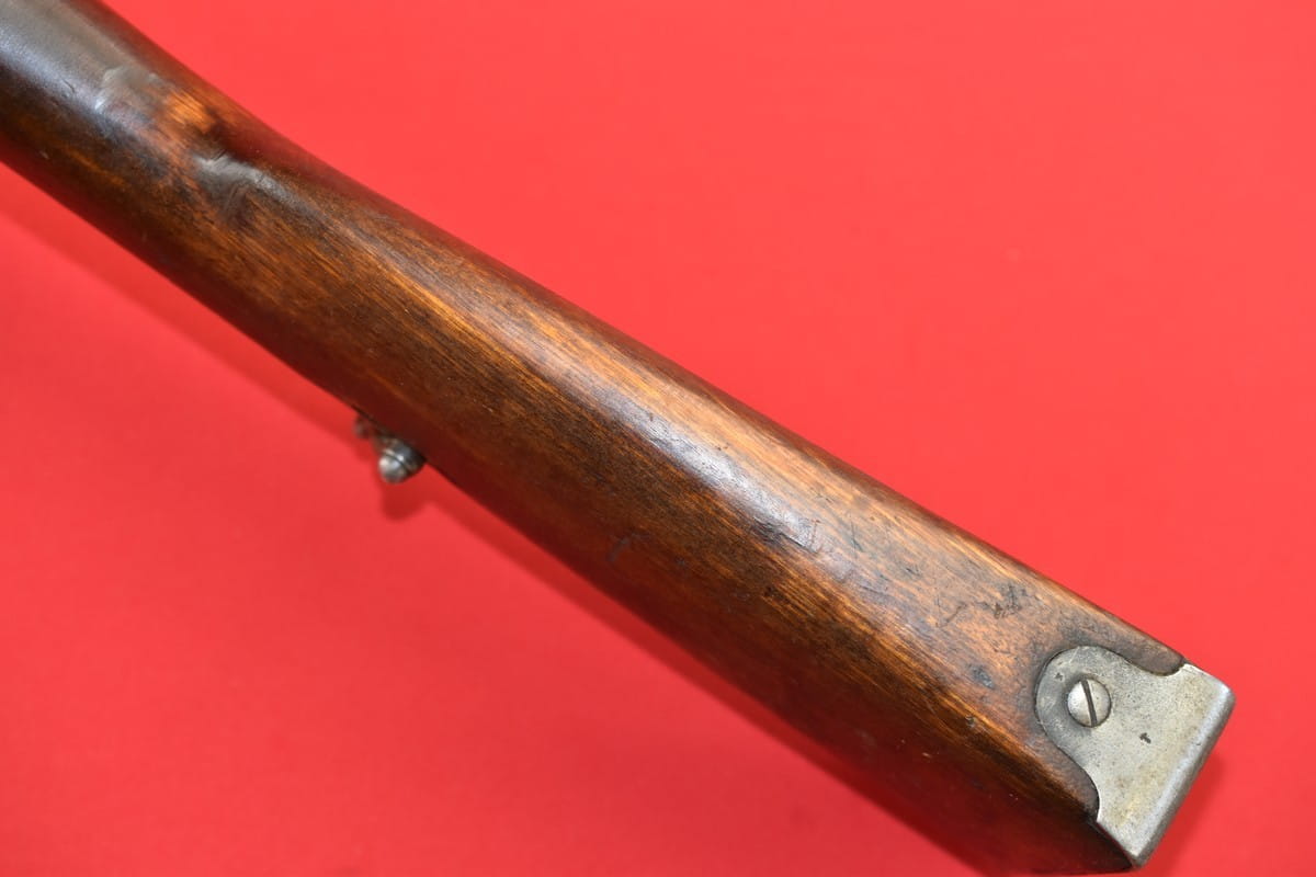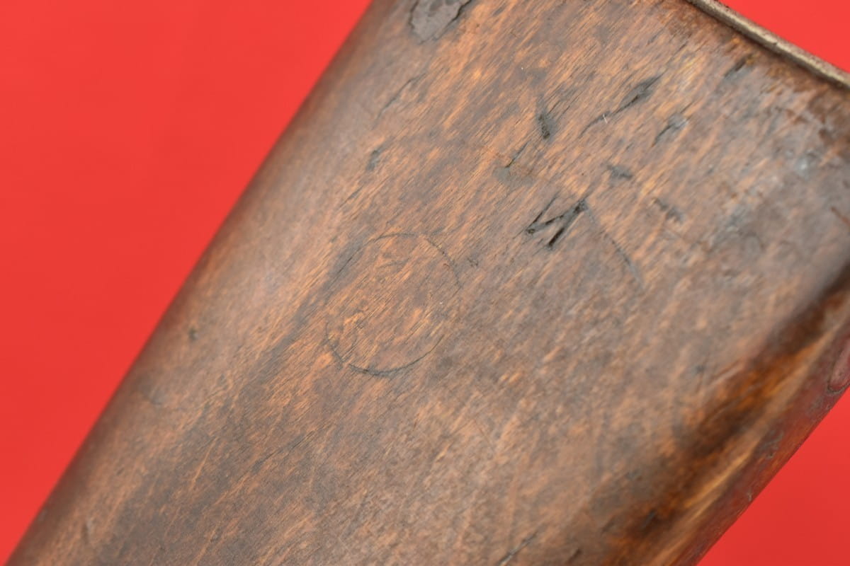 #2713 Karabin: Mosin 1891 produkcji Iżewska z roku 1901 - kal. 7,62x54R. Używany w armii fińskiej - stąd widoczne fińskie ingerencje, oraz fińska kolba. Przewód lufy w stanie słabym. Lufa wystrzelana, gwint jest widoczny - ale równomiernie i całkowicie pokryty siecią wżerów. Zrobiona jest korona lufy - na głębkość 4 cm. Broń bardziej do kolekcji, niż do strzelania. Ogólnie nie kupilibyśmy broni w tym stanie - ale rocznik 1901 jest zacny. No i jest to dalej M1891, nie apgrejdowany do 1891/30.