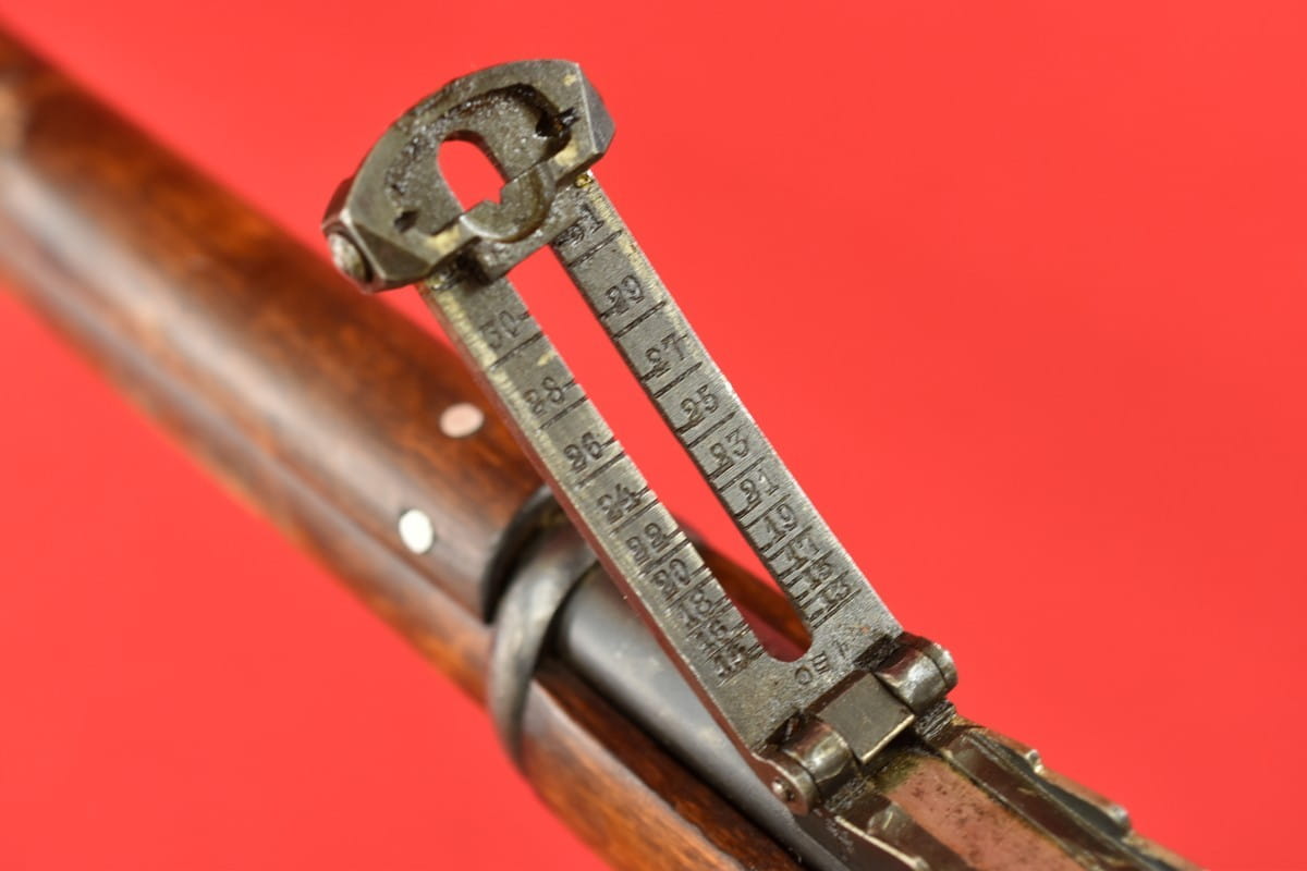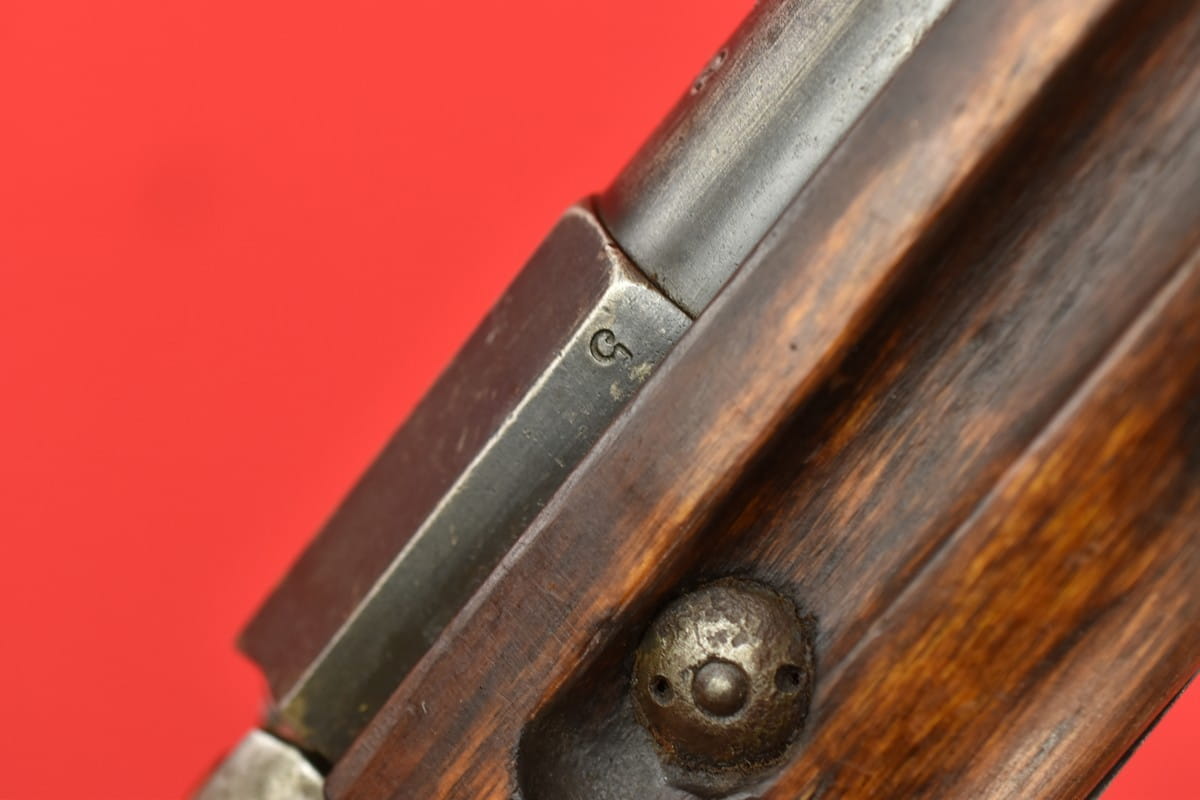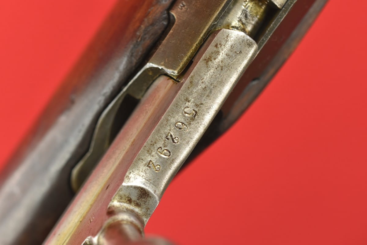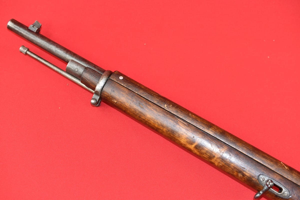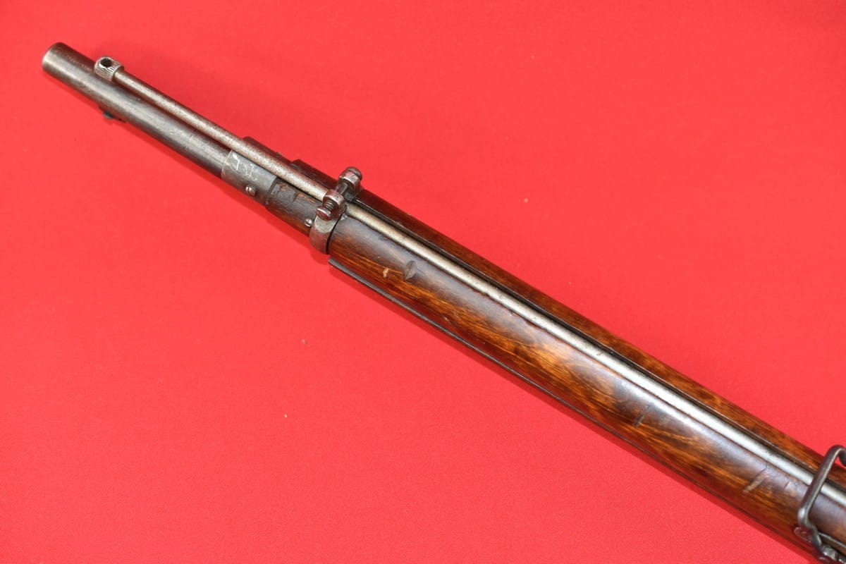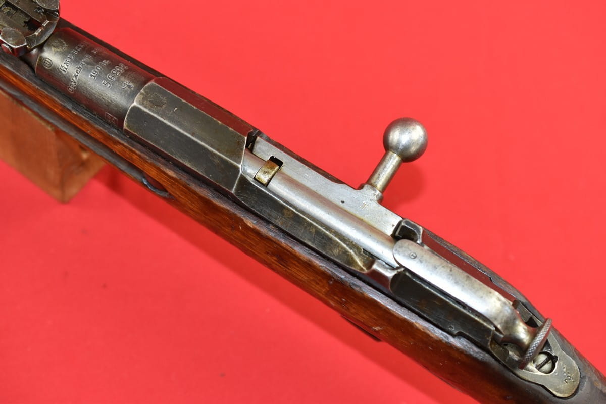 #2713 Karabin: Mosin 1891 produkcji Iżewska z roku 1901 - kal. 7,62x54R. Używany w armii fińskiej - stąd widoczne fińskie ingerencje, oraz fińska kolba. Przewód lufy w stanie słabym. Lufa wystrzelana, gwint jest widoczny - ale równomiernie i całkowicie pokryty siecią wżerów. Zrobiona jest korona lufy - na głębkość 4 cm. Broń bardziej do kolekcji, niż do strzelania. Ogólnie nie kupilibyśmy broni w tym stanie - ale rocznik 1901 jest zacny. No i jest to dalej M1891, nie apgrejdowany do 1891/30.