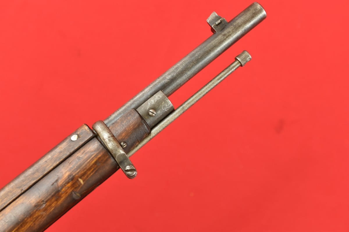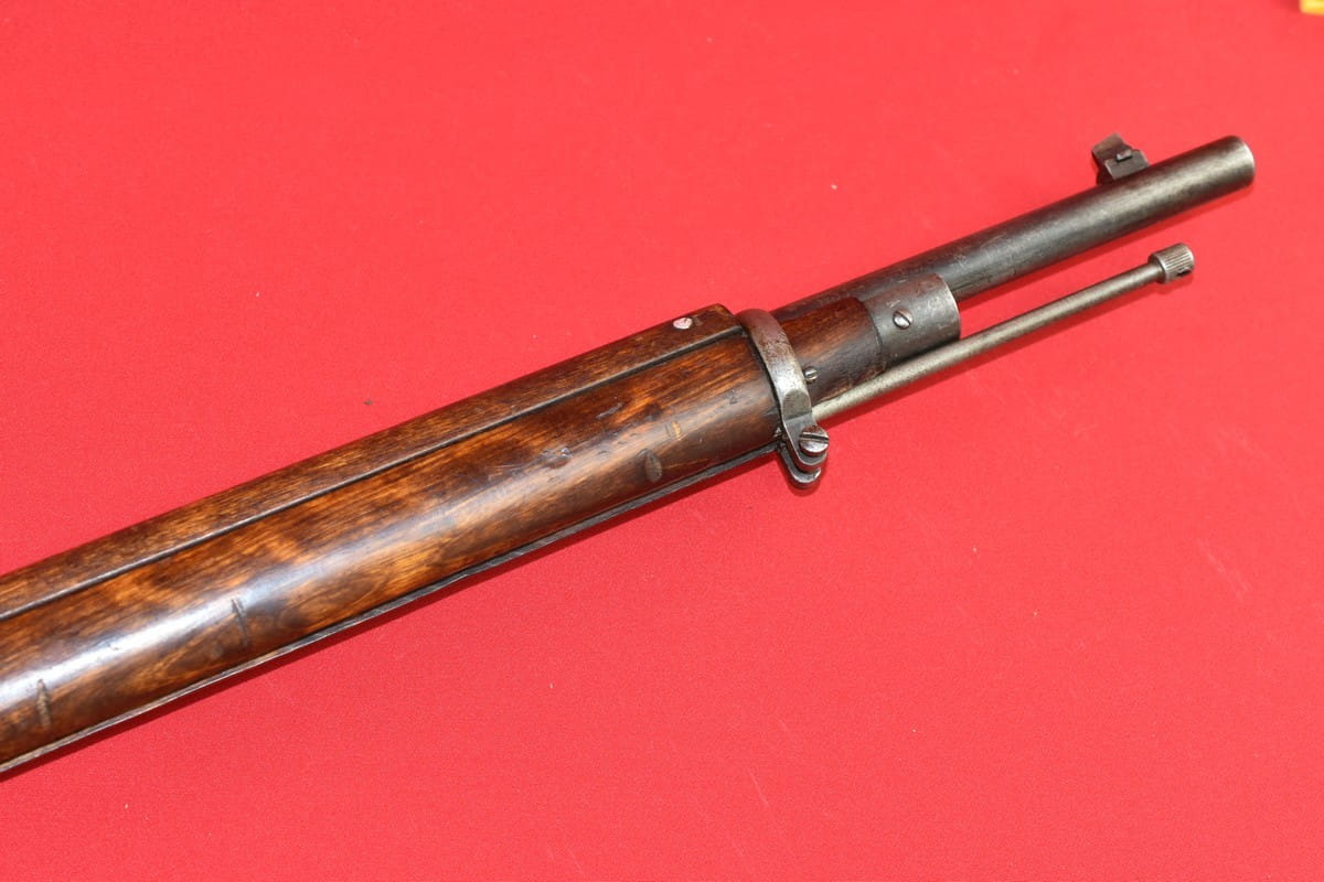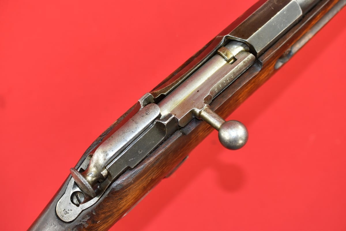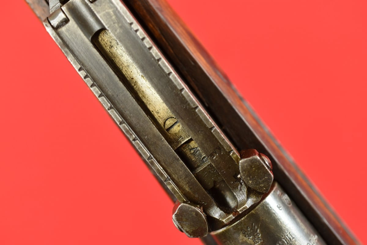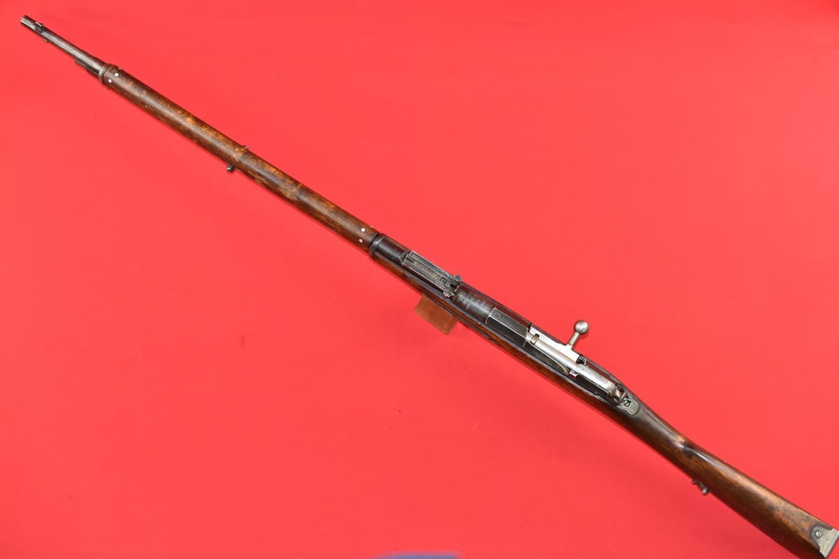 #2713 Karabin: Mosin 1891 produkcji Iżewska z roku 1901 - kal. 7,62x54R. Używany w armii fińskiej - stąd widoczne fińskie ingerencje, oraz fińska kolba. Przewód lufy w stanie słabym. Lufa wystrzelana, gwint jest widoczny - ale równomiernie i całkowicie pokryty siecią wżerów. Zrobiona jest korona lufy - na głębkość 4 cm. Broń bardziej do kolekcji, niż do strzelania. Ogólnie nie kupilibyśmy broni w tym stanie - ale rocznik 1901 jest zacny. No i jest to dalej M1891, nie apgrejdowany do 1891/30.