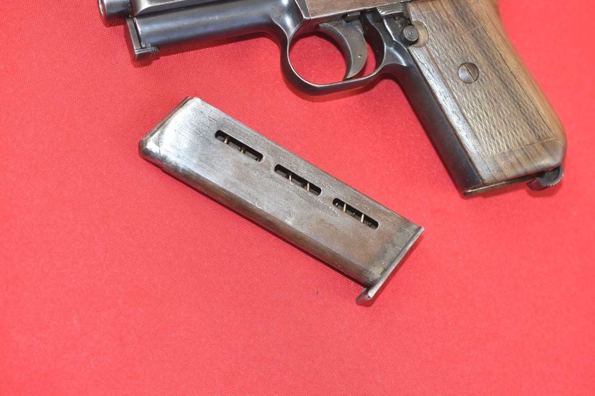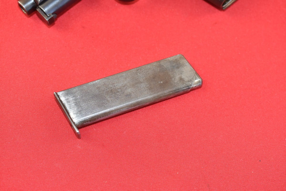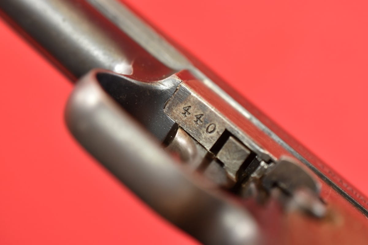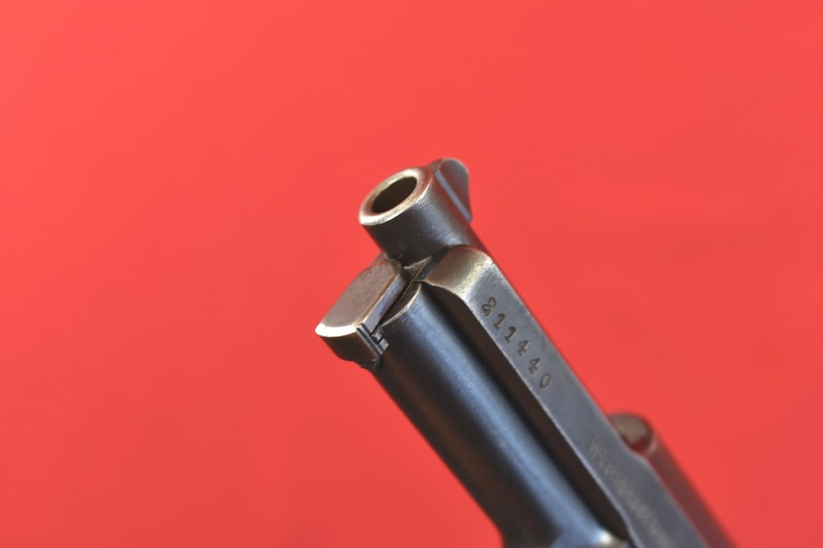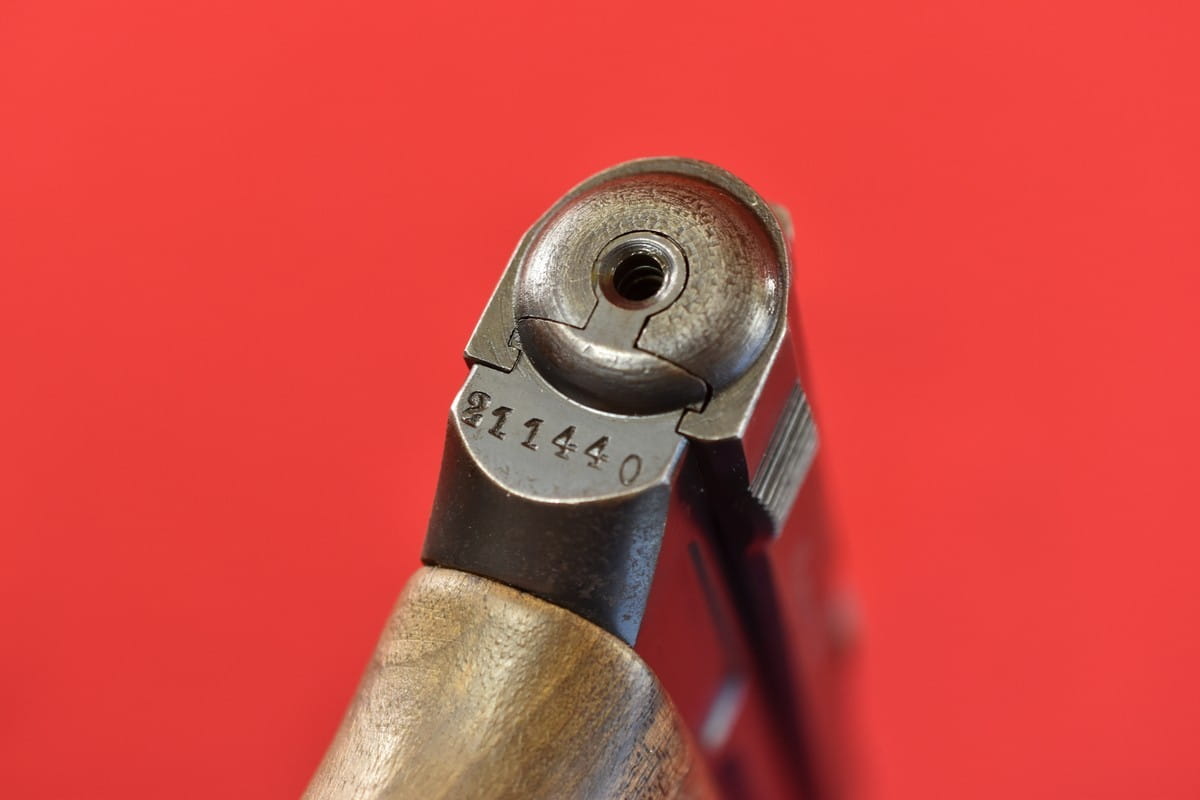 #3138 Mauser 1914 kal. 7,65 mm. Bardzo ładny egzemplarz - oryginalna oksyda. Nic nie było kombinowane, brak powojennych stempli - tylko oznaczenia fabryczne. Brak napraw, brak uszkodzeń. Przewód lufy: gwint ostry, widać drobne wżery. Okładzina drewniana nadpęknięta (nie jest pęknięta na dwie części). Magazynek oryginalny, z epoki. Numer seryjny wskazuje na produkcję z okresu I wojny światowej.
