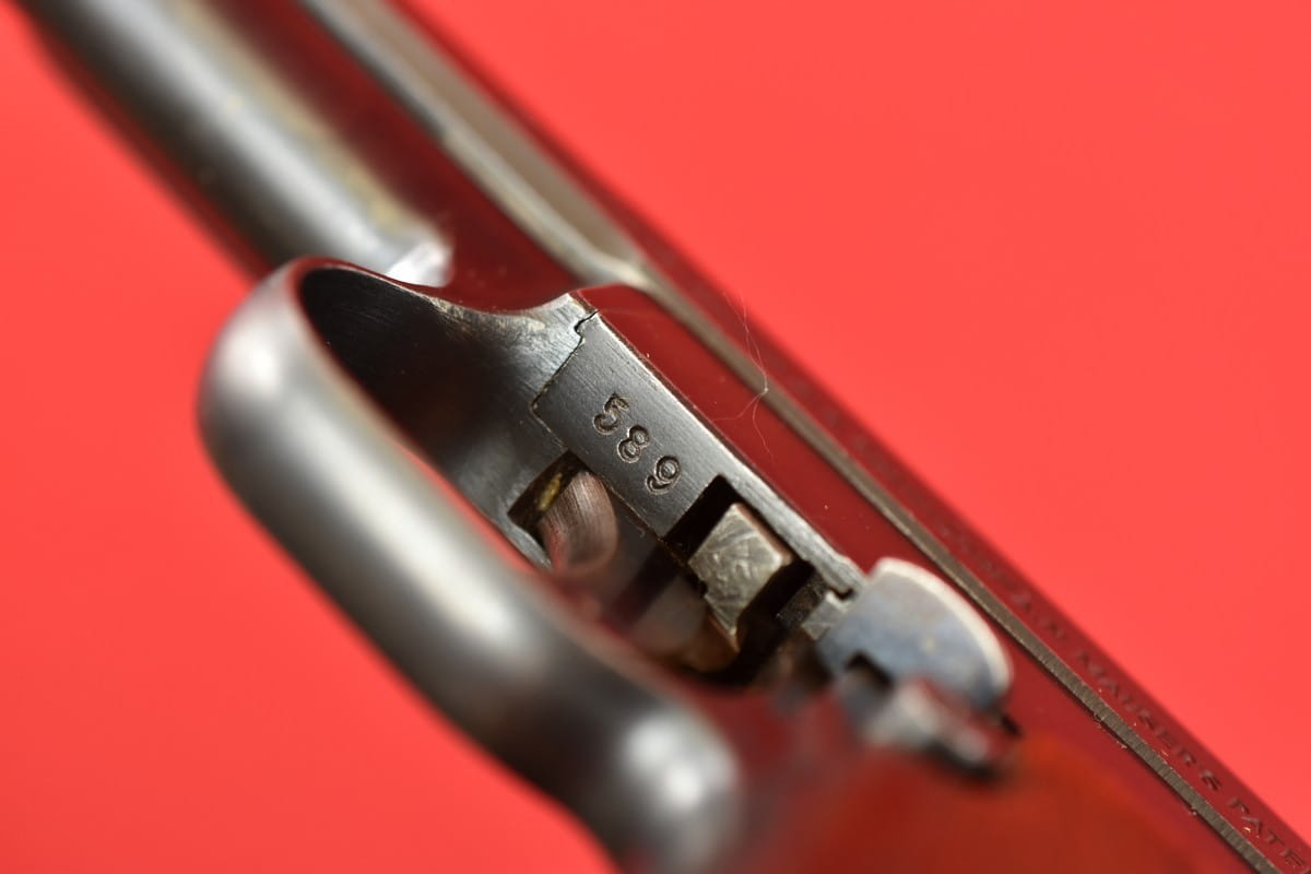 #3141 Mauser 1914 kal. 7,65 mm. Bardzo ładny egzemplarz - oryginalna oksyda, piękne okładziny. Nic nie było kombinowane, brak powojennych stempli - tylko oznaczenia fabryczne. Brak napraw, brak uszkodzeń. Przewód lufy: bardzo dobry, lekko używany. Okładzina drewniana bez uszkodzeń, bez napraw. Numer seryjny wskazuje na produkcję z okresu I wojny światowej. W komplecie oryginalne, fabryczne pudełko (bardzo rzadko występujące), oryginalna instrukcja (nie jest to żaden reprint, kopia, czy inny fejk), oraz dwa magazynki. Taki komplet nie zdarza się codziennie i nie leży za każdym rogiem.