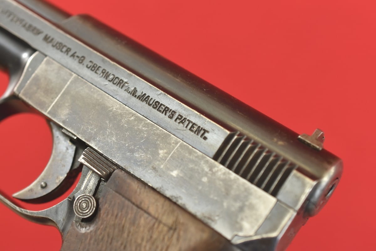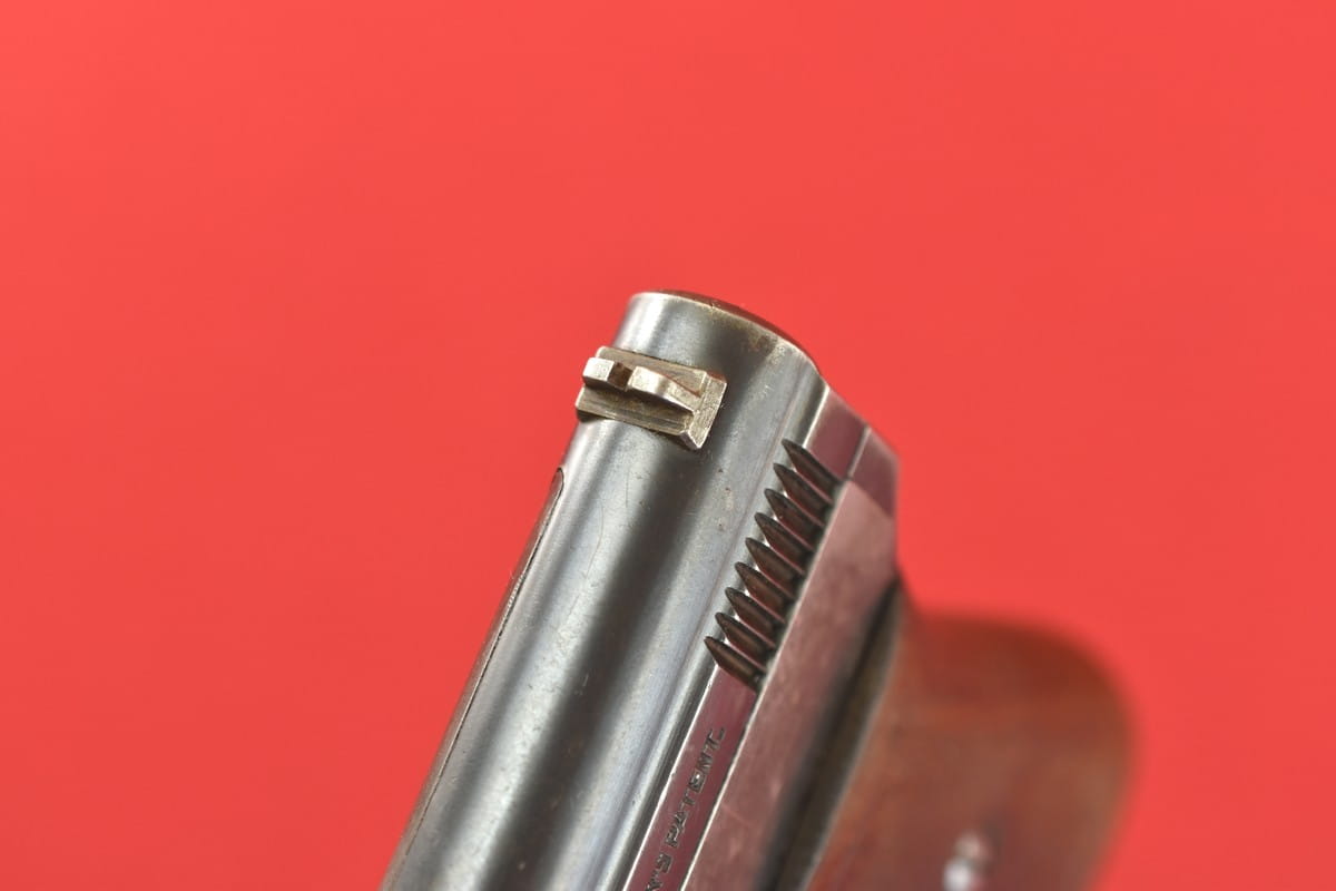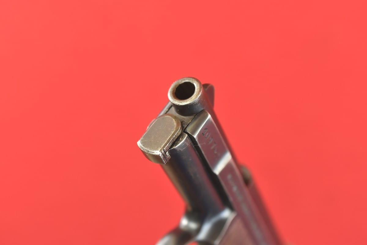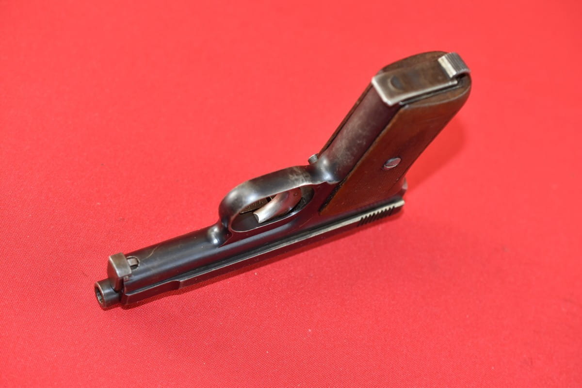 #3267 Mauser 1910/14 Neues Modell kal. 6,35 mm. Bardzo ładny egzemplarz - oryginalna oksyda, nieuszkodzona okładzina. Nic nie było kombinowane, brak powojennych stempli - tylko oznaczenia fabryczne. Brak napraw, brak uszkodzeń. Przewód lufy: gwint ostry, widać ogólne zmatowienie.