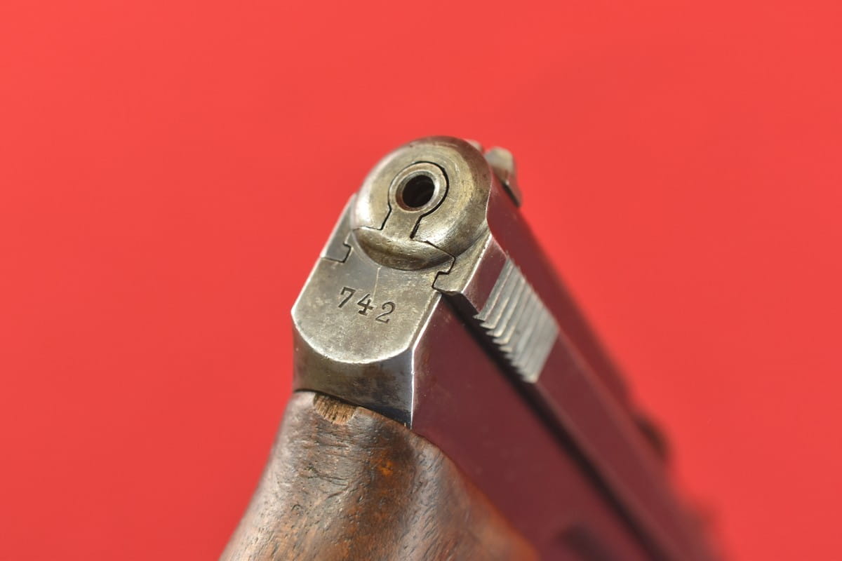 Neues Modell produkowany był w latach 1914-1919. Oferowany egzemplarz to drugi wariant Neues Modell - już bez logo Mausera, a atest jest naniesiony poziomo.
