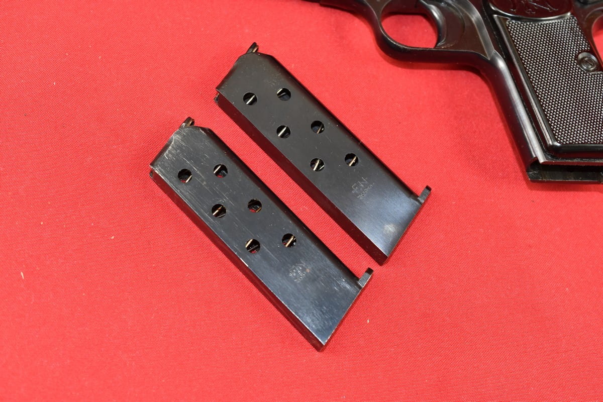 Produkcja powojenna. W komplecie dwa magazynki, oraz oryginalne, fabryczne pudełko (nadpęknięte).