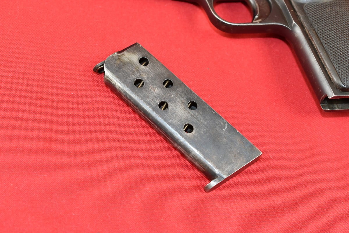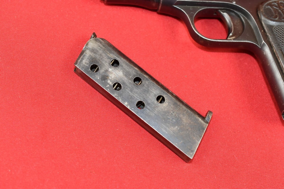Broń zgodna numerycznie, oksyda oryginalna. Magazynek z epoki (nie powojenny).