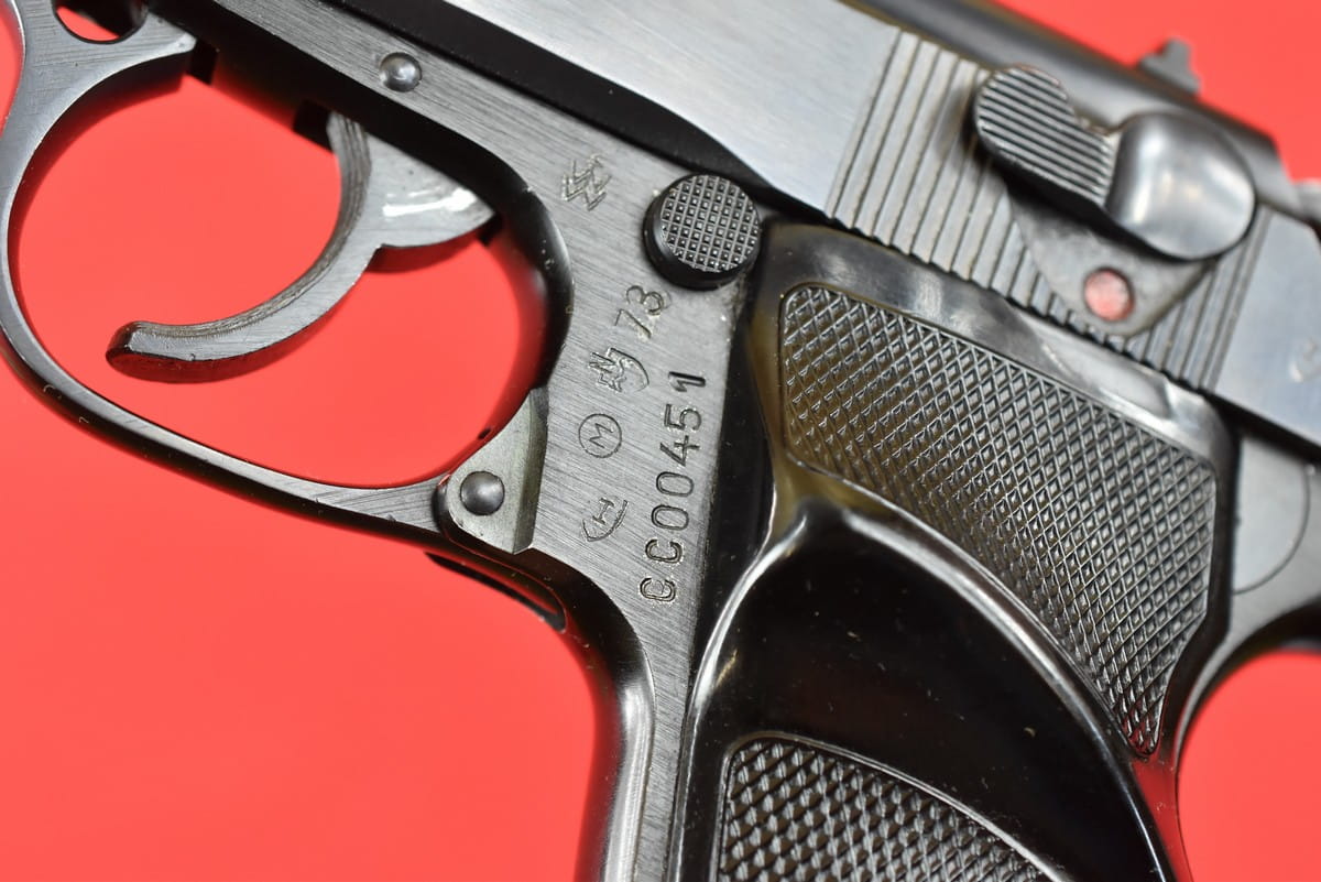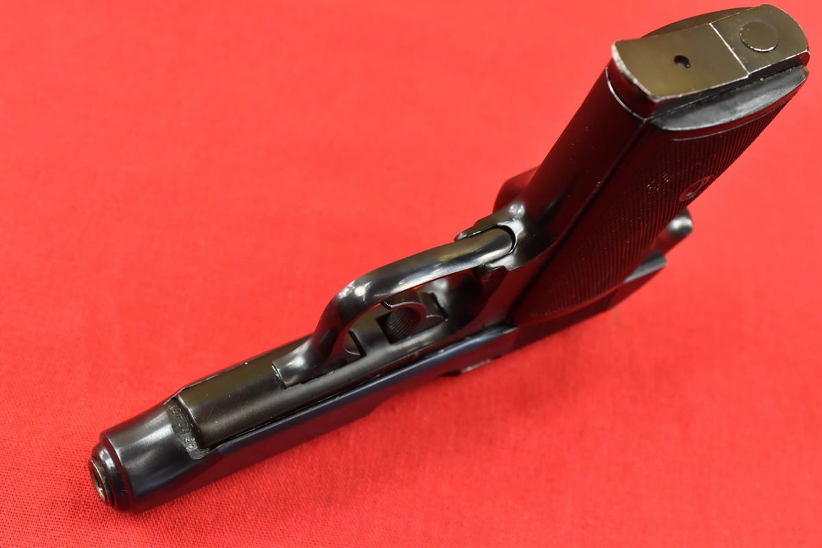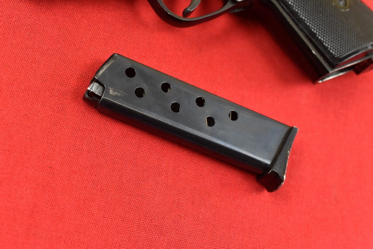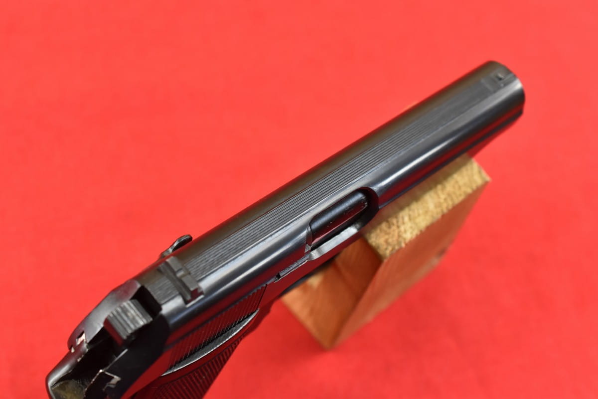 #1303 Pistolet FEG AP66 wyprodukowany dla niemieckiej firmy Hege. Kal. 7,65 mm Browning. Stan bardzo dobry, przewód lufy idealny, lustro. Widoczne niemieckie stemple ostrzału z roku 1973. Więcej informacji na temat tego modelu: TUTAJ