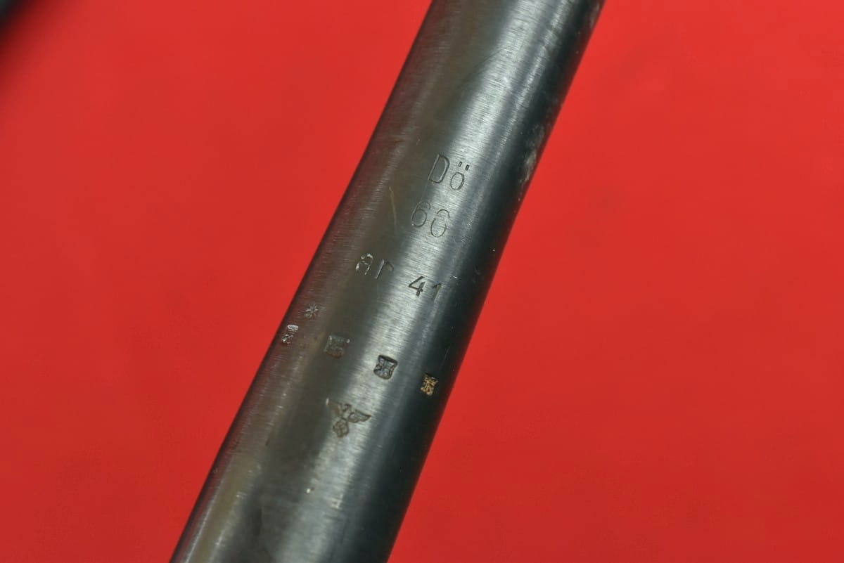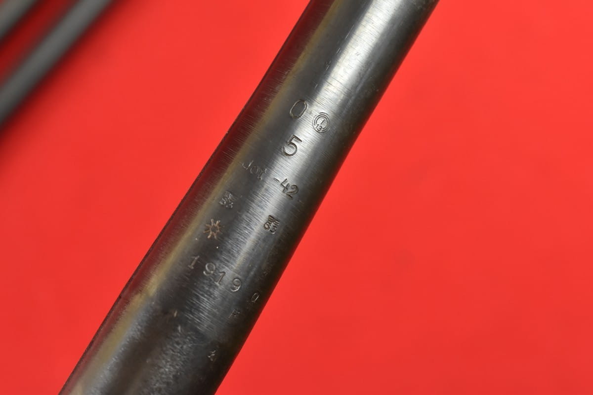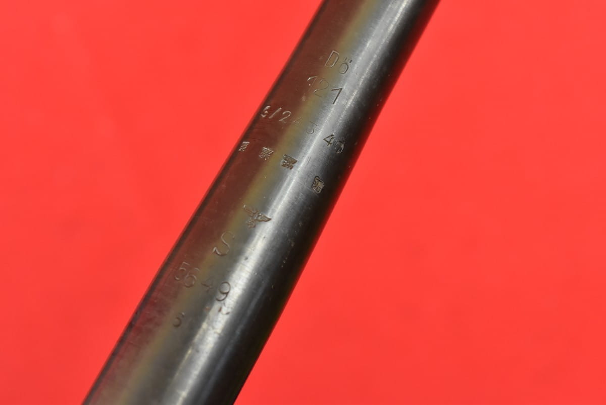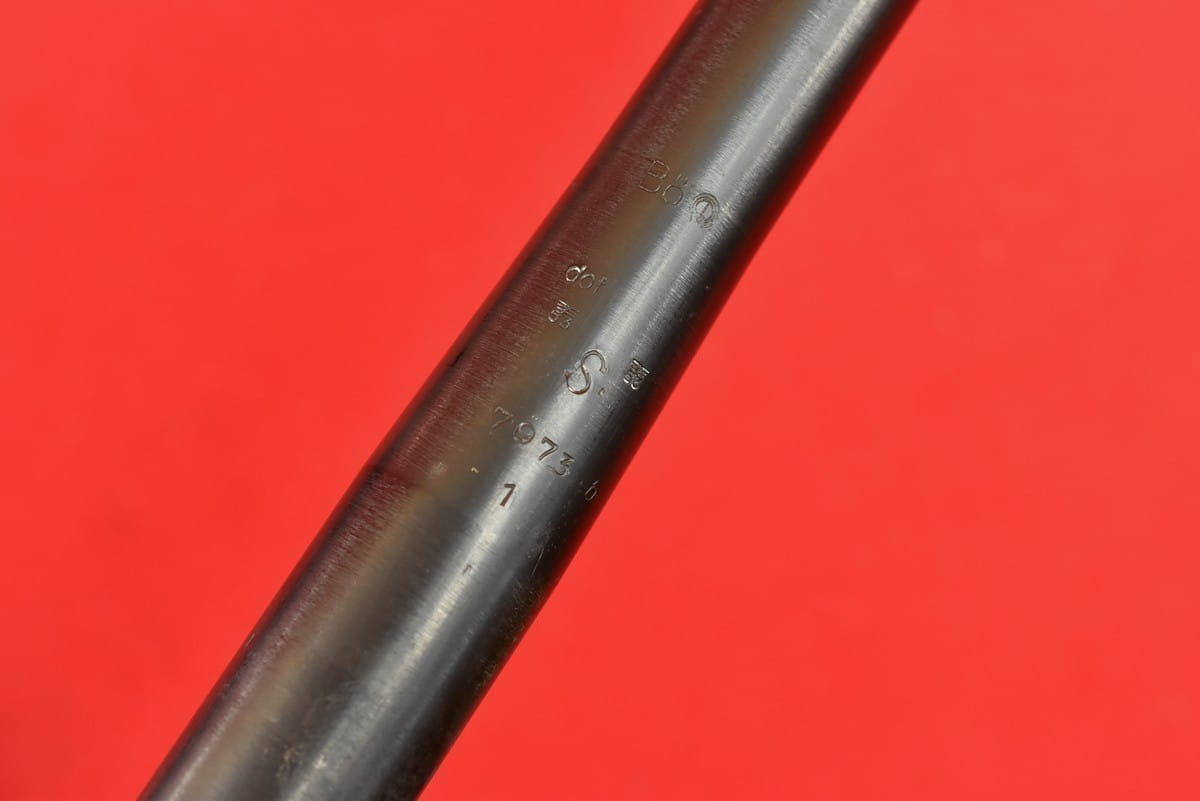 #2034  Lufy do karabinu maszynowego M34. Produkcja niemiecka, oryginalna, sprzed maja 1945 roku. Nie jest to żadna produkcja powojenna. Pełne fabryczne oznaczenia. Lufy po wojnie używane były w Jugosławii - stąd nowa oksyda oraz dodatkowe numery wykonane elektropisakiem. Przewody idealne - błysk, lustro, gwint ostry, fabryczny.