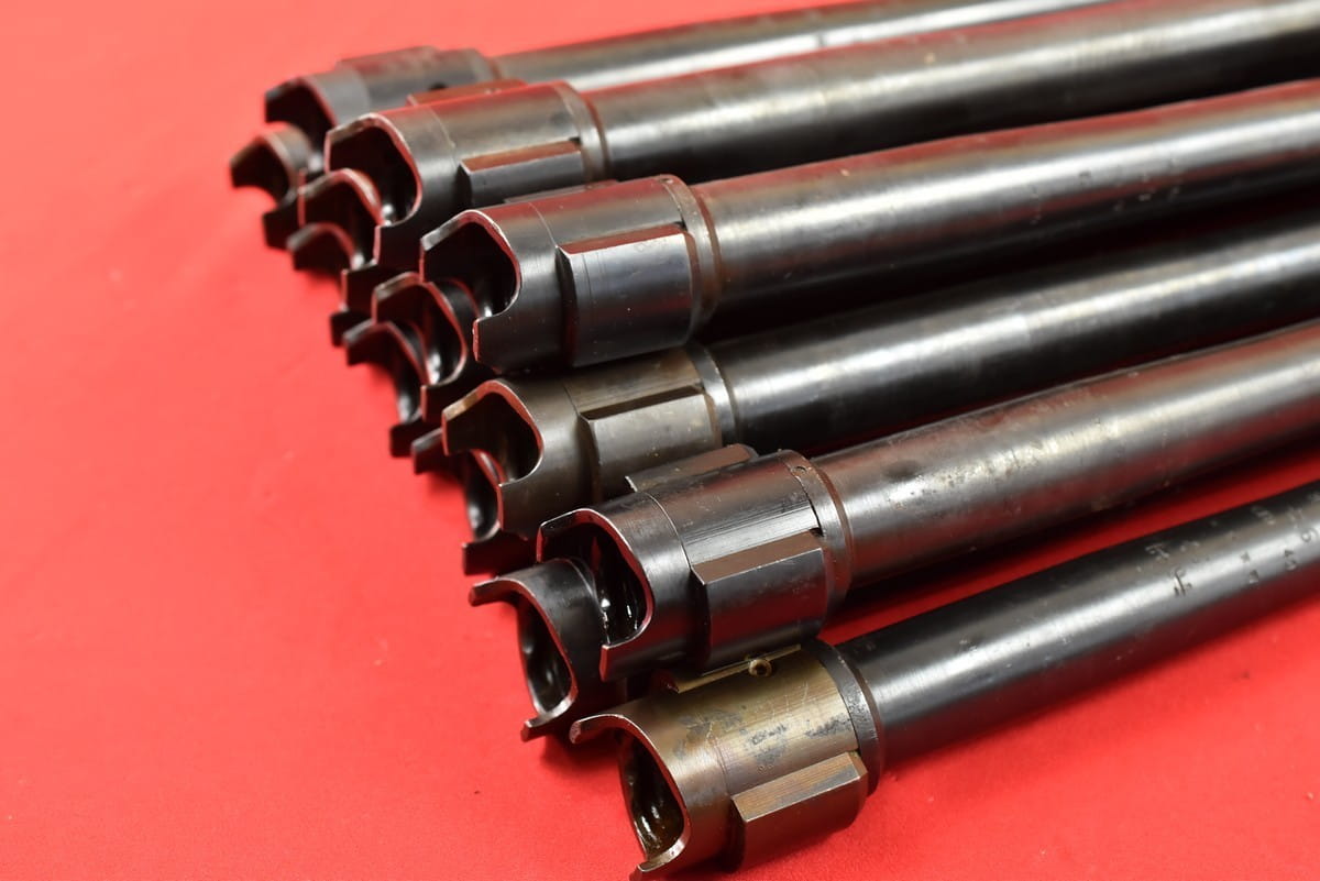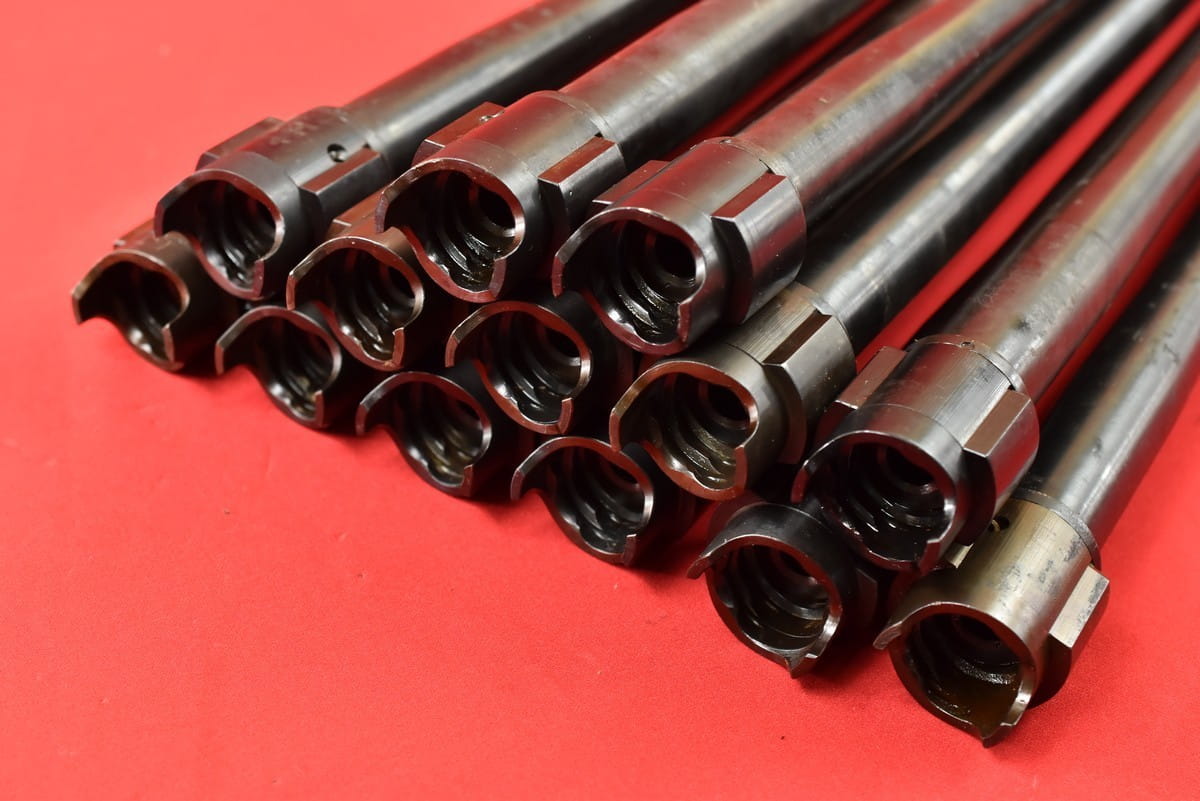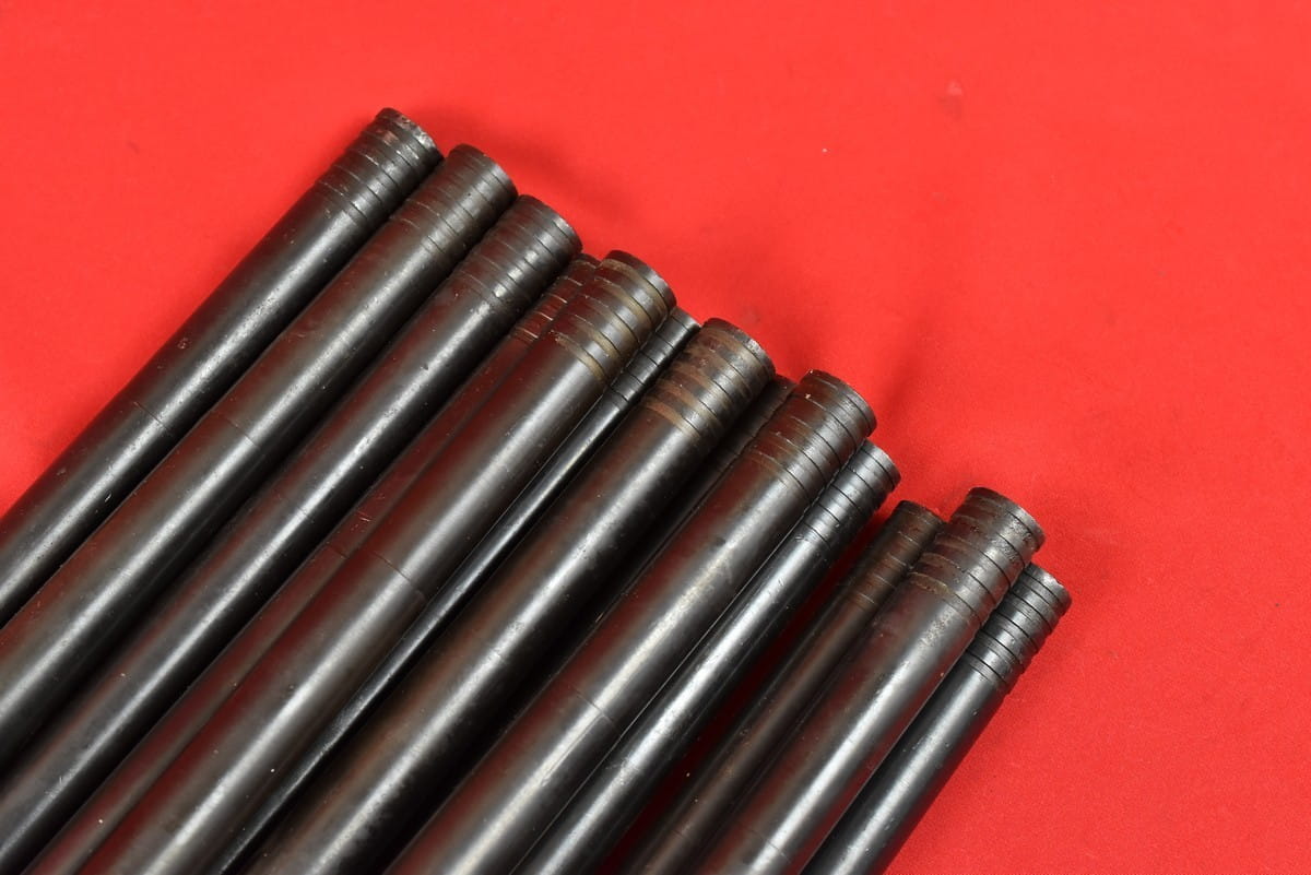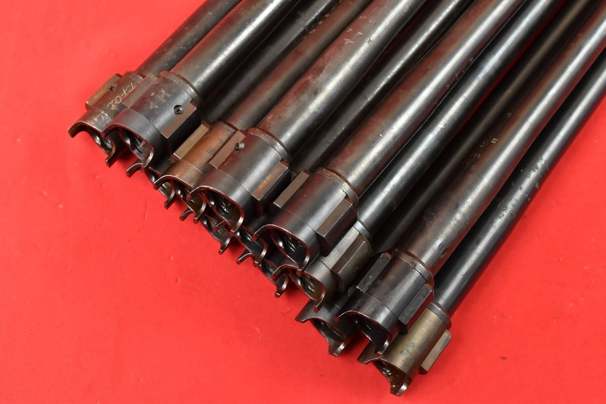 #2034  Lufy do karabinu maszynowego M34. Produkcja niemiecka, oryginalna, sprzed maja 1945 roku. Nie jest to żadna produkcja powojenna. Pełne fabryczne oznaczenia. Lufy po wojnie używane były w Jugosławii - stąd nowa oksyda oraz dodatkowe numery wykonane elektropisakiem. Przewody idealne - błysk, lustro, gwint ostry, fabryczny.