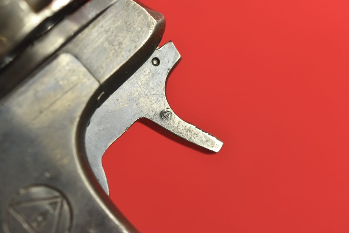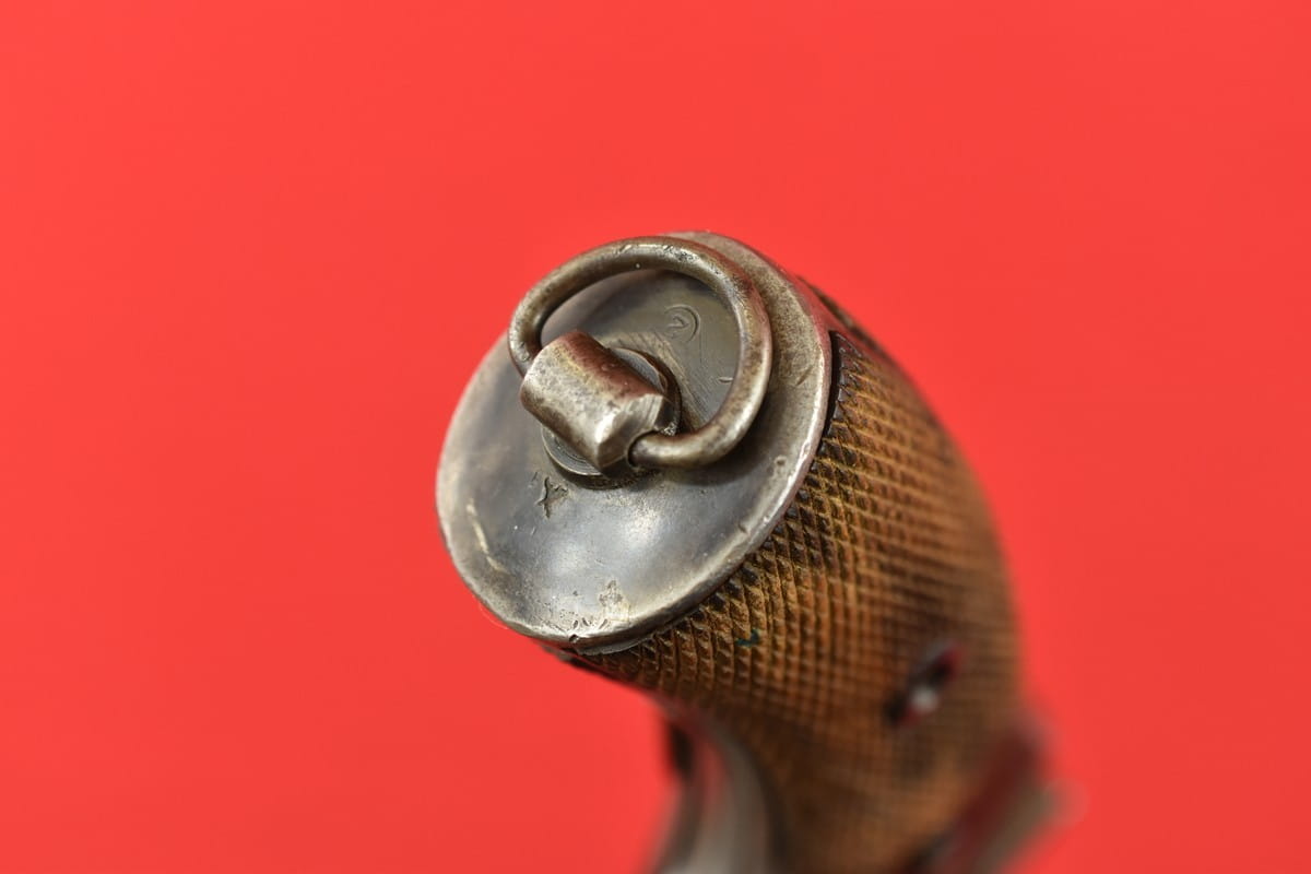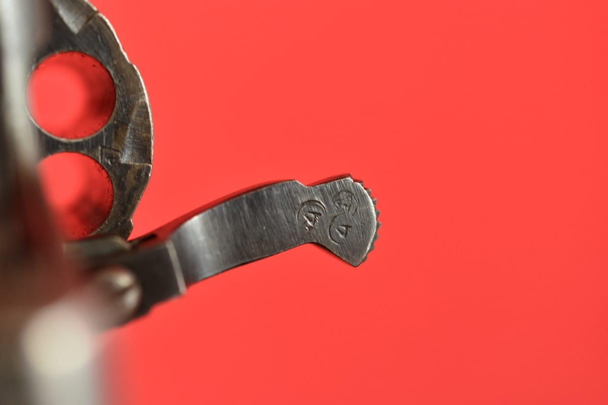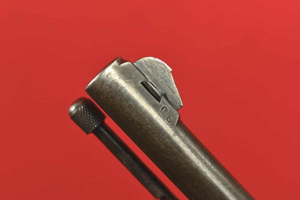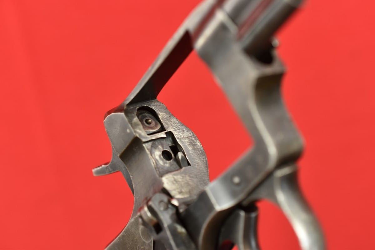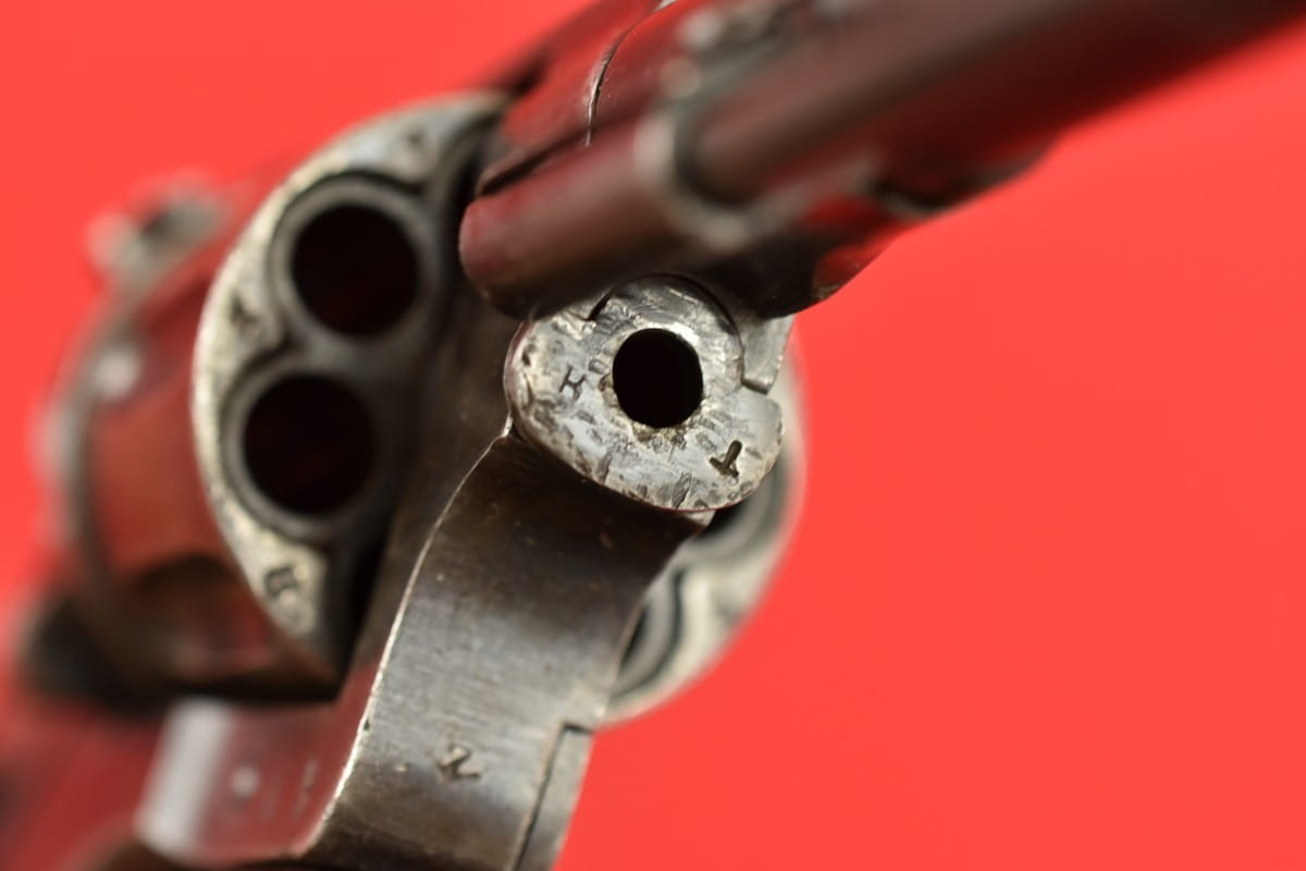 #2649 Rewolwer Nagant M95 kal. 7,62 Nagant. Produkcja zakładów w Iżewsku z roku 1943. Niezgodny numerycznie - bęben jest również produkcji Iżewska (widoczne logo) - ale ma inny numer. Oksyda oryginalna, wojenna, biedna, a powierzchnie z widoczną obróbką. Egzemplarz nie remontowany po wojnie. Przewód lufy w stanie złym - gwint wyraźny na całej długości, ale przewód w całości jest pokryty silnymi wżerami. Oczywiście można z niego jak najbardziej strzelać, choć bardziej nadaje się do kolekcji. Wariant z samonapinaniem.
