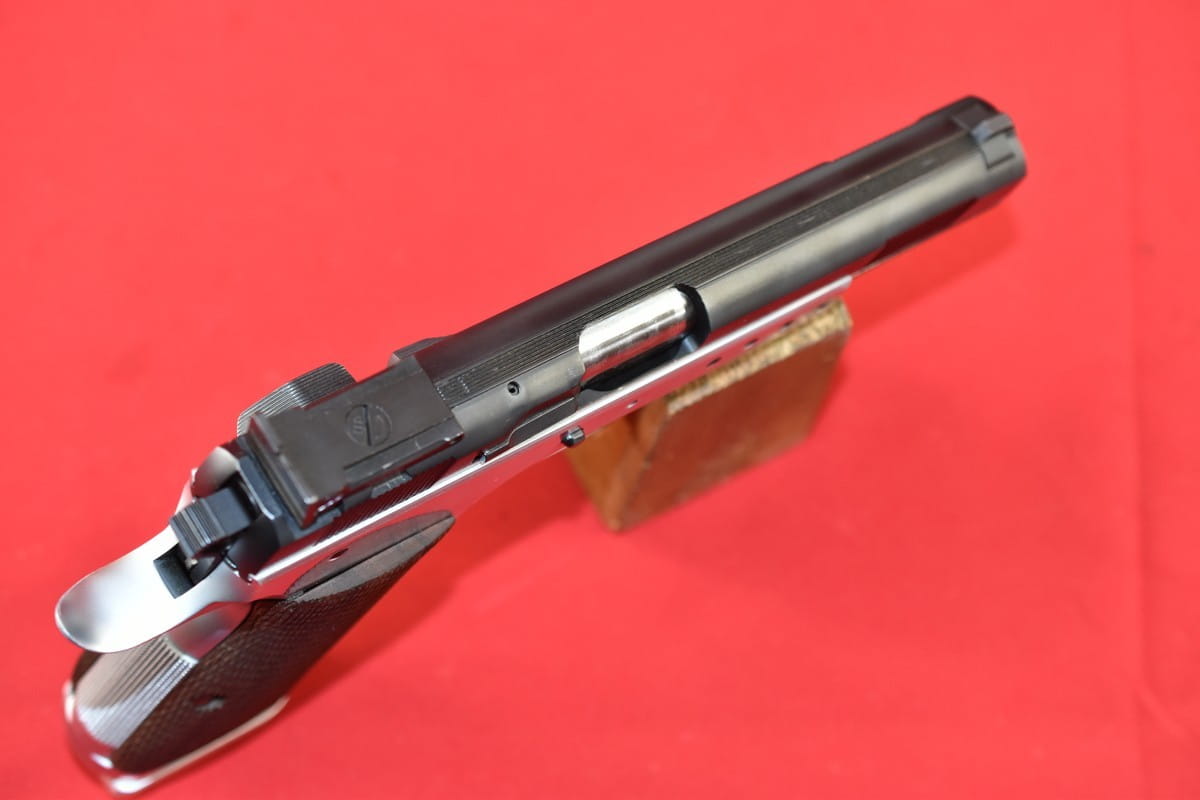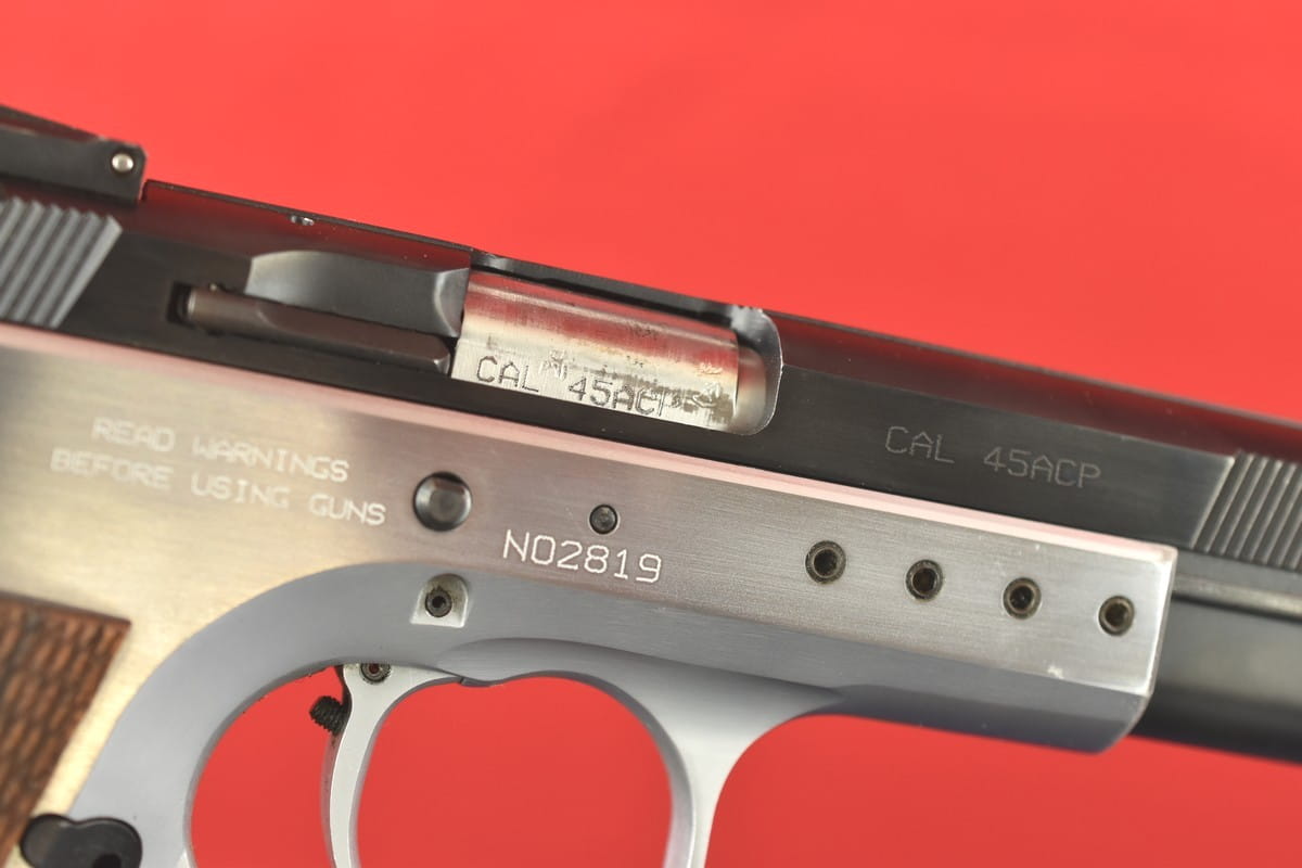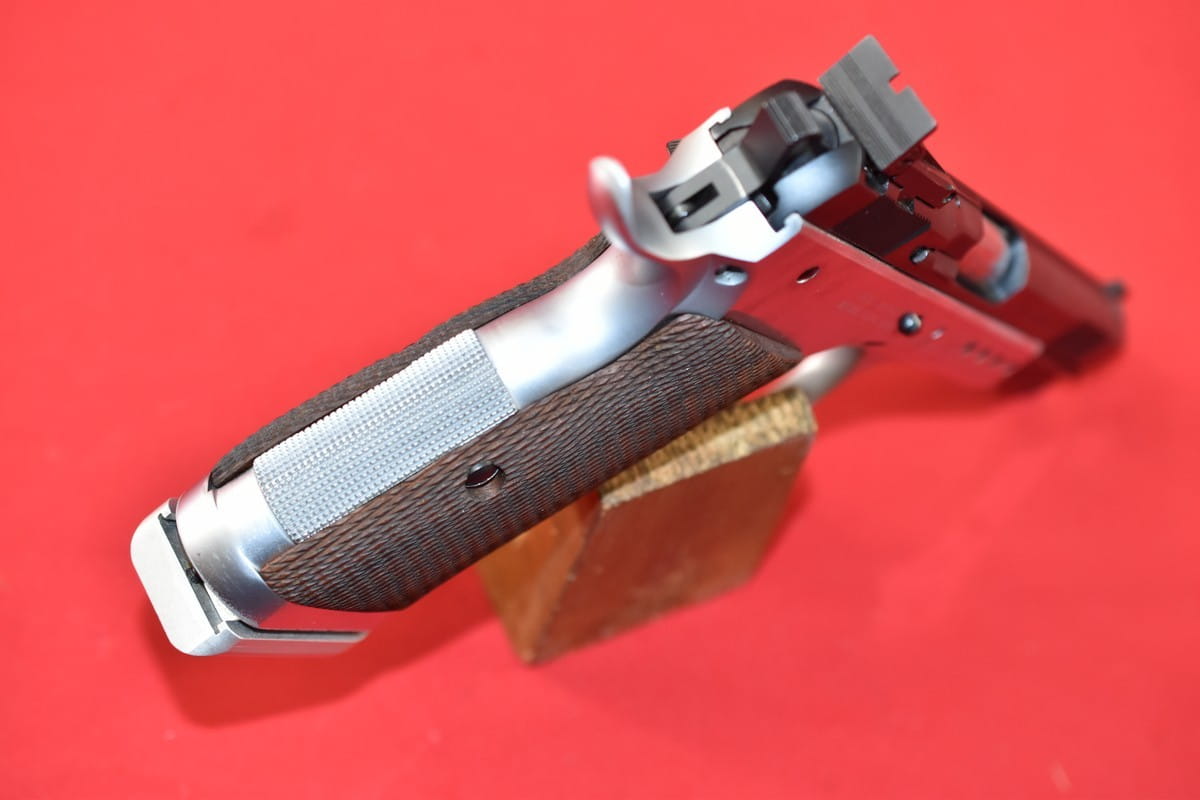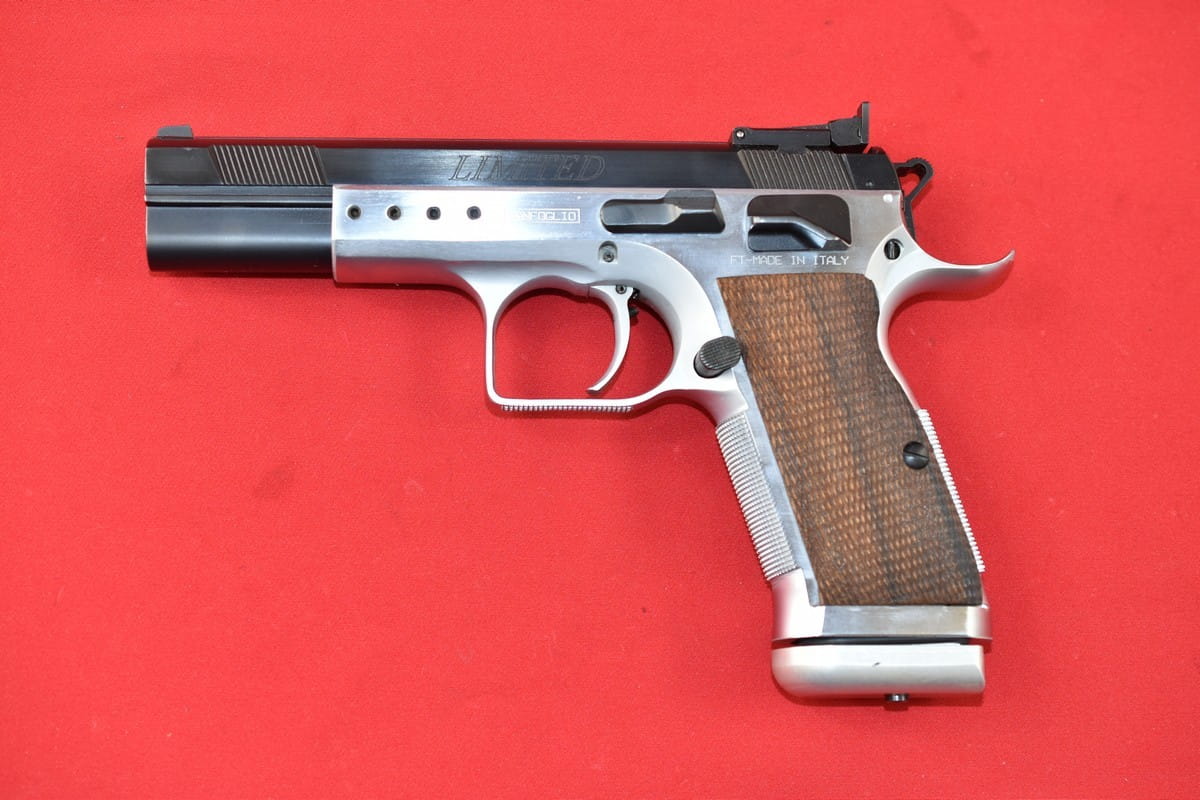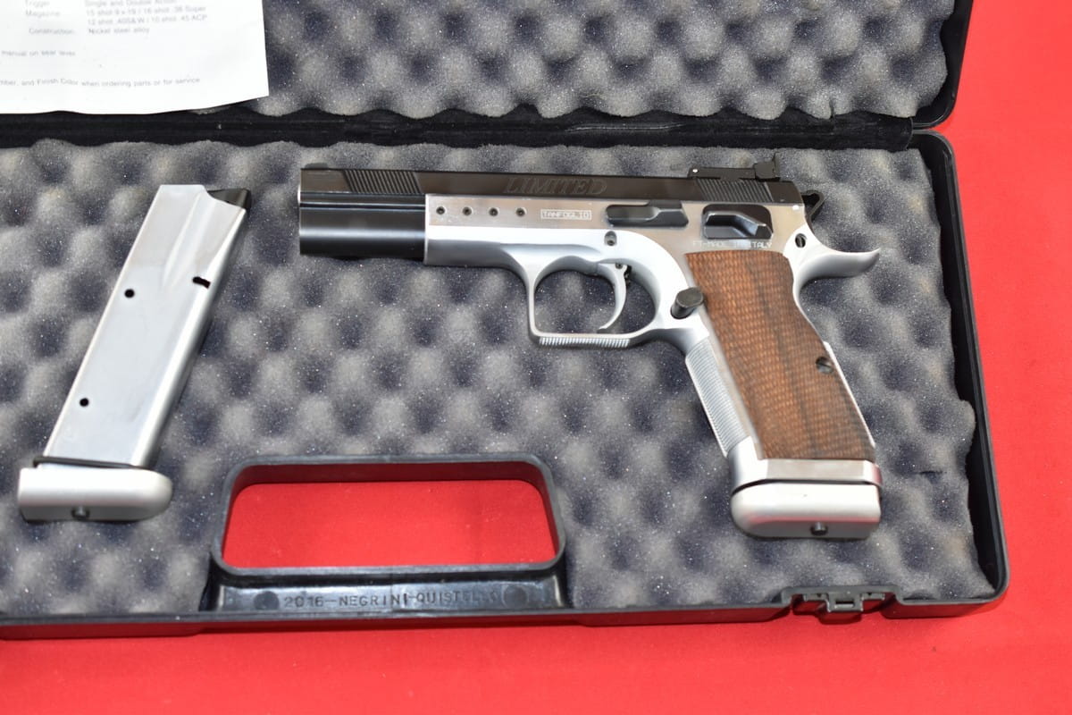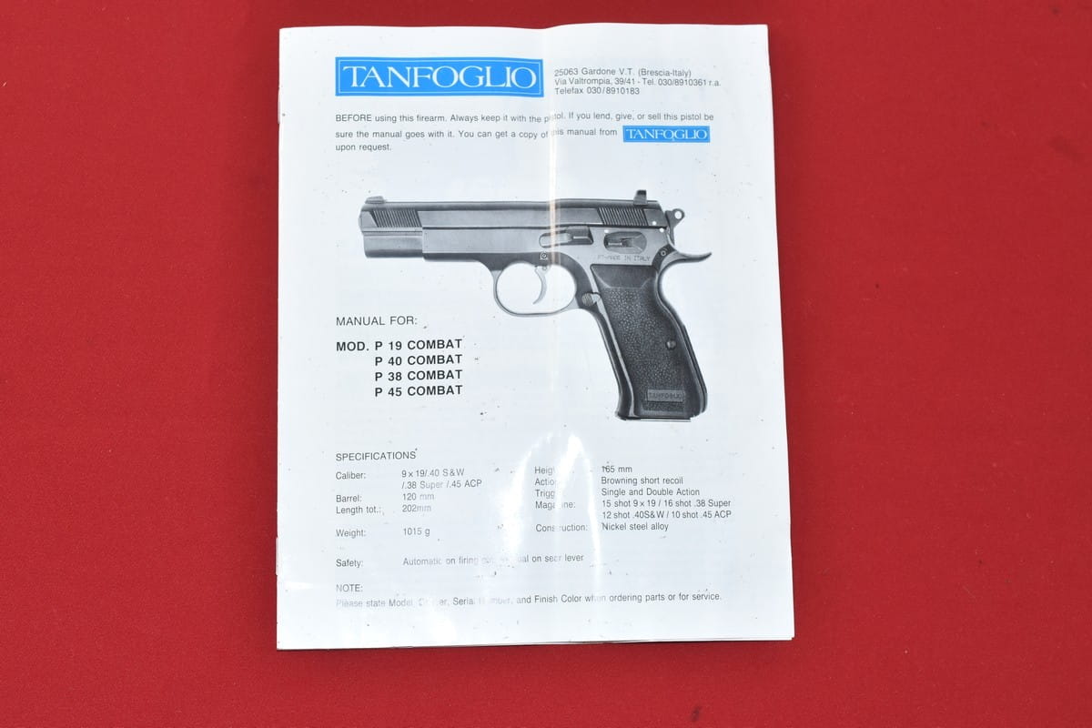 #2926 Pistolet Tanfoglio P-45 produkcji włoskiej. Kal. 45 ACP. Stan bardzo dobry, przewód lufy idealny, lustro. W komplecie dwa magazynki, oryginalna walizka oraz instrukcja.