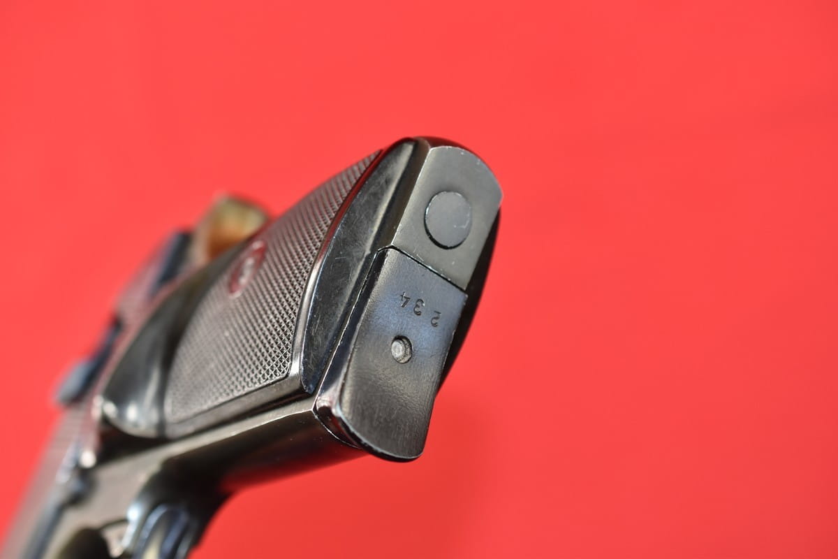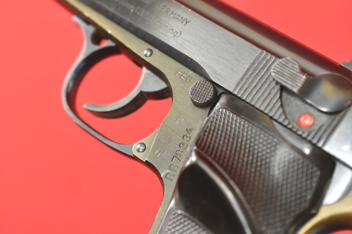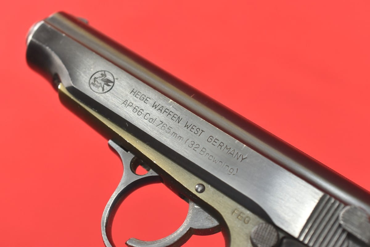#3859 Pistolet FEG AP66 wyprodukowany dla niemieckiej firmy Hege. Kal. 7,65 mm Browning. Stan bardzo dobry, przewód lufy idealny, lustro. Widoczne niemieckie stemple ostrzału z roku 1970. Więcej informacji na temat tego modelu: TUTAJ