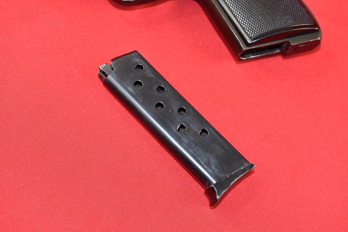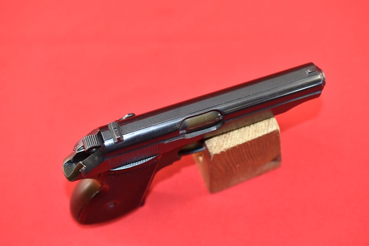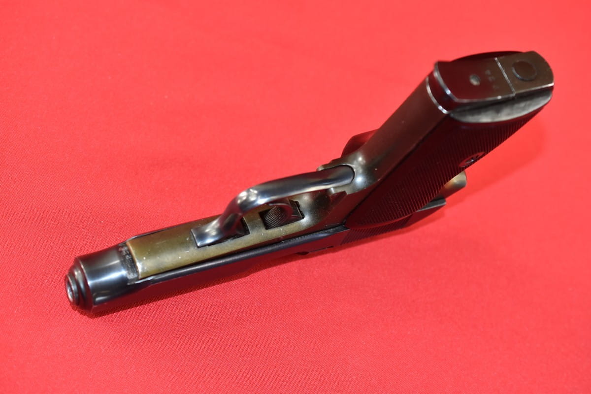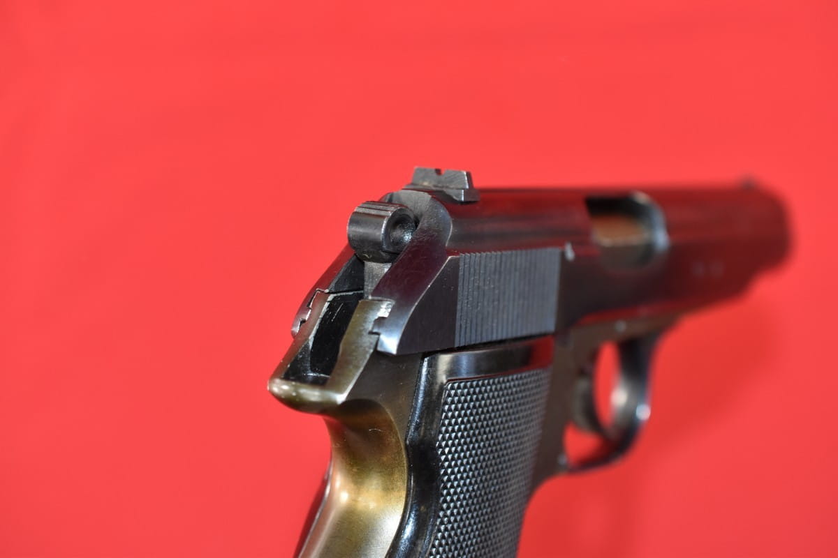 #3859 Pistolet FEG AP66 wyprodukowany dla niemieckiej firmy Hege. Kal. 7,65 mm Browning. Stan bardzo dobry, przewód lufy idealny, lustro. Widoczne niemieckie stemple ostrzału z roku 1970. Więcej informacji na temat tego modelu: TUTAJ