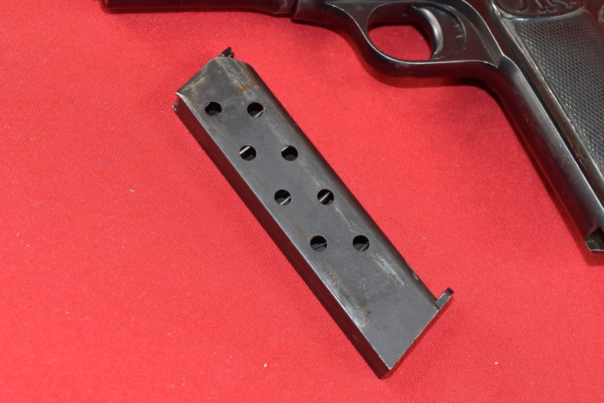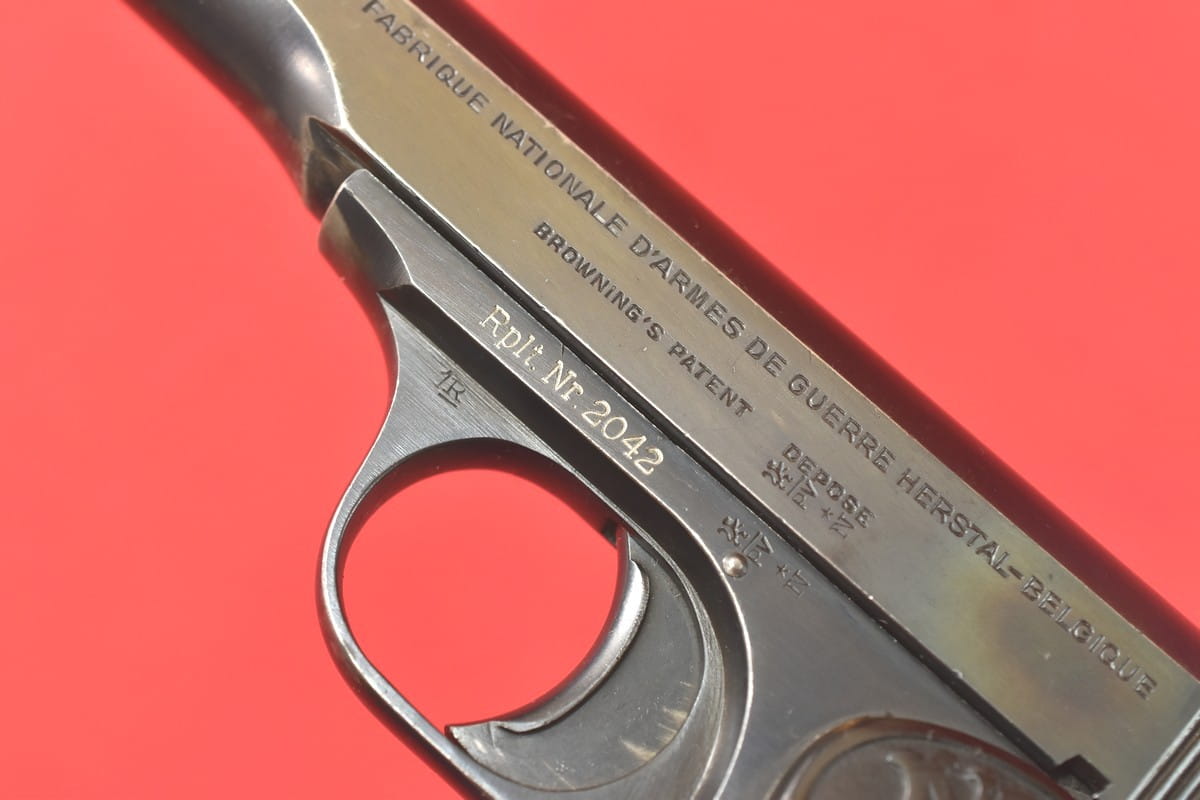 #4017 Pistolet Browning FN Mod. 1910/22 kal. 7,65 mm. Zgodny numerycznie, przewód lufy w stanie bardzo dobrym, lustro.