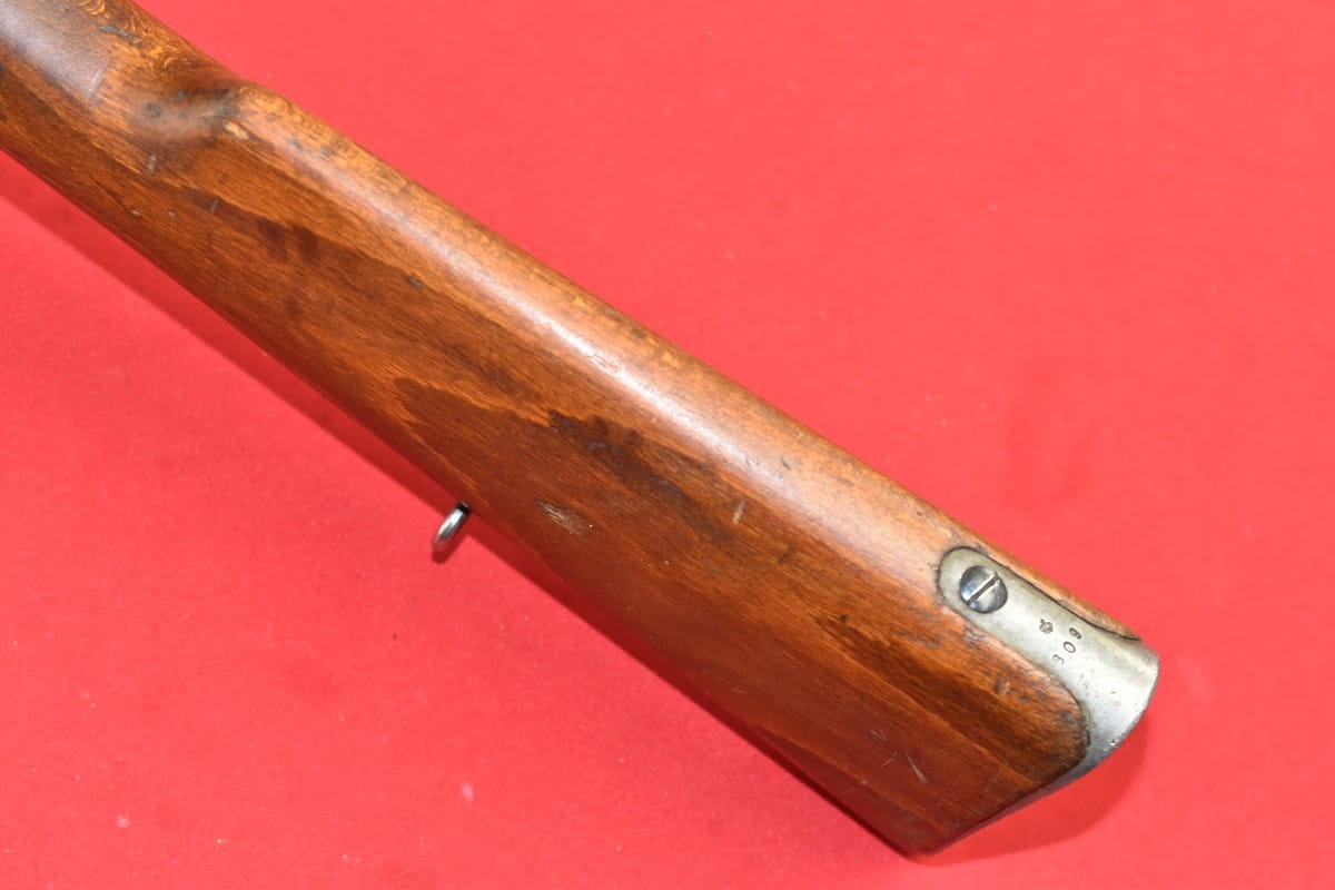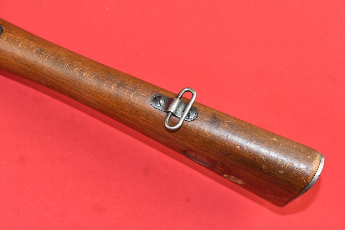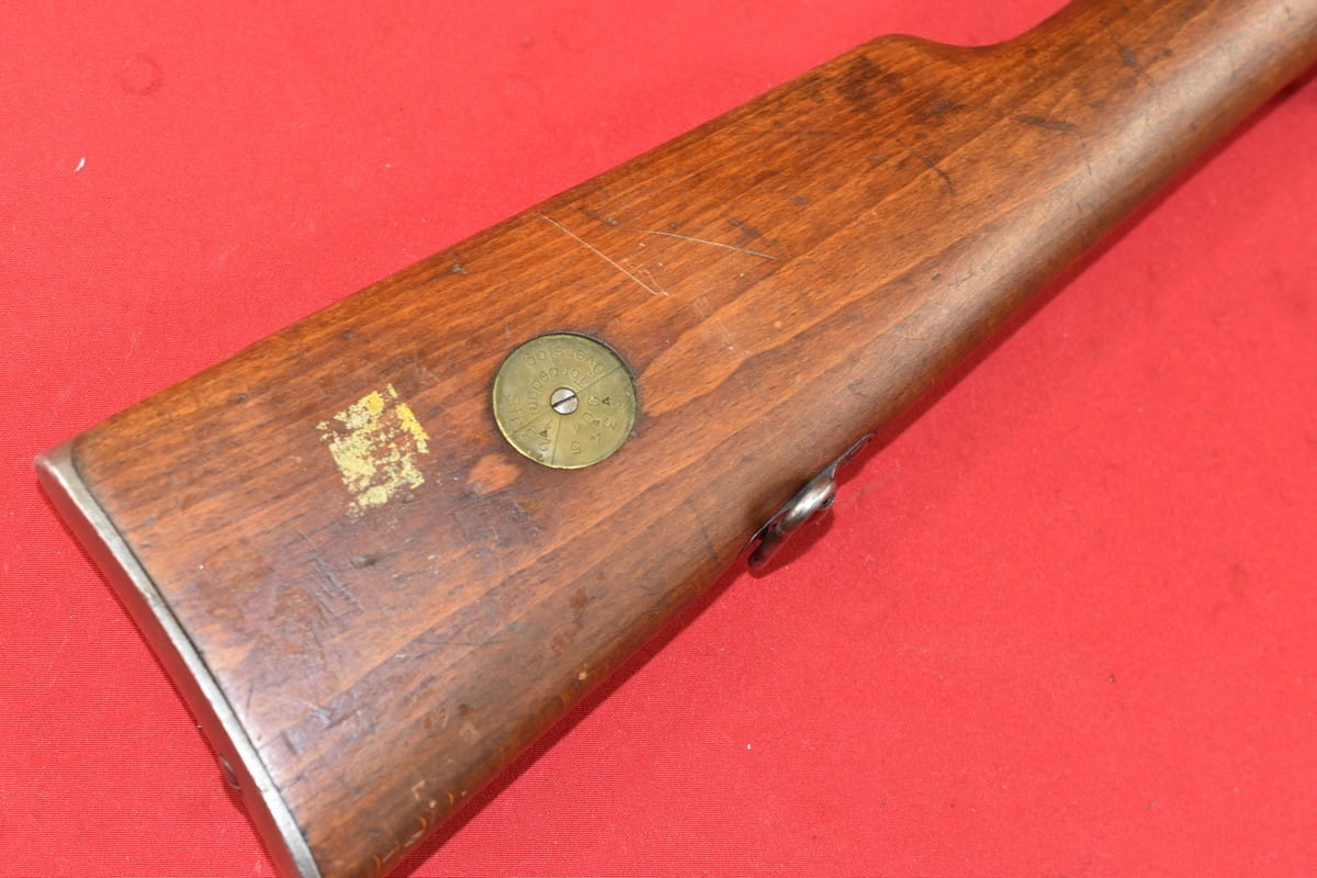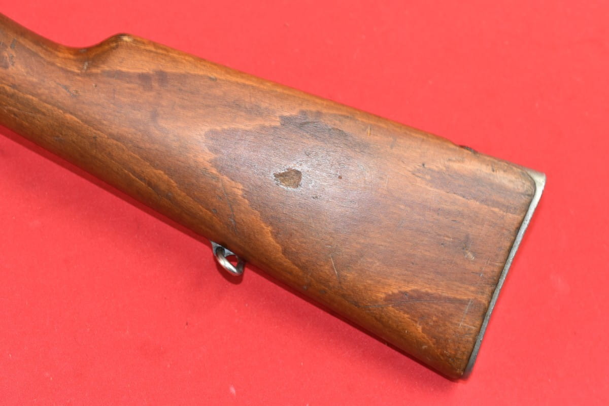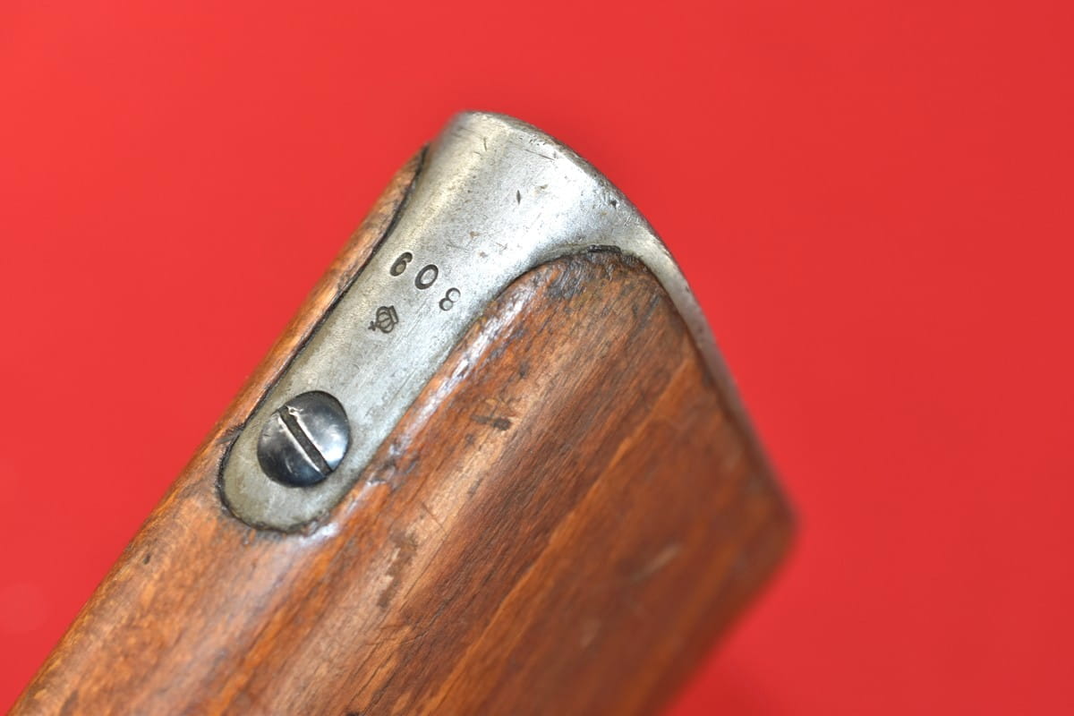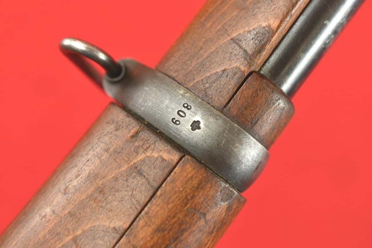 #4356 Karabinek Mauser m/96-38 armii szwedzkiej. Kal. 6,5x55. Przerobiony z egzemplarza wyprodukowanego w roku 1899. Końcówka lufy z gwintem pod urządzenie do ślepego strzelania. Broń z takim gwintem była oznaczana sufiksem "B" - czyli w tym wypadku pełne oznaczenie wzoru to m/96-38B.