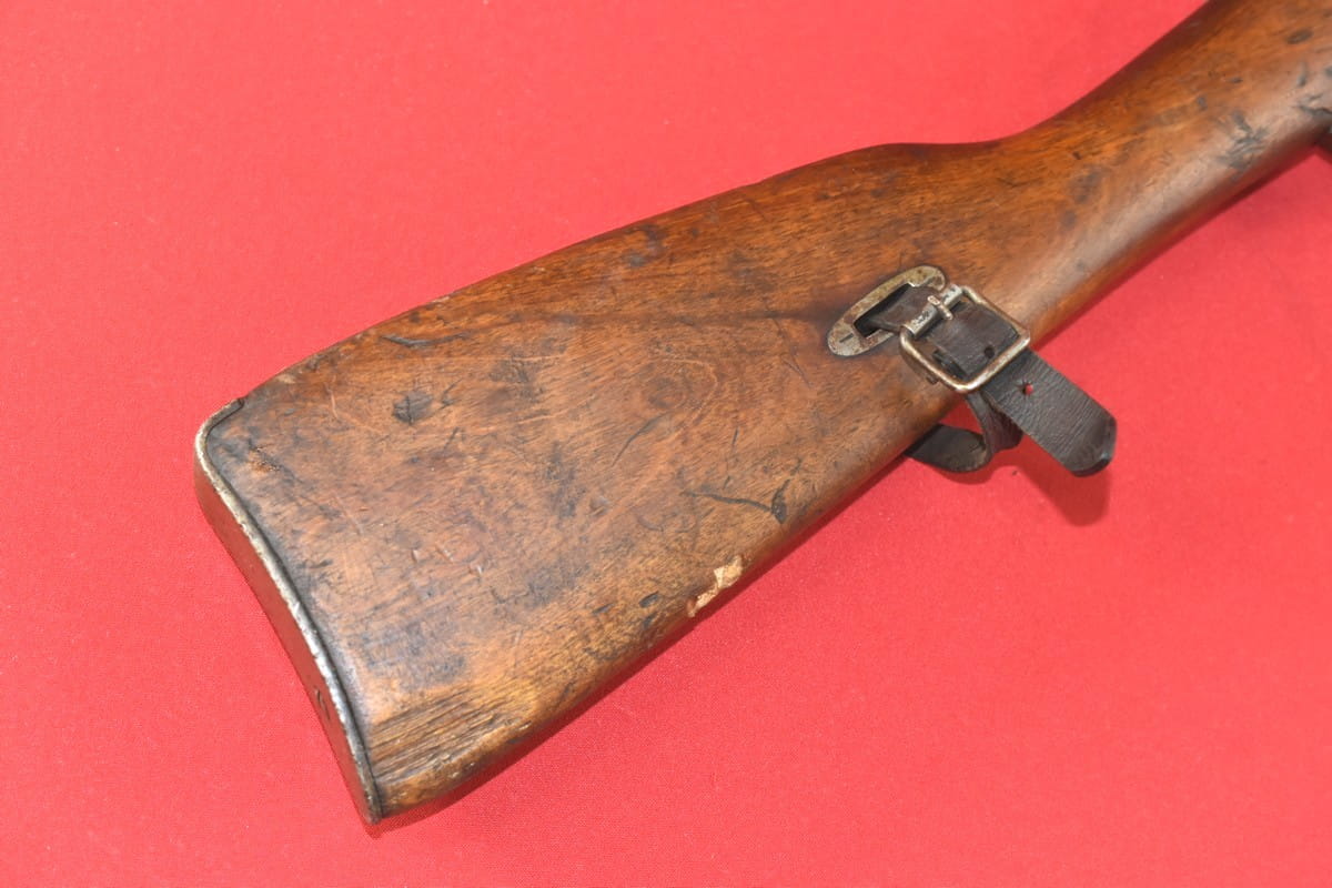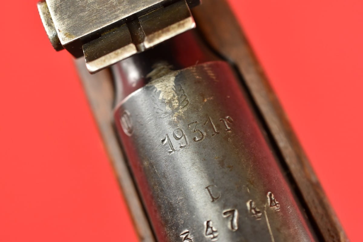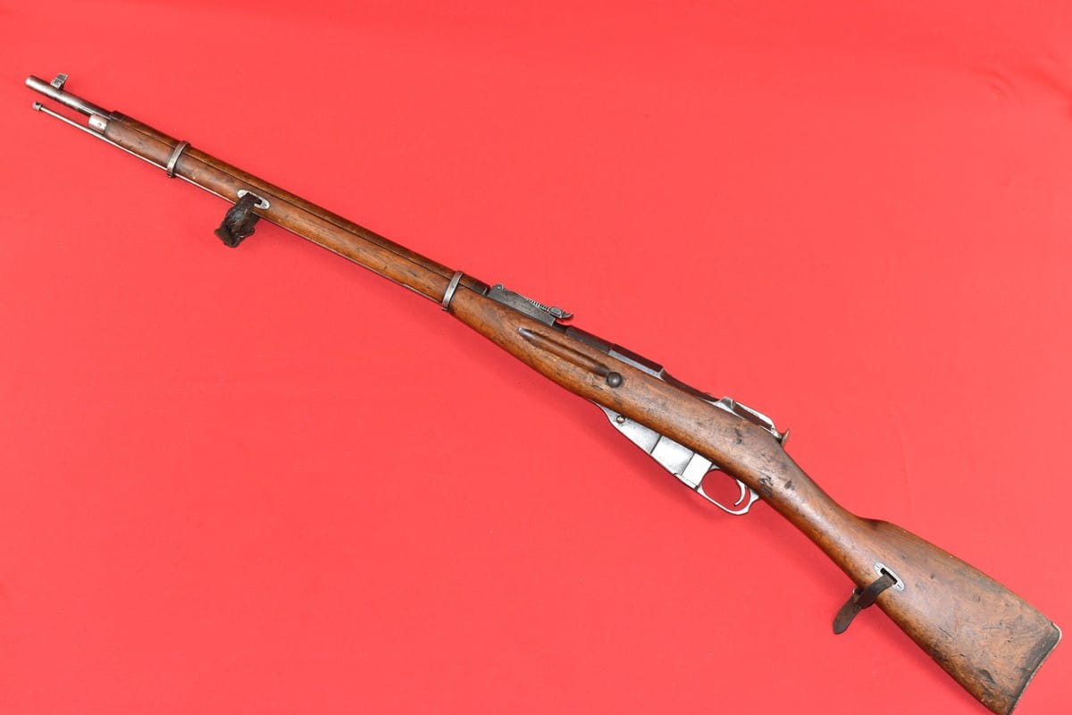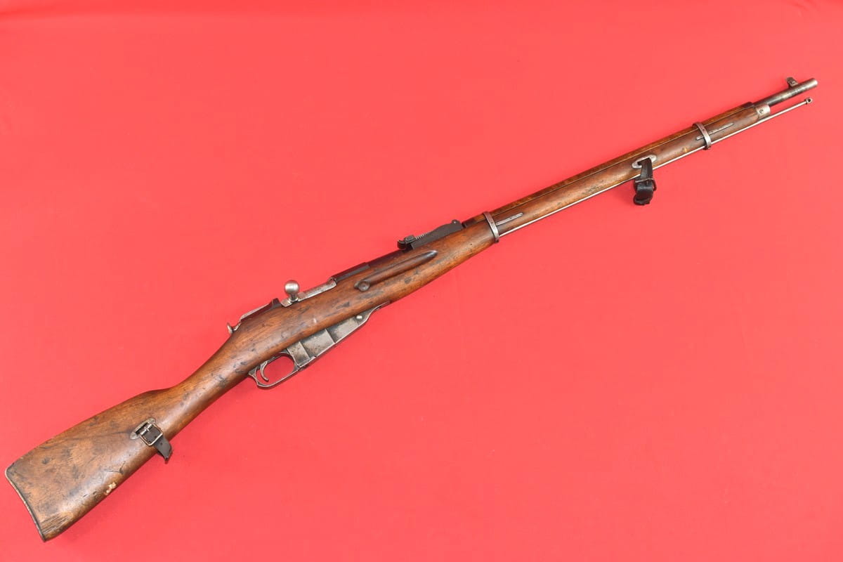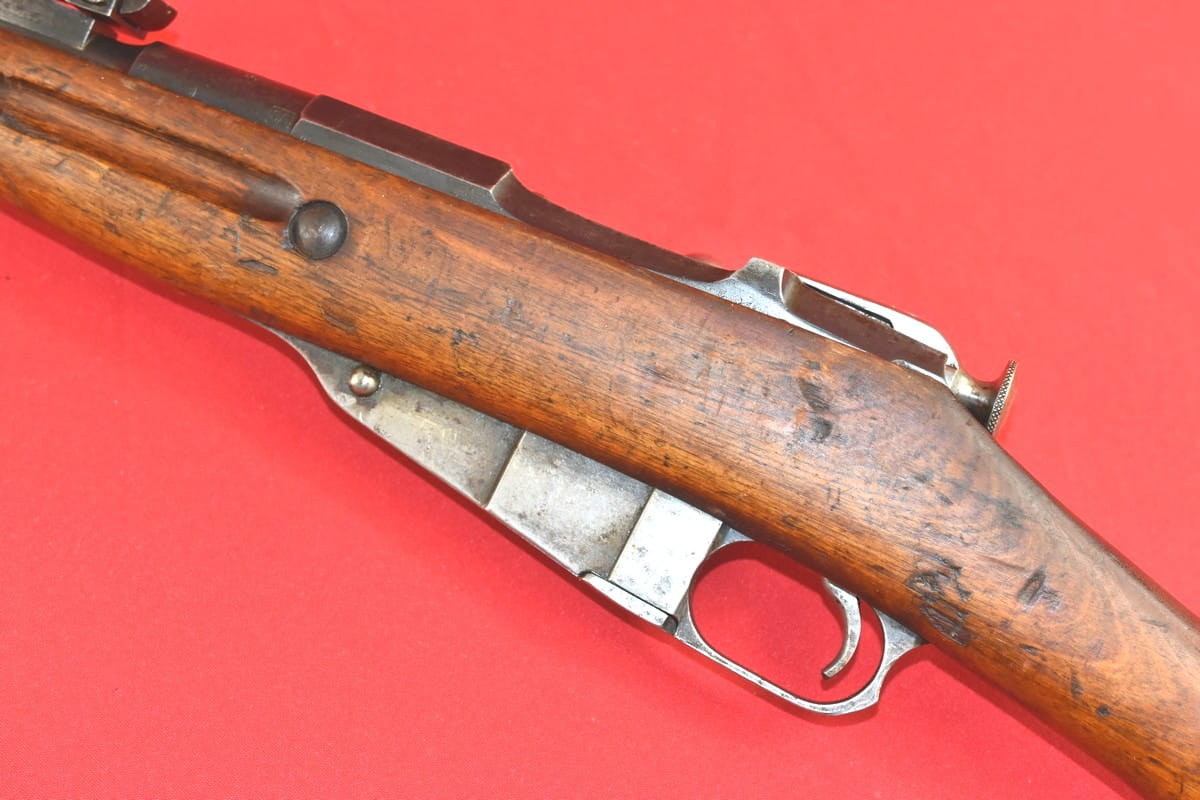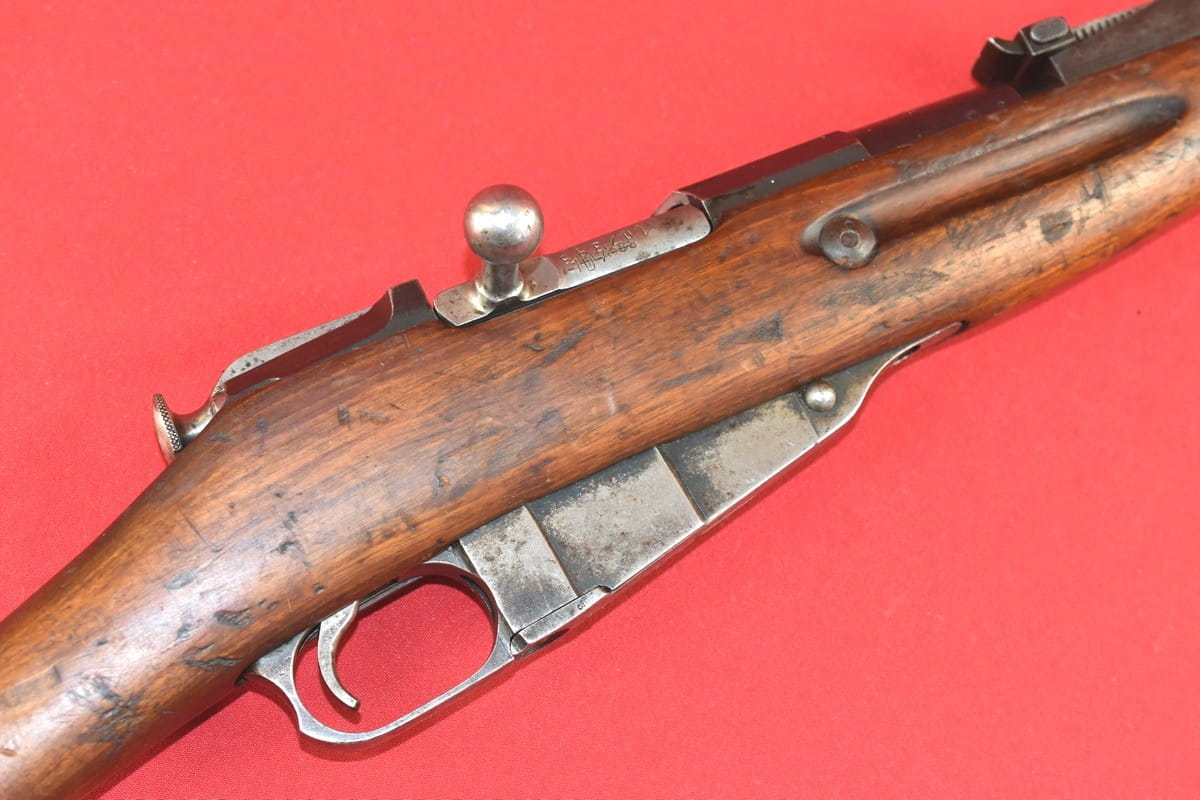 #4444 Karabin Mosin 1891 kal. 7,62x54R (7,62x53R(. Produkcja radzieckiego arsenału w Iżewsku. Egzemplarz z roku 1931 - który w okresie DWŚ został zdobyty przez Finów i wszedł na stan ich armii. Stąd biorą się w takich wypadkach ingerencje wynikające z remontów: fińska oksyda, fińskie oznaczenia, wymieszane części (produkcji fińskiej, rosyjskiej, radzieckiej, amerykańskiej), przekreślone / usunięte numery.