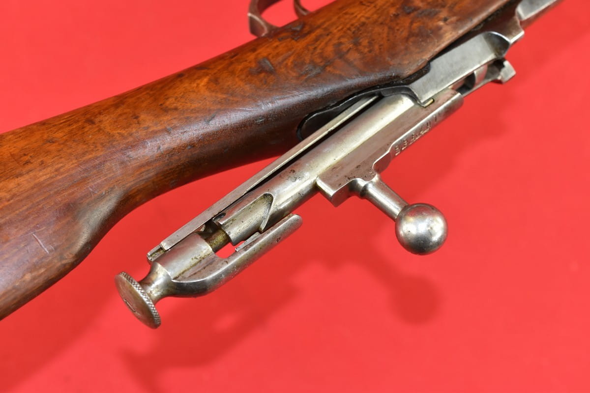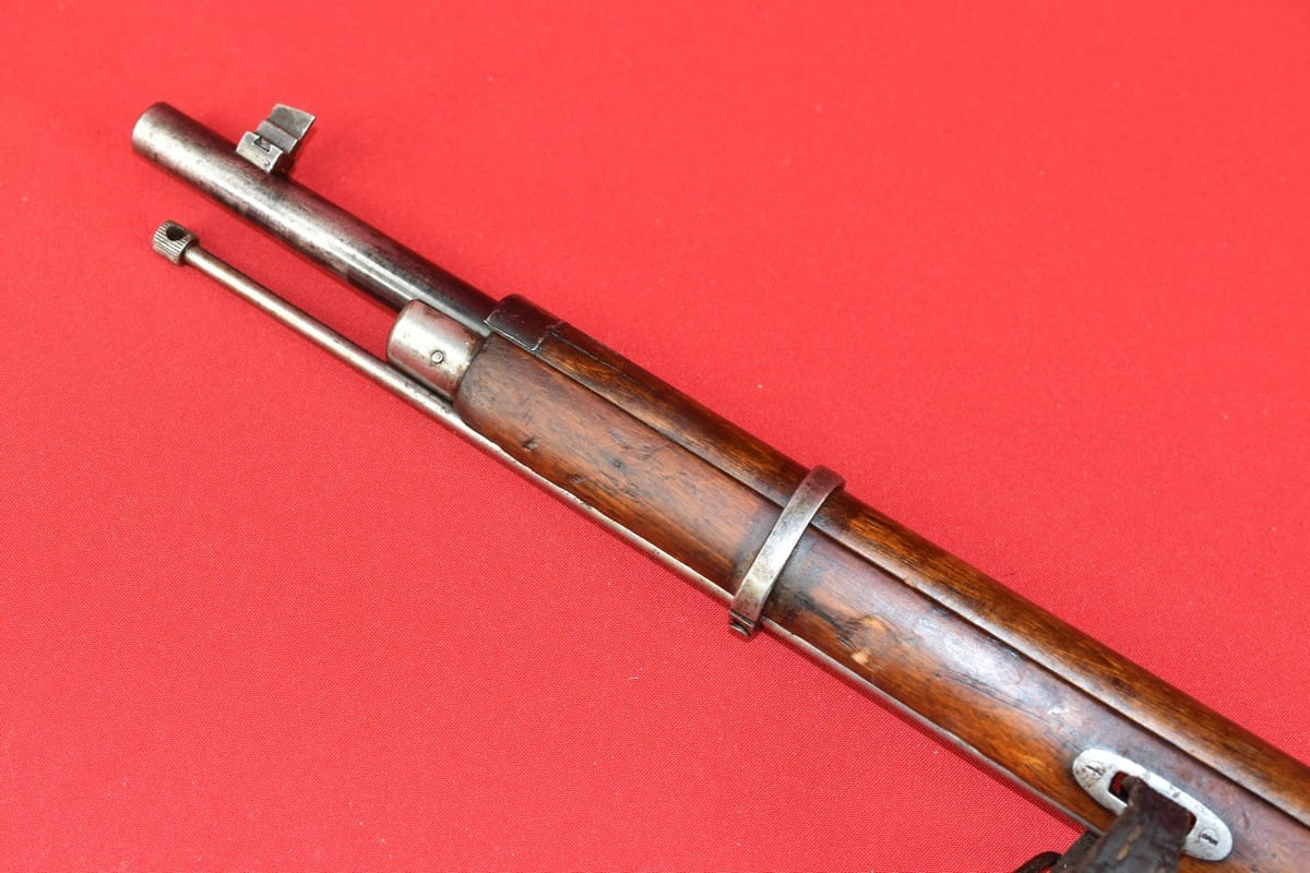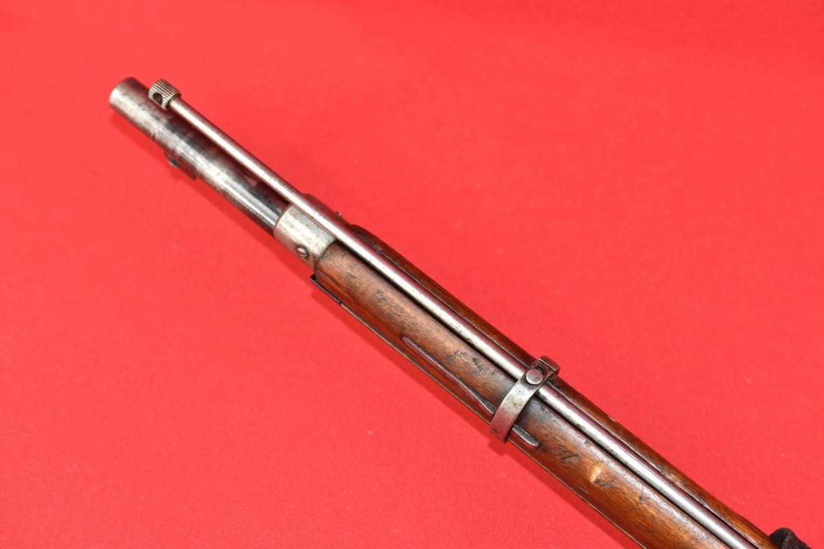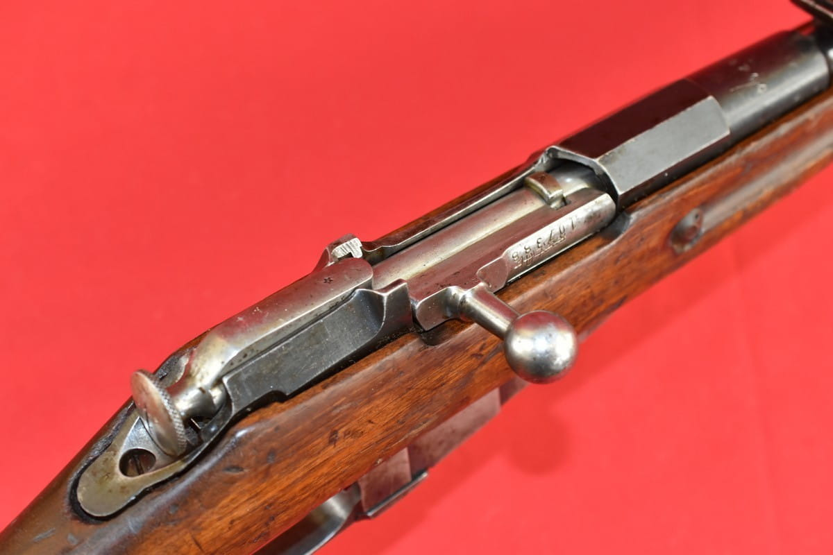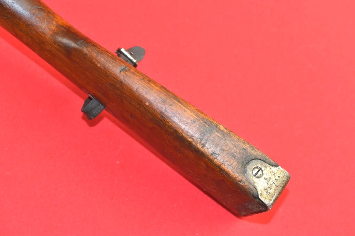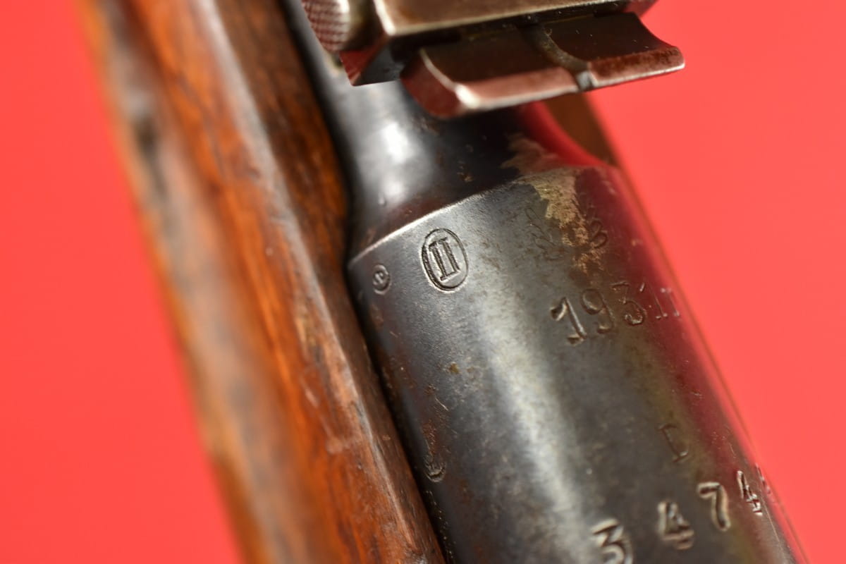 #4444 Karabin Mosin 1891 kal. 7,62x54R (7,62x53R(. Produkcja radzieckiego arsenału w Iżewsku. Egzemplarz z roku 1931 - który w okresie DWŚ został zdobyty przez Finów i wszedł na stan ich armii. Stąd biorą się w takich wypadkach ingerencje wynikające z remontów: fińska oksyda, fińskie oznaczenia, wymieszane części (produkcji fińskiej, rosyjskiej, radzieckiej, amerykańskiej), przekreślone / usunięte numery.