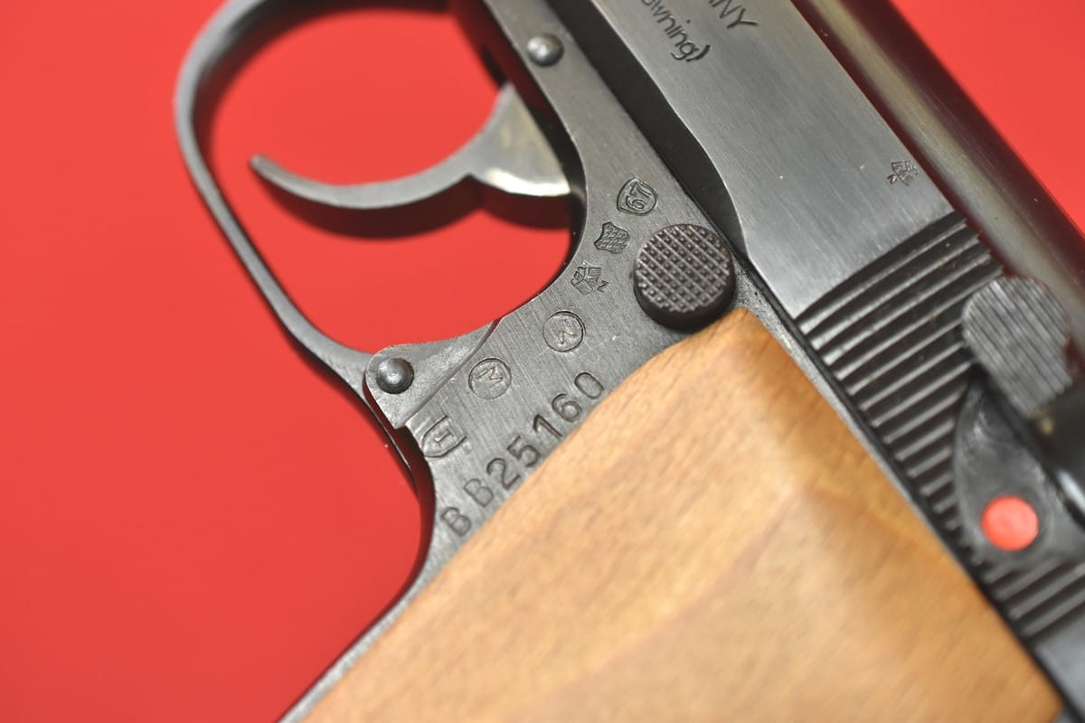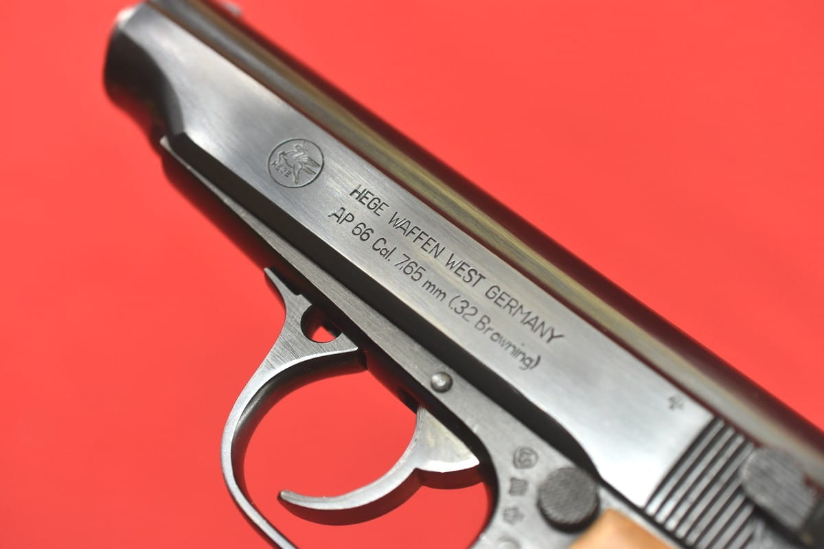 #4586 Pistolet FEG AP66 wyprodukowany dla niemieckiej firmy Hege. Kal. 7,65 mm Browning. Stan bardzo dobry, przewód lufy idealny, lustro. Okładziny drewniane - dorobione. Widoczne niemieckie stemple atestu nitro z roku 1967. Więcej informacji na temat tego modelu: TUTAJ