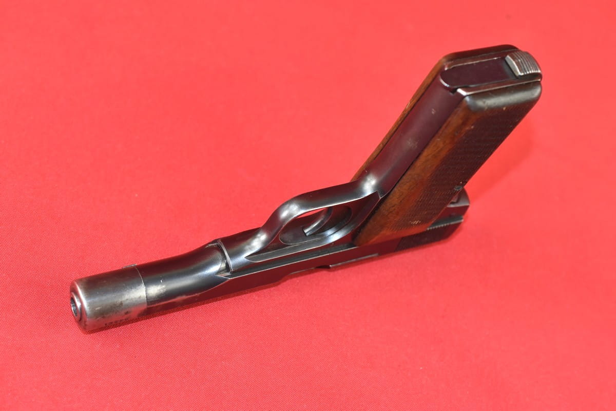 #4669 Pistolet Browning FN Mod. 1910/22 kal. 7,65 mm. Zgodny numerycznie, przewód lufy w stanie bardzo dobrym, lustro.