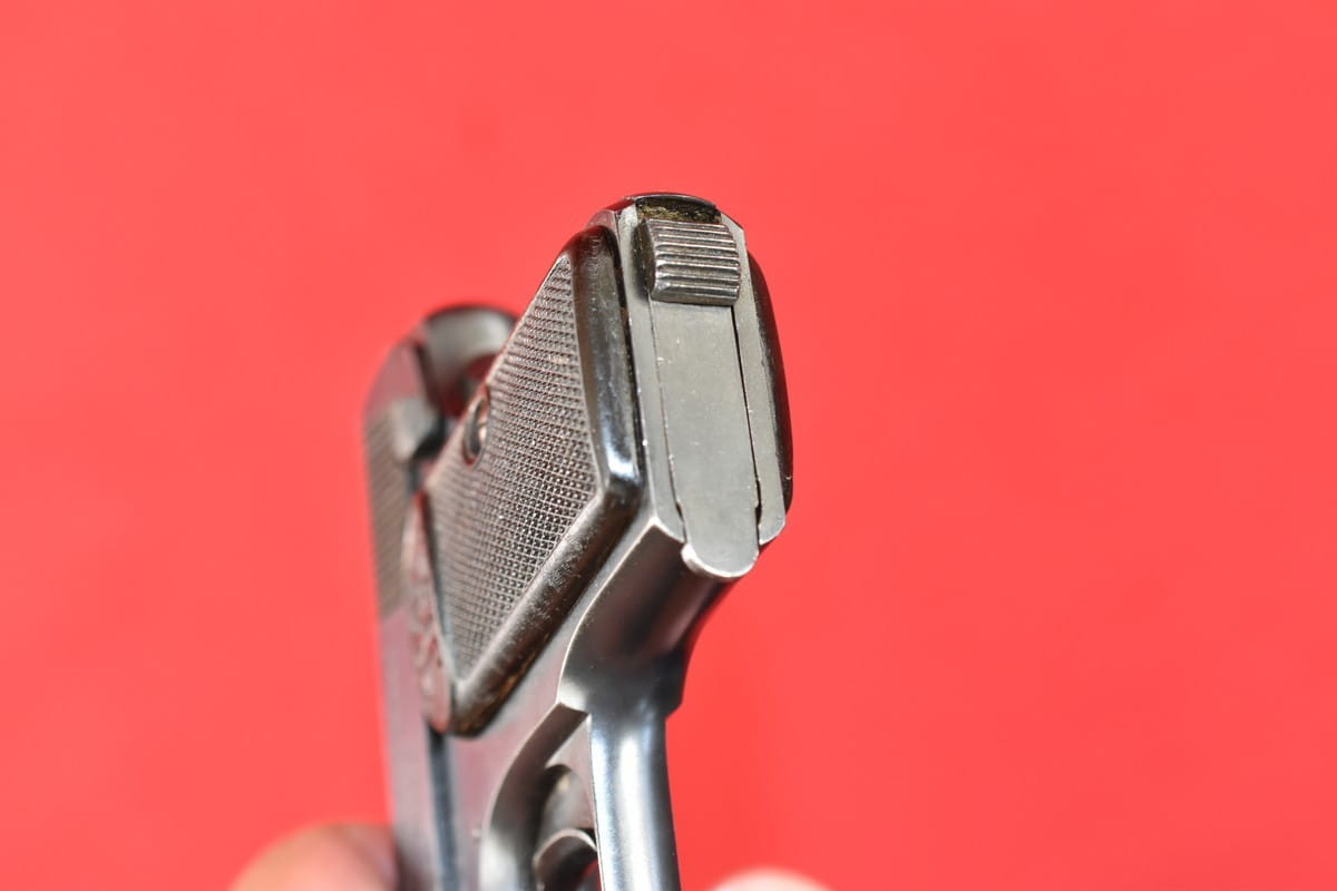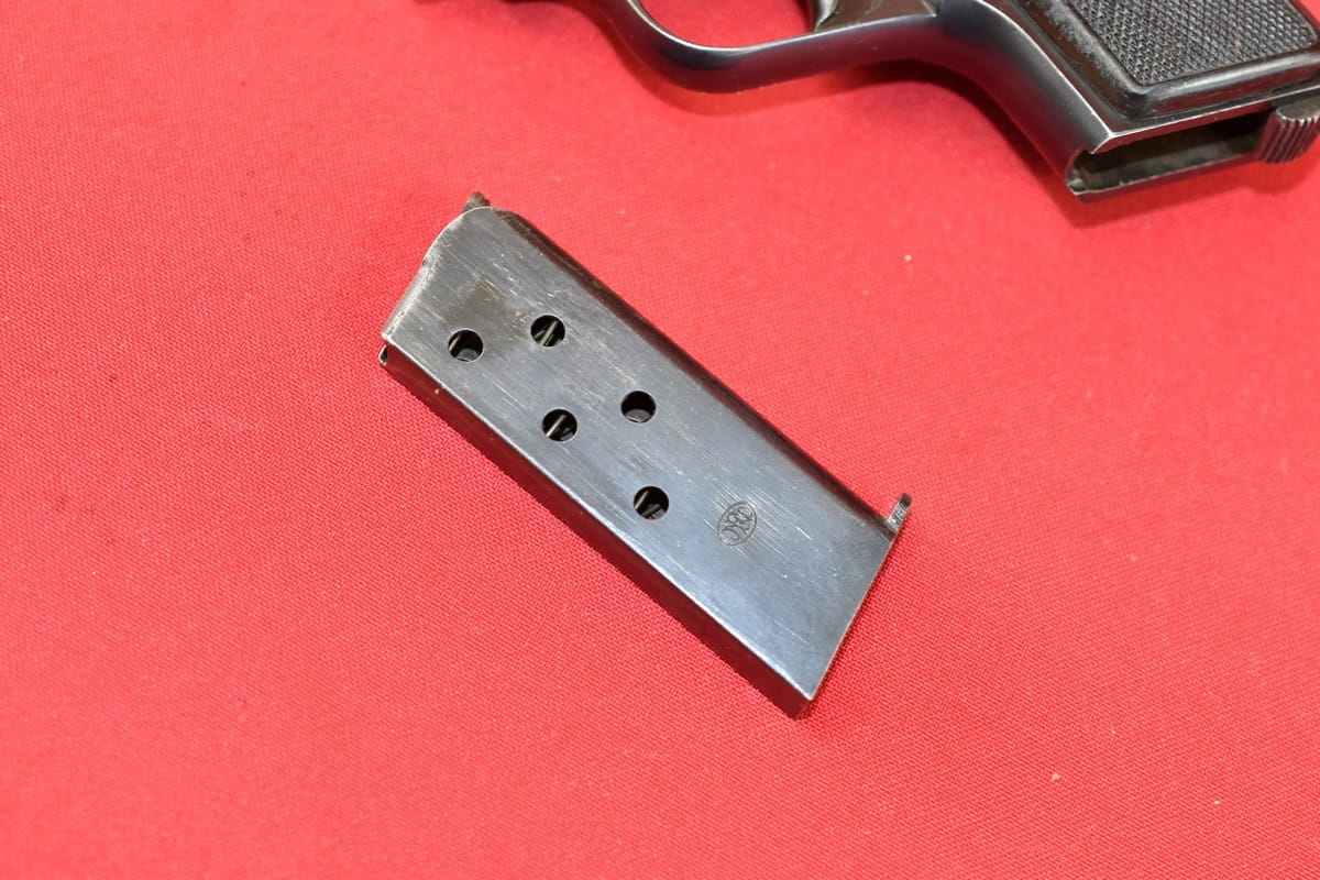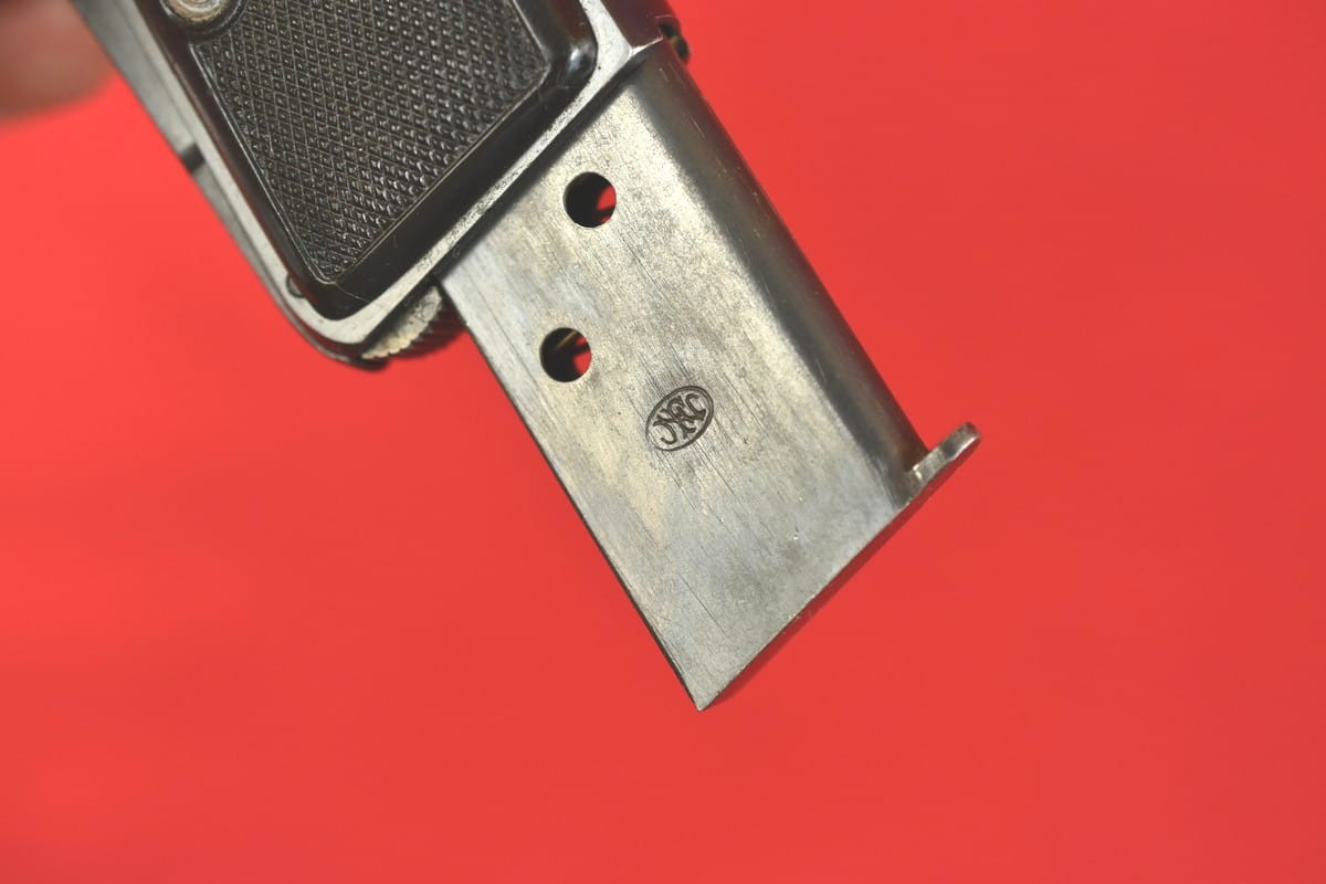Stan bardzo dobry, oksyda oryginalna. Tak samo oryginalne są okładziny i magazynek. Obecne tylko stemple fabryczne.