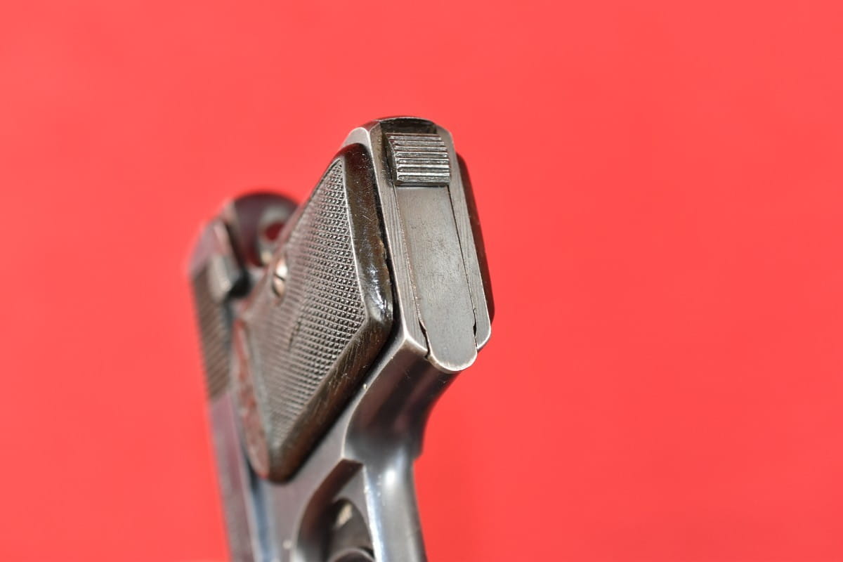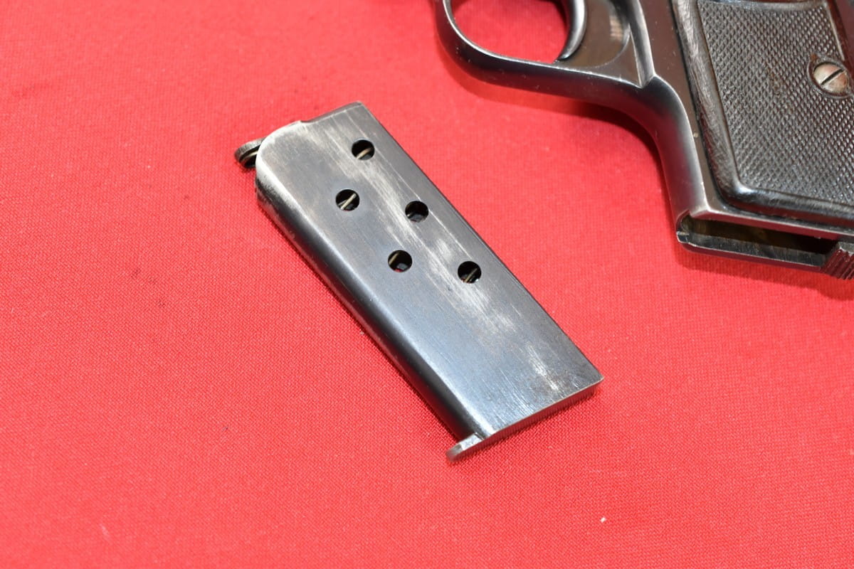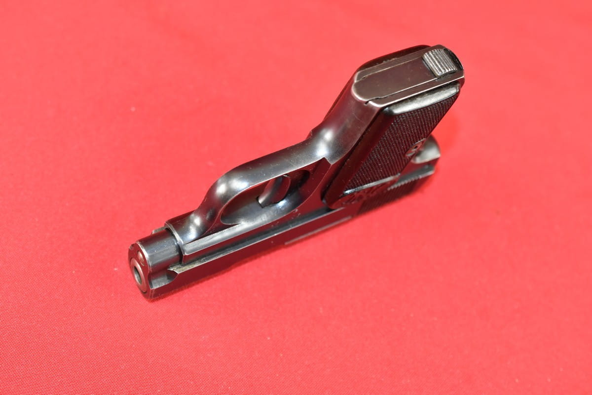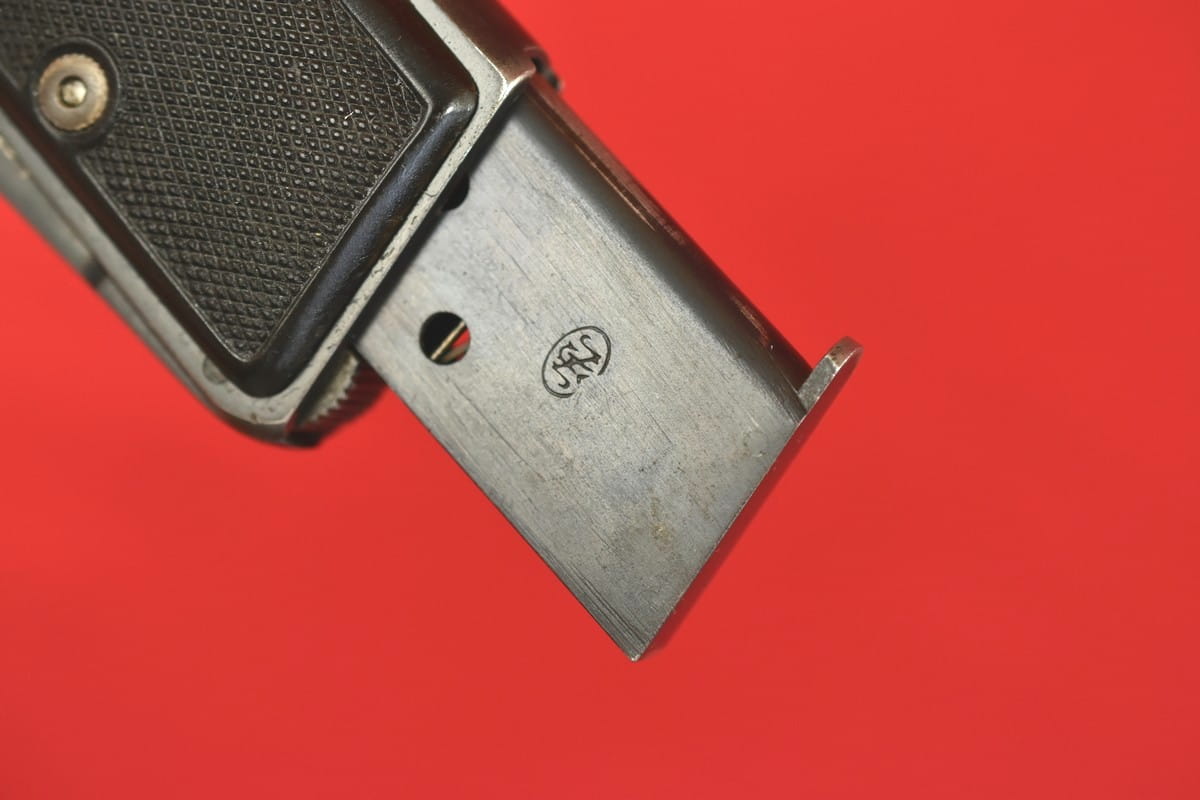 Stan bardzo dobry, oksyda oryginalna. Tak samo oryginalne są okładziny i magazynek. Obecne tylko stemple fabryczne.
