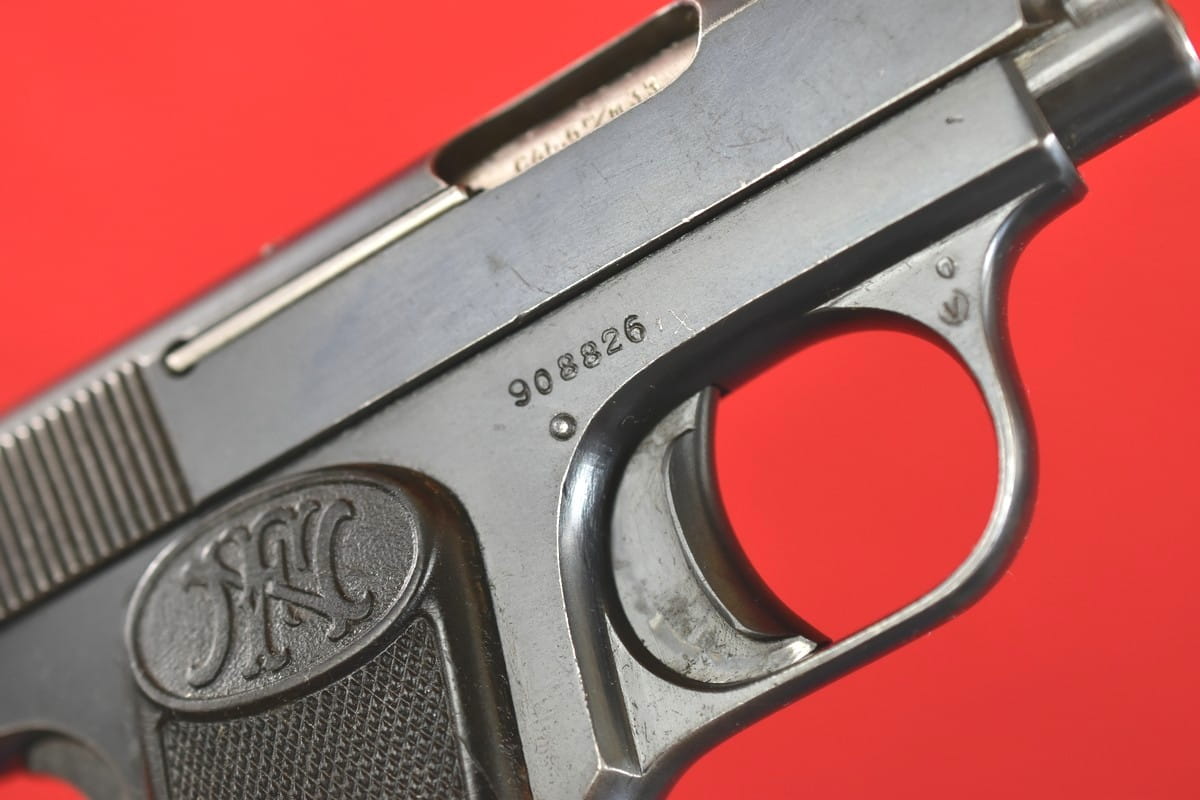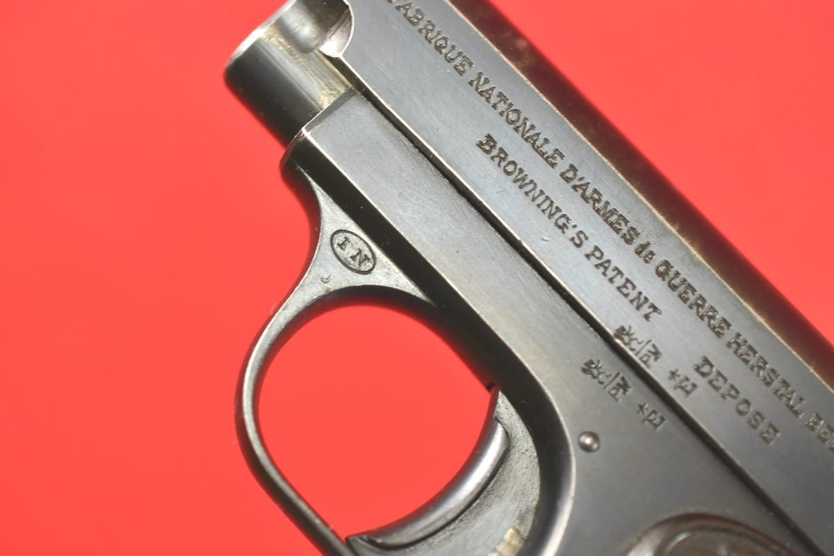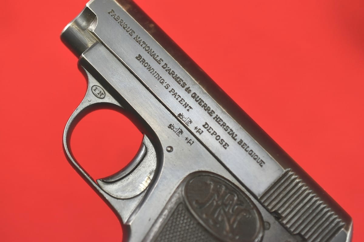 #4979 Pistolet Browning FN 1906 (1905) kal. 6,35 Br. Napis na zamku jest w konfiguracji stosowanej od roku 1907 - do początku lat trzydziestych.