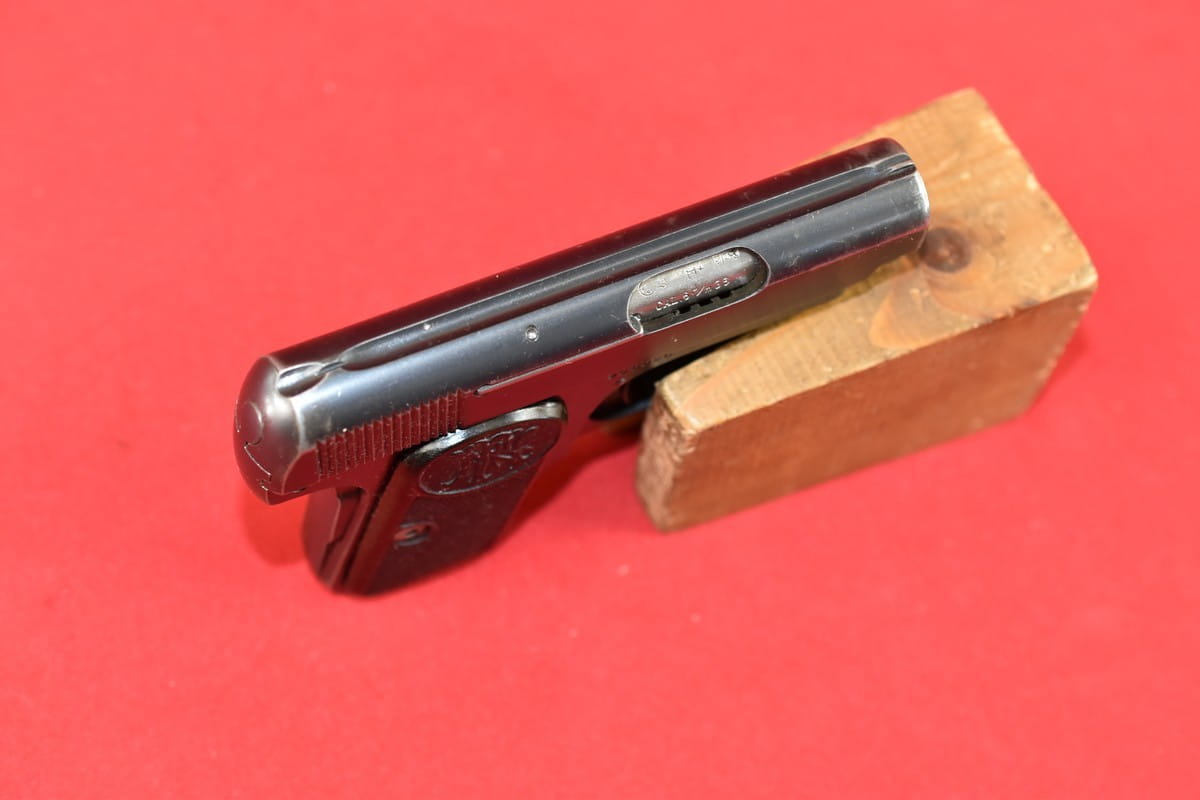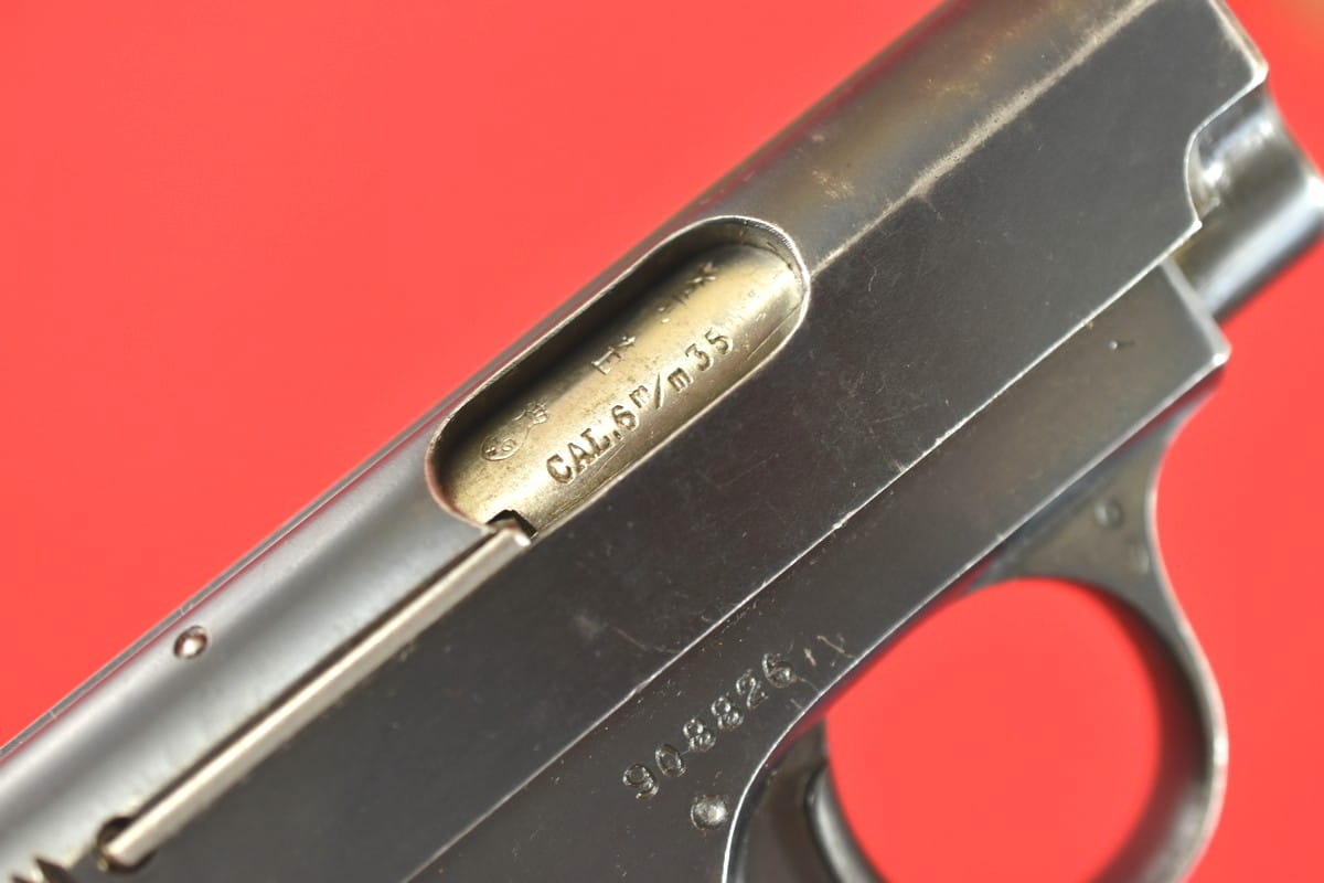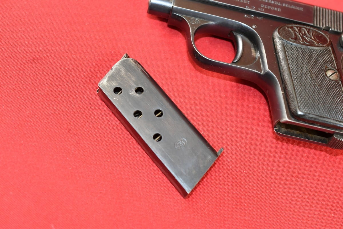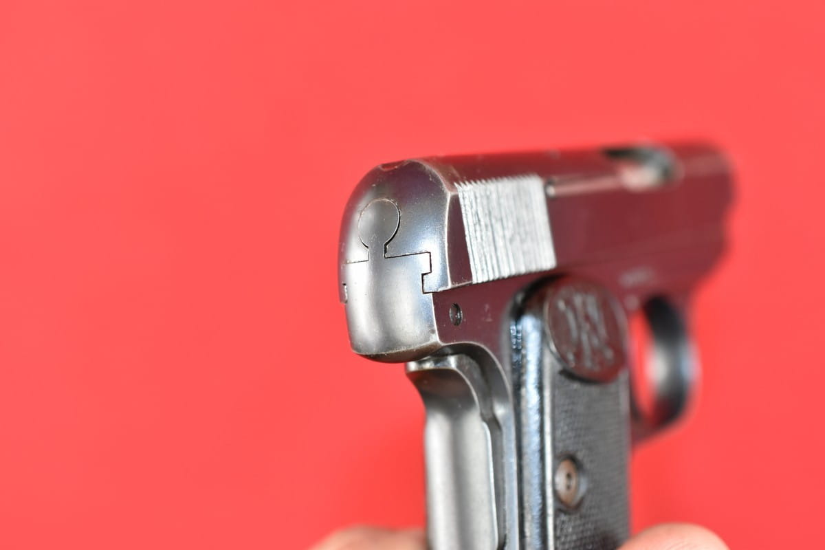 #4979 Pistolet Browning FN 1906 (1905) kal. 6,35 Br. Napis na zamku jest w konfiguracji stosowanej od roku 1907 - do początku lat trzydziestych.