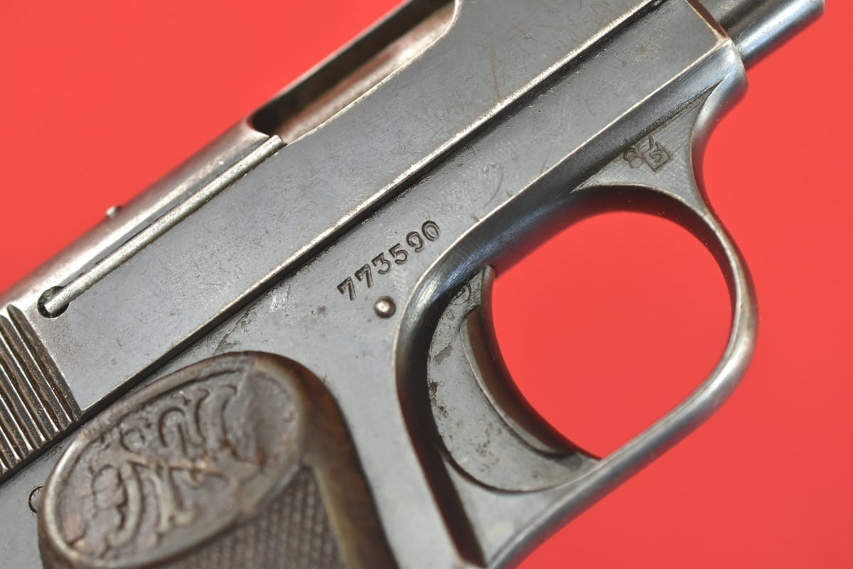 #4981 Pistolet Browning FN 1906 (1905) kal. 6,35 Br. Napis na zamku jest w konfiguracji stosowanej od roku 1907 - do początku lat trzydziestych.