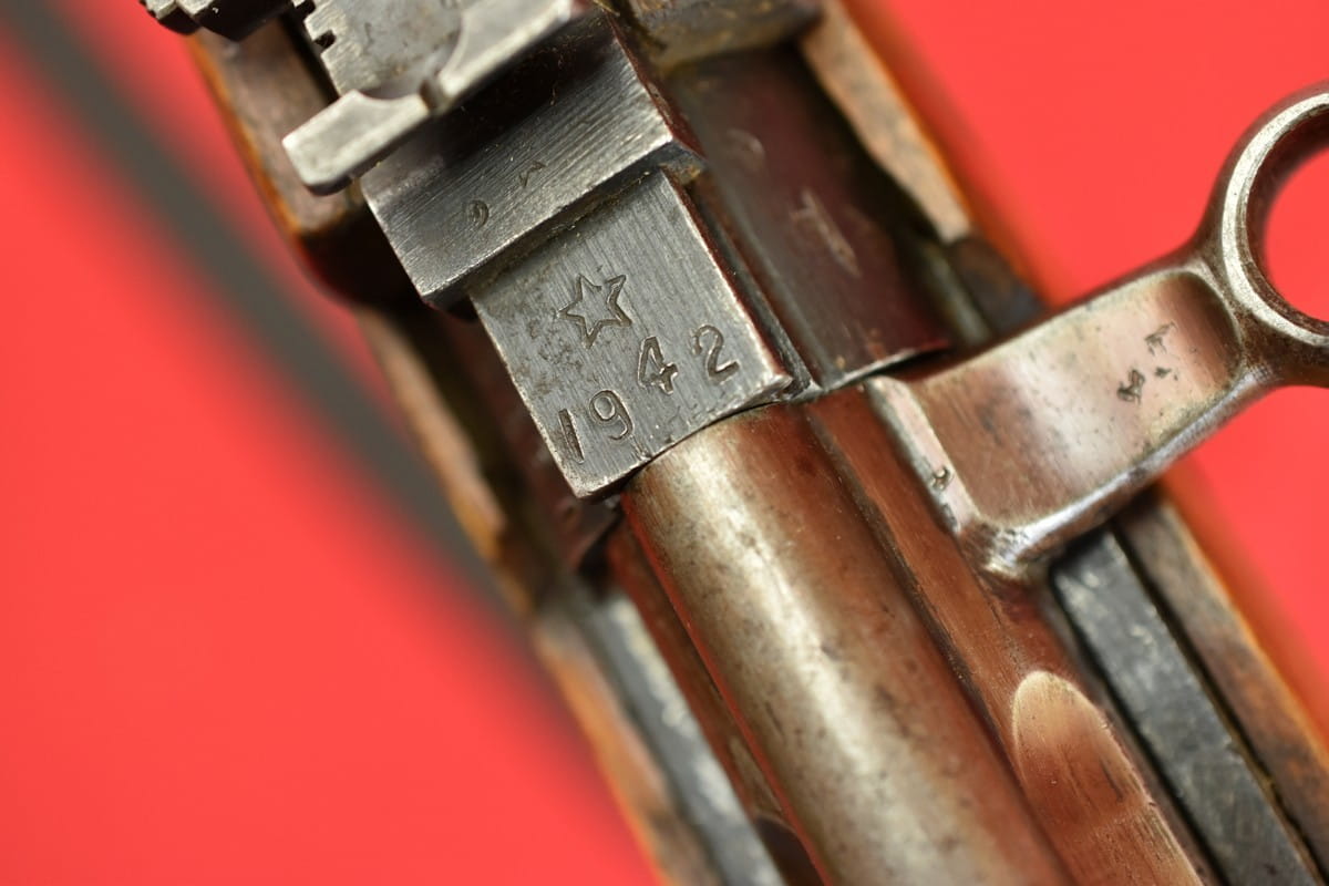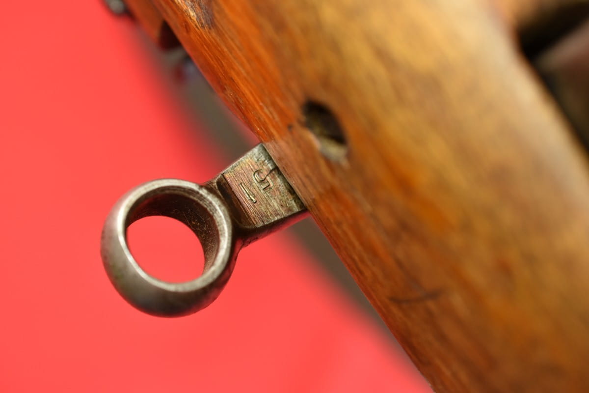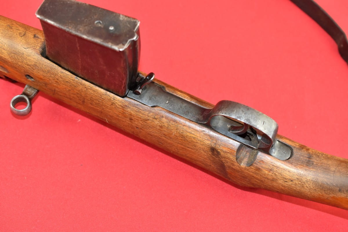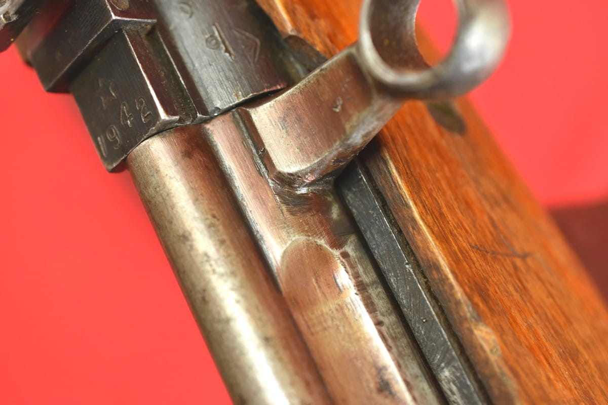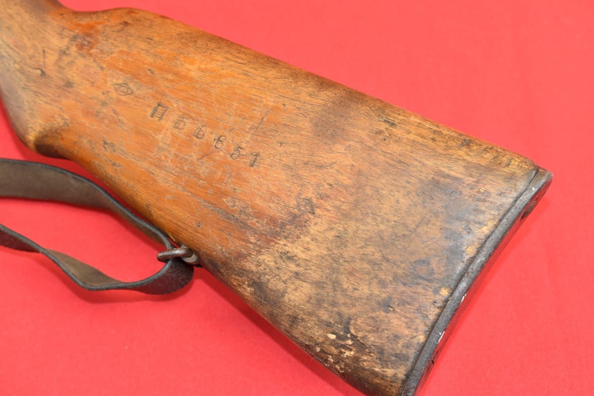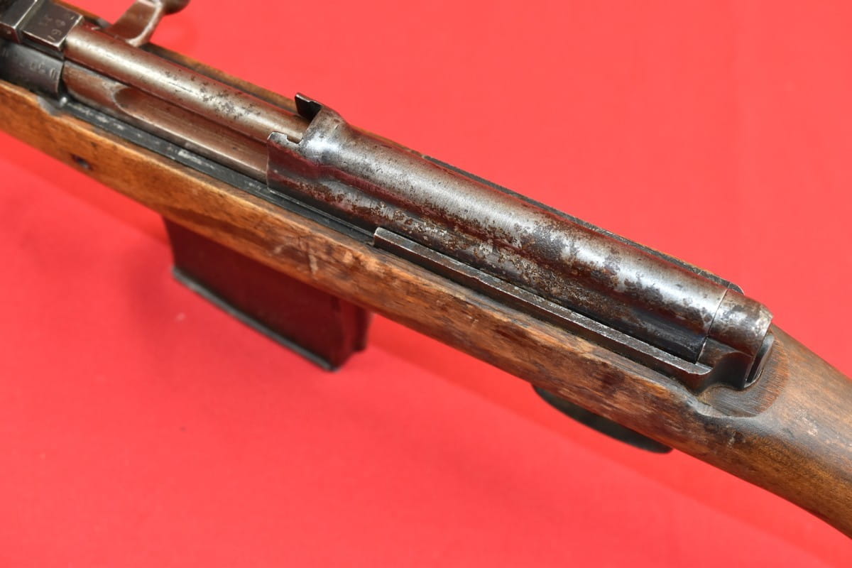 Oksyda oryginalna, z dużymi ubytkami, widoczna korozja. Karabin całkiem niedawno temu został znaleziony i zarejestrowany w jednym z krajów europejskich - gdzie procedura rejestracji takich znalezisk jest zwykłą czynnością administracyjną wykonywaną za pośrednictwem dilera z odpowiednią licencją na obrót bronią - w tym wypadku samoczynną.