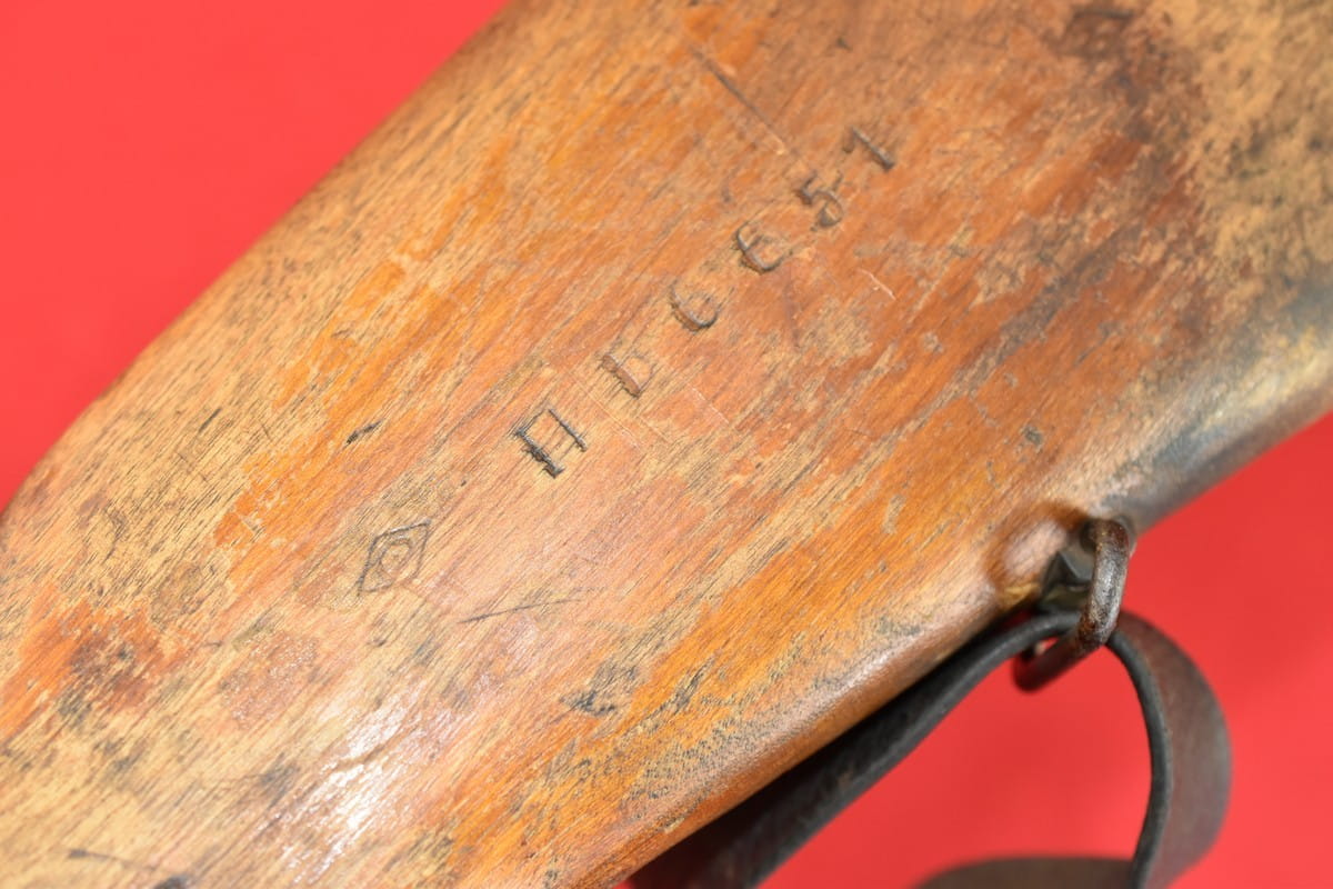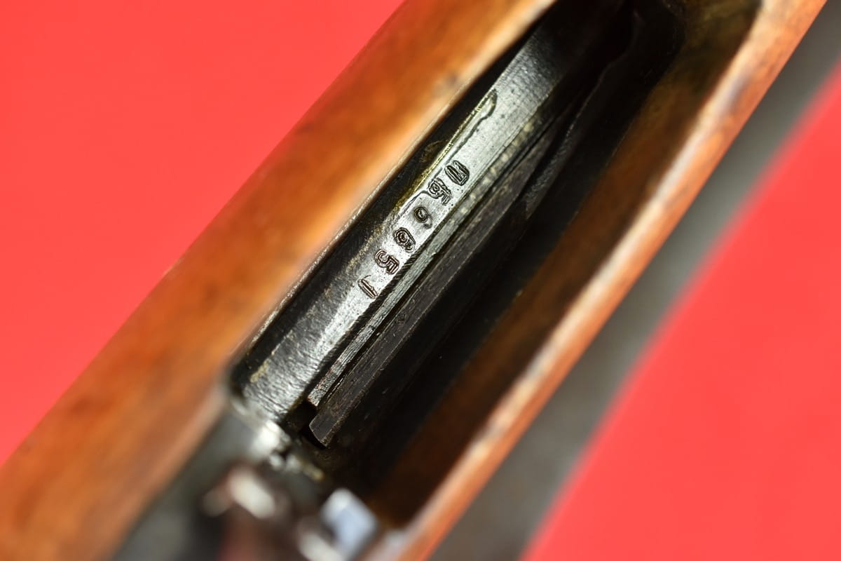 Zgodny numerycznie, łącznie z magazynkiem (!). Kolba z pełnymi oznaczeniami, nigdy nie szlifowana, nigdy nie remontowana - modelowy przykład, jak powinna wyglądać kolba tego karabinu, której nikt nigdy nie dotykał.