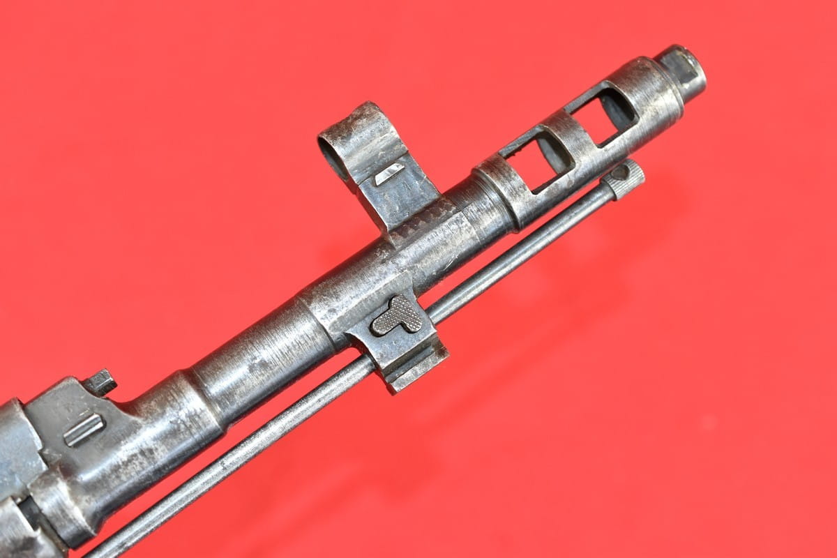 Suwadło jest w "czerwonej" oksydzie. Twierdzenie, iż suwadło w takim kolorze wskazuje na remont powojenny - jest ogólnie słuszne. Jednakże, zgodnie z literaturą i zachowanymi egzemplarzami - były serie suwadeł w takim kolorze produkowane RÓWNIEŻ w czasie wojny. Kto wie, ile takich suwadeł pozbawiono oryginalnego koloru, chcąc "przywrócić" je do stanu "oryginalnego" :-))