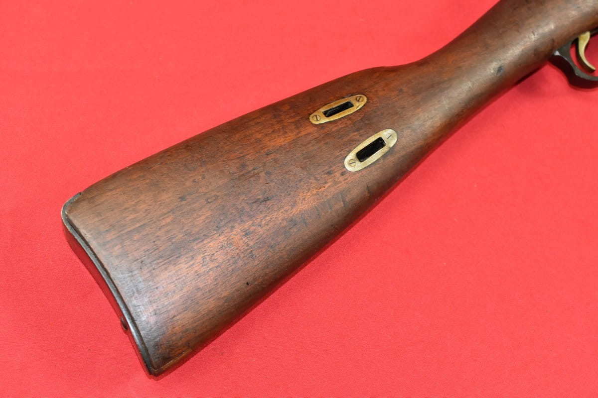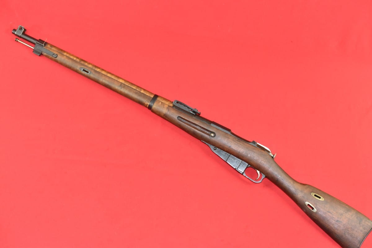 #5132 Karabin Mosin m/27 kal. 7,62x53R (7,62x54R). Produkcja fińska na bazie rosyjskich / radzieckich części (np. komory zamkowej). Wczesna produkcja - posiada na kolbie dwa otwory na troki pasa nośnego - ułatwiające noszenie broni przez narciarzy.
