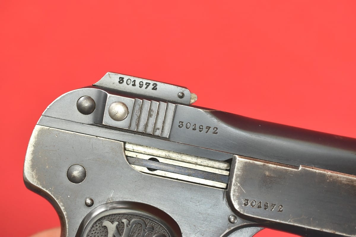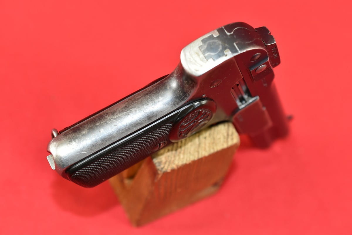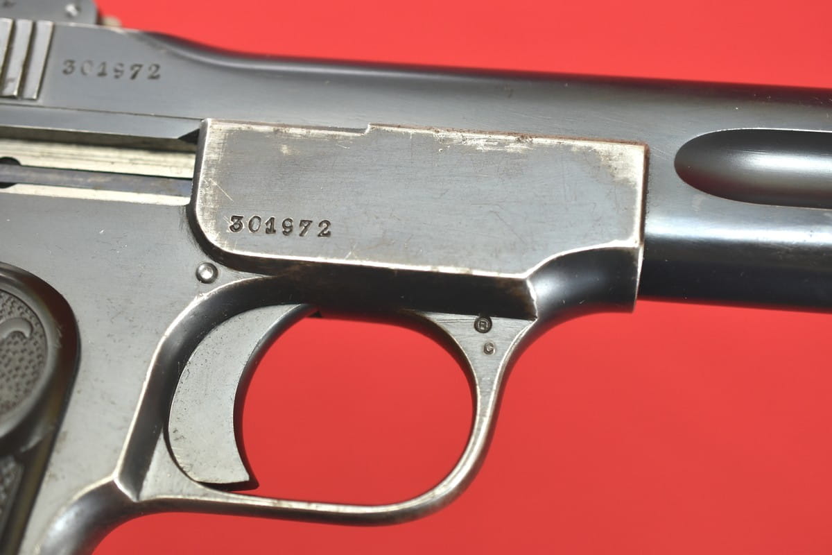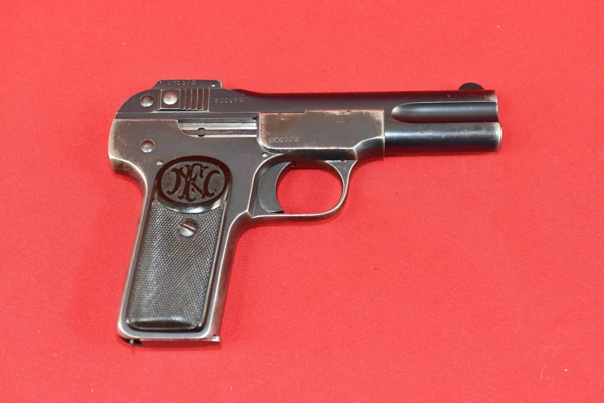 FN Model 1900 był produkowany w latach 1900-1914. Okładziny mają logo (litery "FN") stosowane mniej więcej od roku 1905.