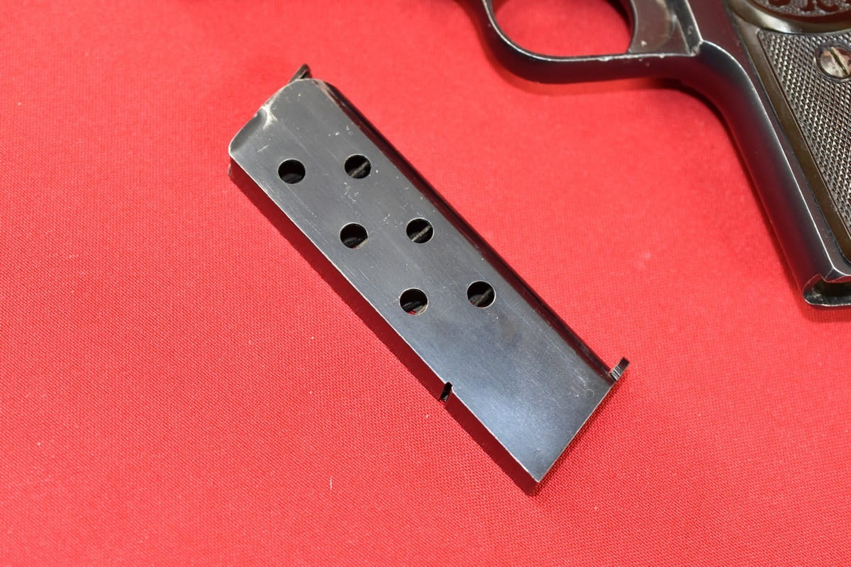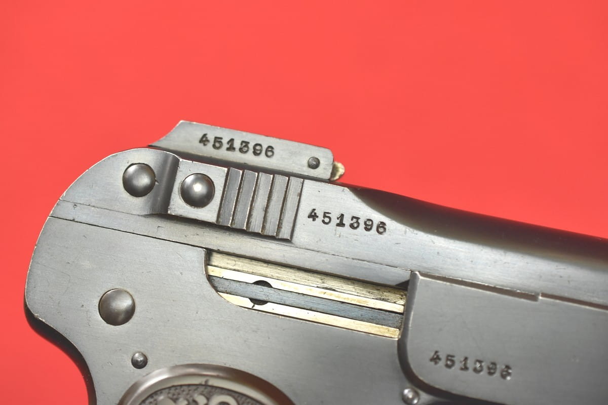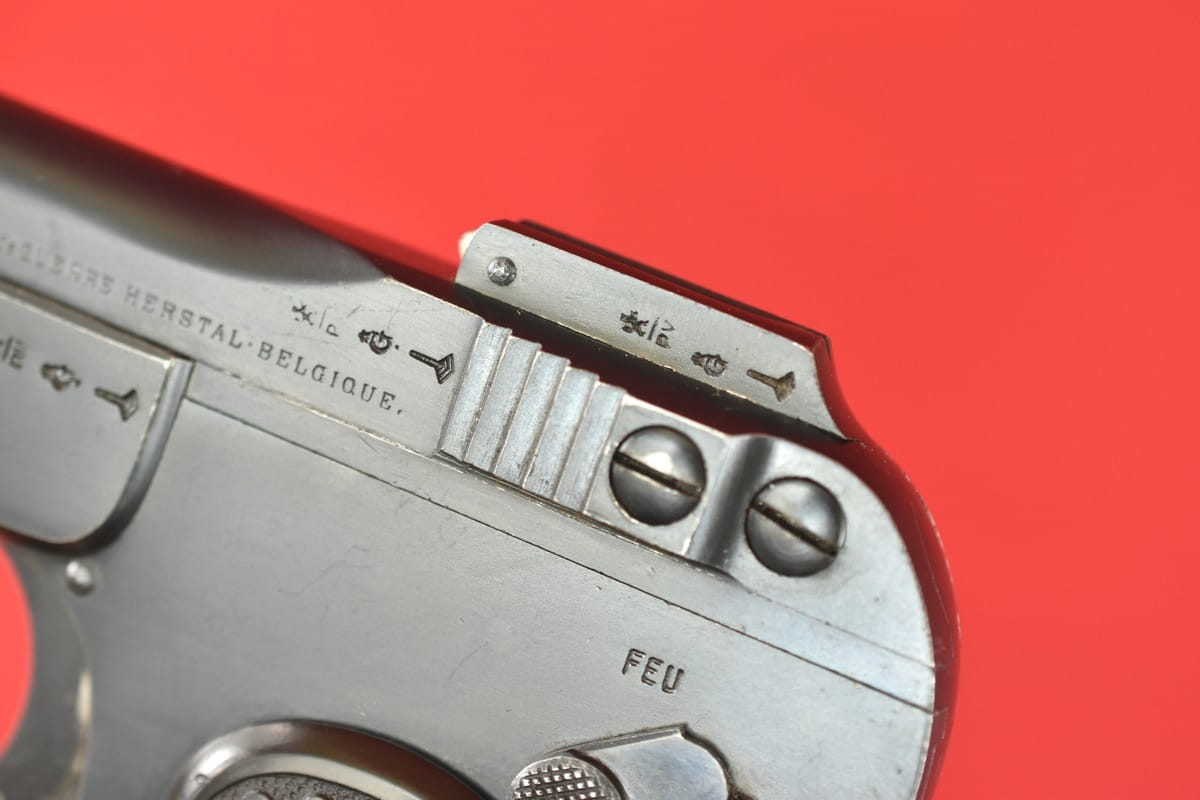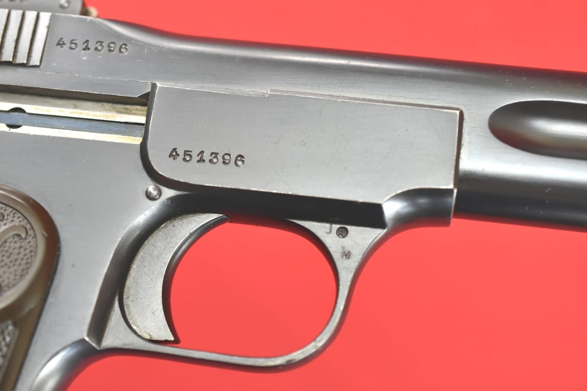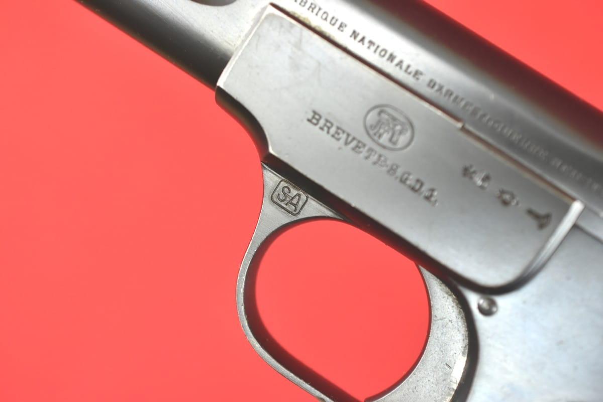 FN Model 1900 był produkowany w latach 1900-1914. Okładziny mają logo (litery "FN") stosowane mniej więcej od roku 1905.