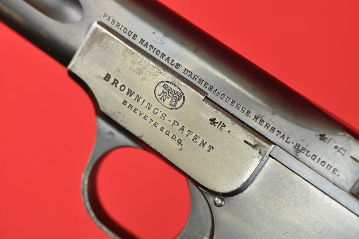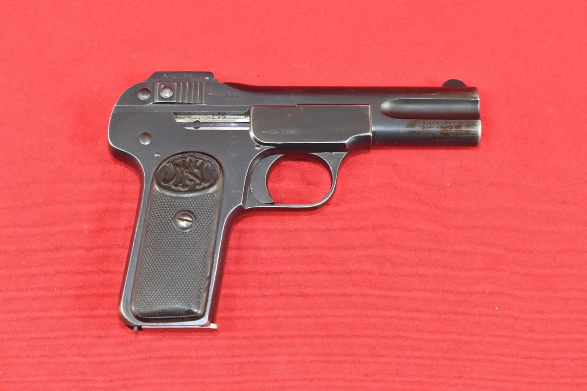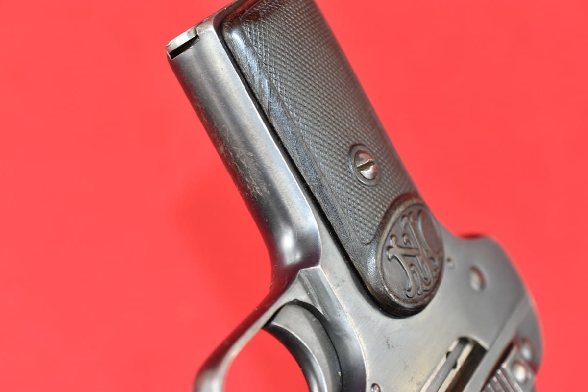 FN Model 1900 był produkowany w latach 1900-1914. Okładziny mają logo (litery "FN") stosowane mniej więcej od roku 1905.