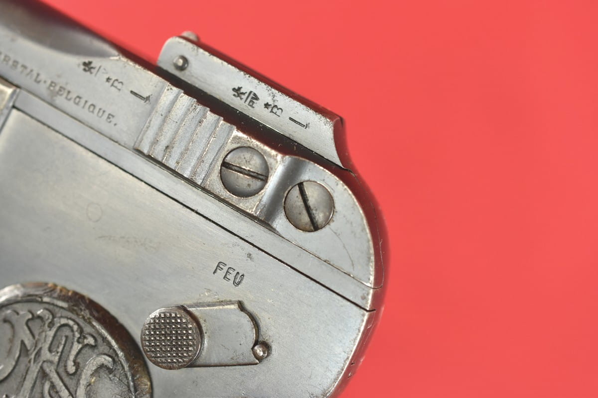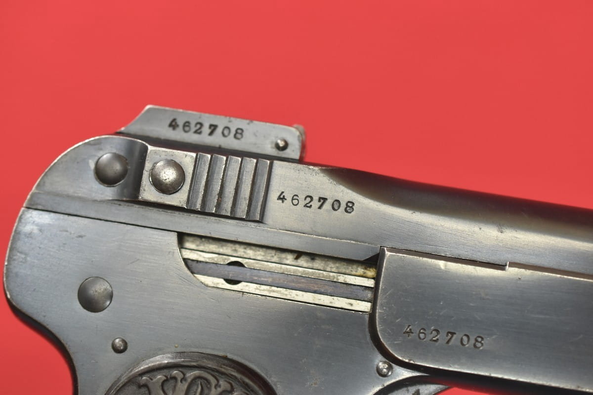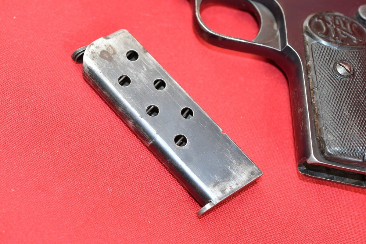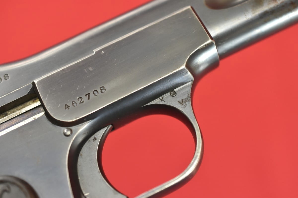 FN Model 1900 był produkowany w latach 1900-1914. Okładziny mają logo (litery "FN") stosowane mniej więcej od roku 1905.