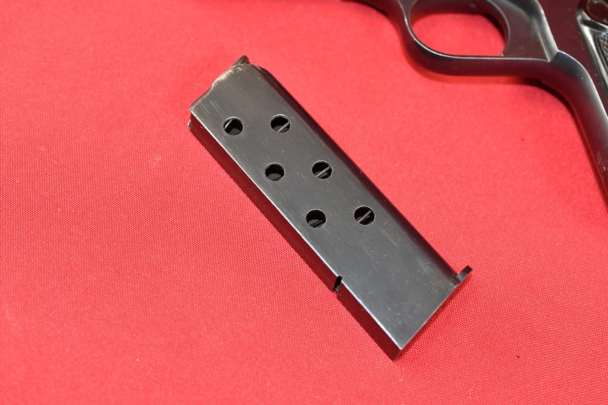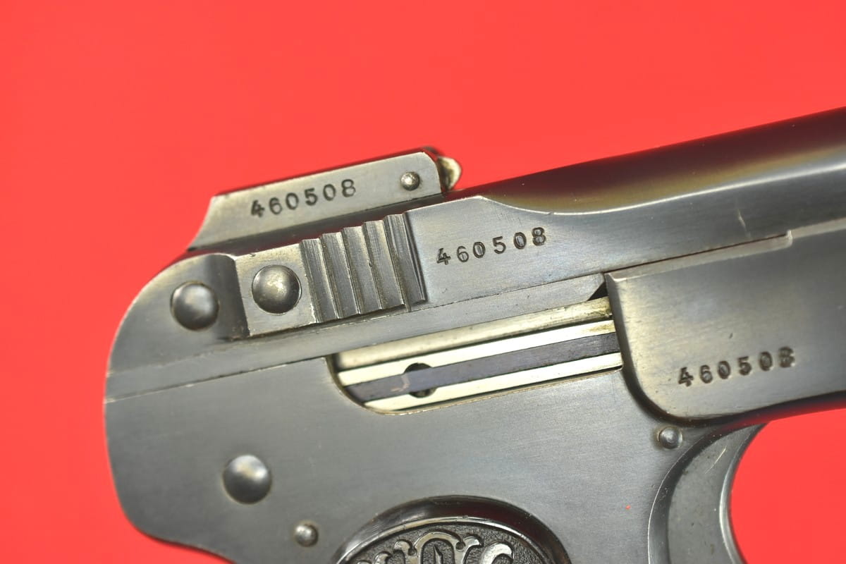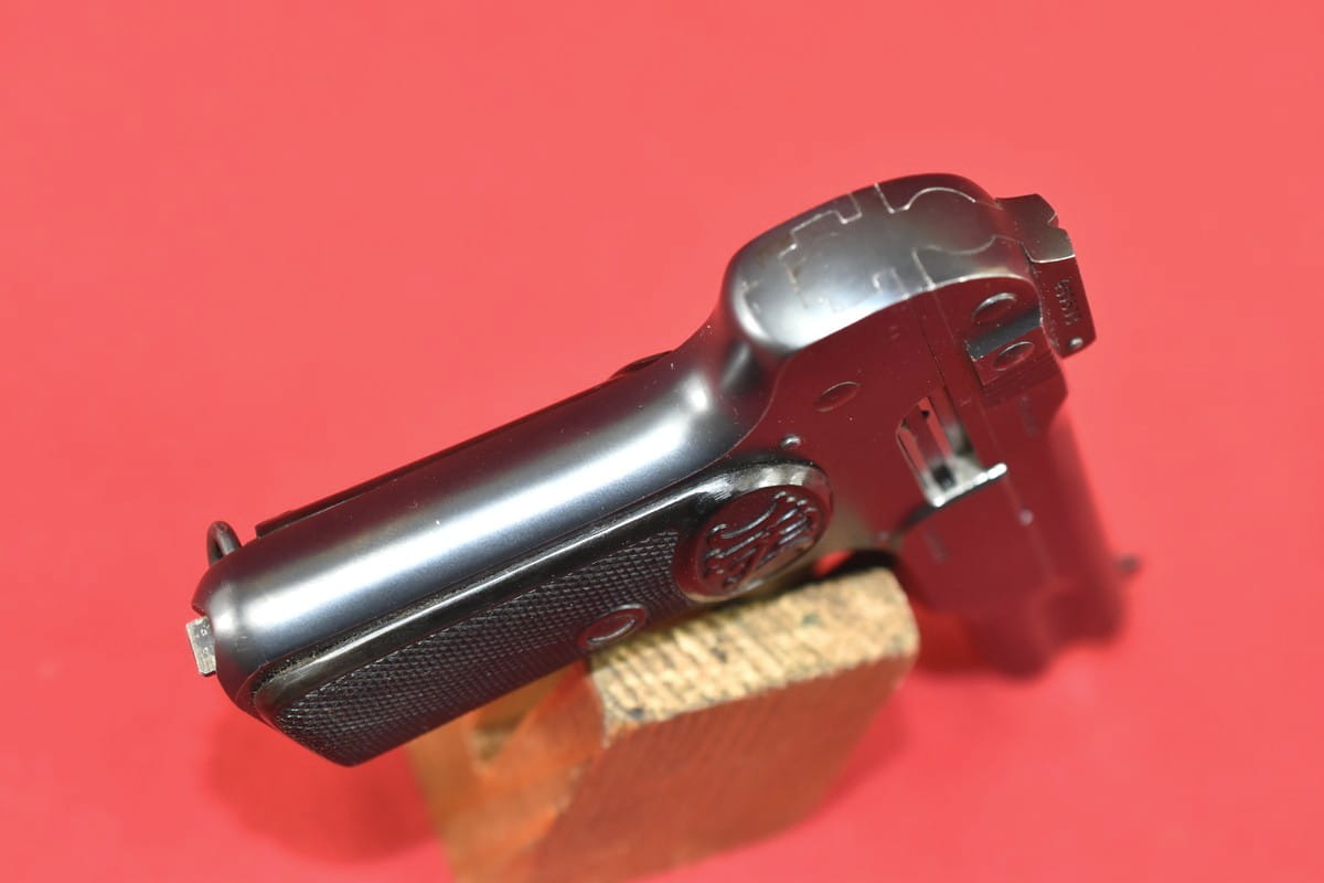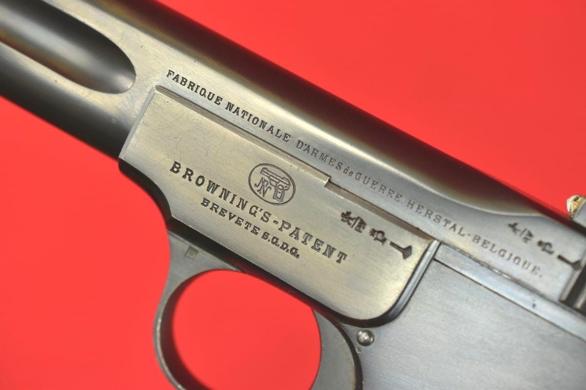 FN Model 1900 był produkowany w latach 1900-1914. Okładziny mają logo (litery "FN") stosowane mniej więcej od roku 1905.
