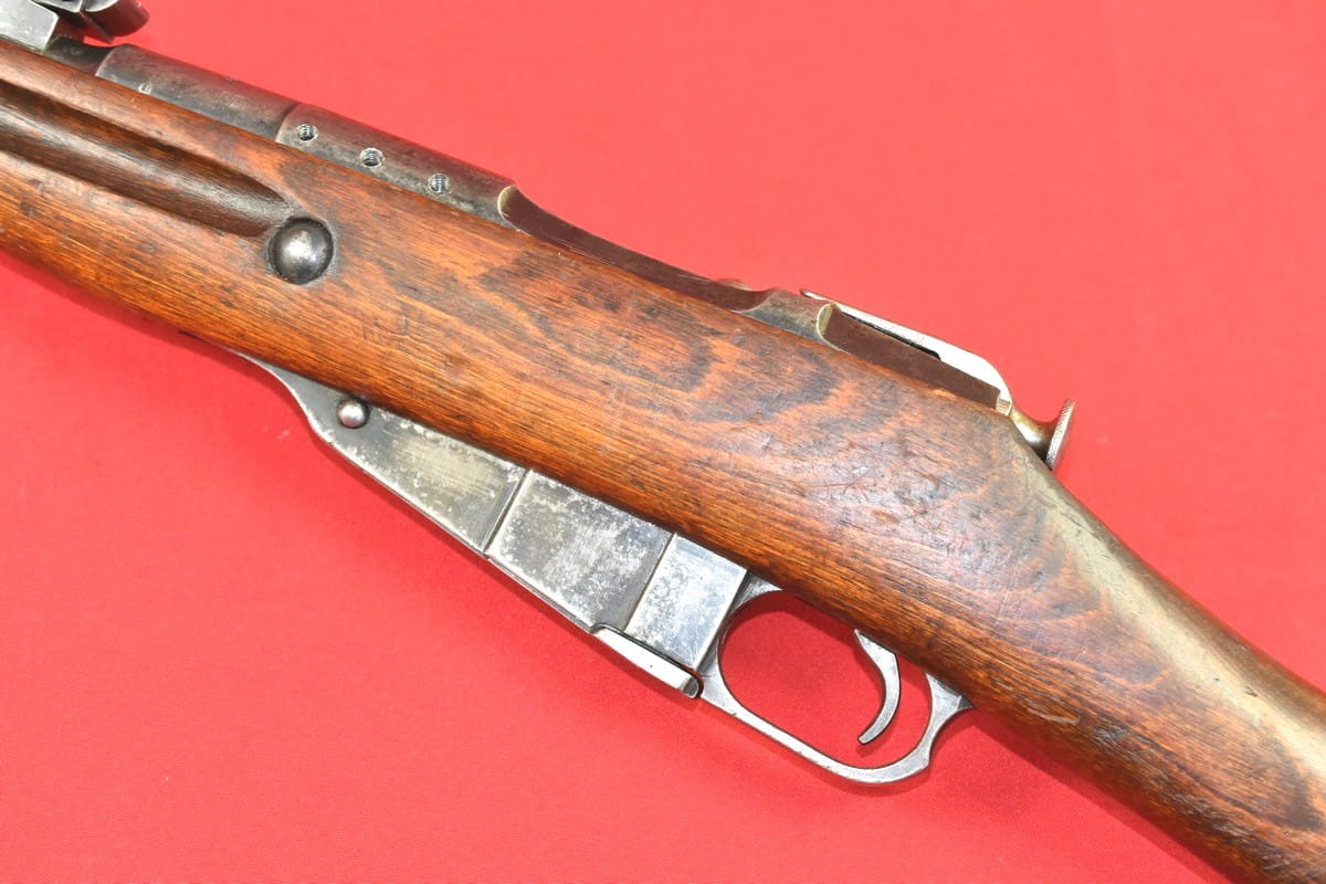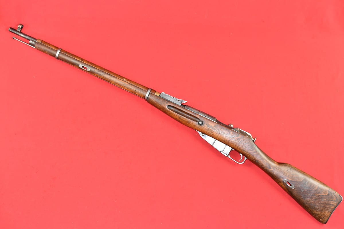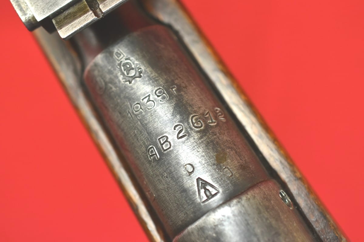 #5219 Karabin Mosin 1891/30 kal. 7,62x54R (7,62x53R). Egzemplarz wyprodukowany w roku 1939 w arsenale w Iżewsku. W trakcie II wojny światowej (w okresie Wojny Zimowej, lub Wojny Kontynuacyjnej) został zdobyty przez Finów i przyjęty na własne uzbrojenie. Stąd biorą się w takich wypadkach ingerencje wynikające z remontów: fińska oksyda, fińskie oznaczenia, wymieszane części (produkcji fińskiej, rosyjskiej, radzieckiej, amerykańskiej), przekreślone / usunięte numery.
