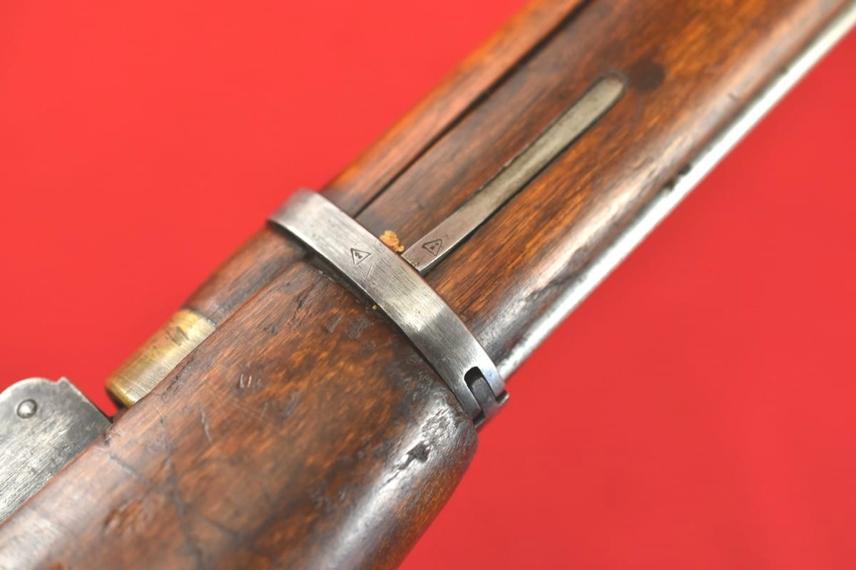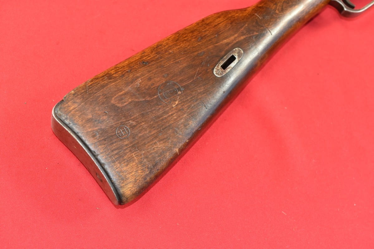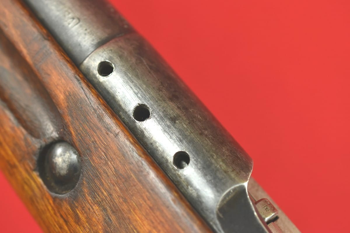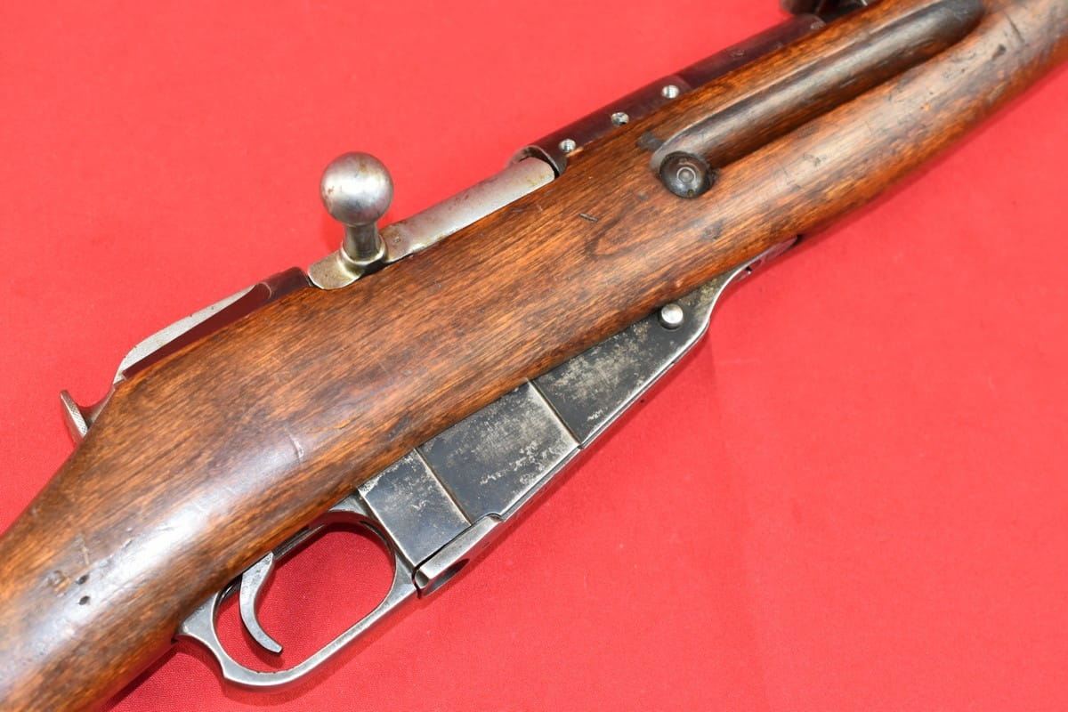 #5219 Karabin Mosin 1891/30 kal. 7,62x54R (7,62x53R). Egzemplarz wyprodukowany w roku 1939 w arsenale w Iżewsku. W trakcie II wojny światowej (w okresie Wojny Zimowej, lub Wojny Kontynuacyjnej) został zdobyty przez Finów i przyjęty na własne uzbrojenie. Stąd biorą się w takich wypadkach ingerencje wynikające z remontów: fińska oksyda, fińskie oznaczenia, wymieszane części (produkcji fińskiej, rosyjskiej, radzieckiej, amerykańskiej), przekreślone / usunięte numery.