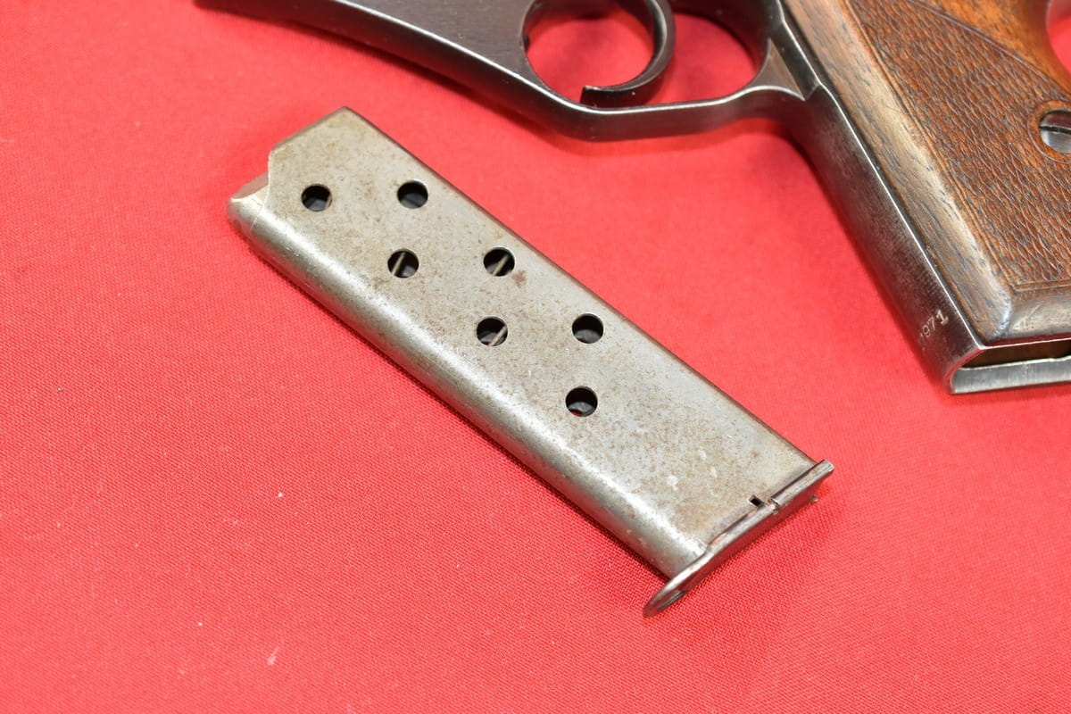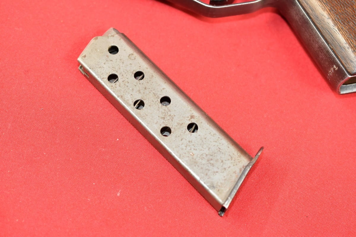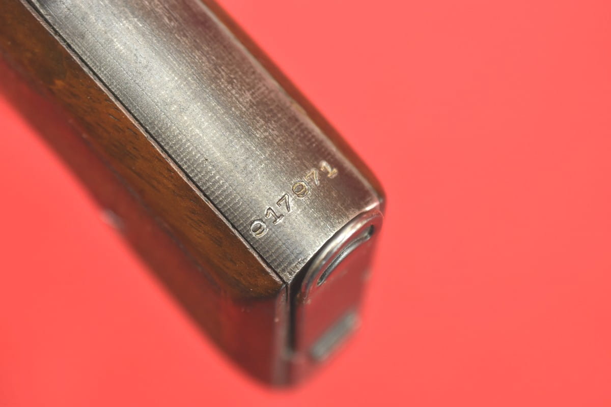 Stan bardzo dobry. Oryginalna oksyda zachowana w 99%, oryginalne, nieuszkodzone okładziny, oryginalny, nienaruszony magazynek, także z epoki. Przewód lufy - idealny, fabryczny. Zgodność numeryczna. Obecne wyłącznie oznaczenia z epoki - brak powojennych oznaczeń.