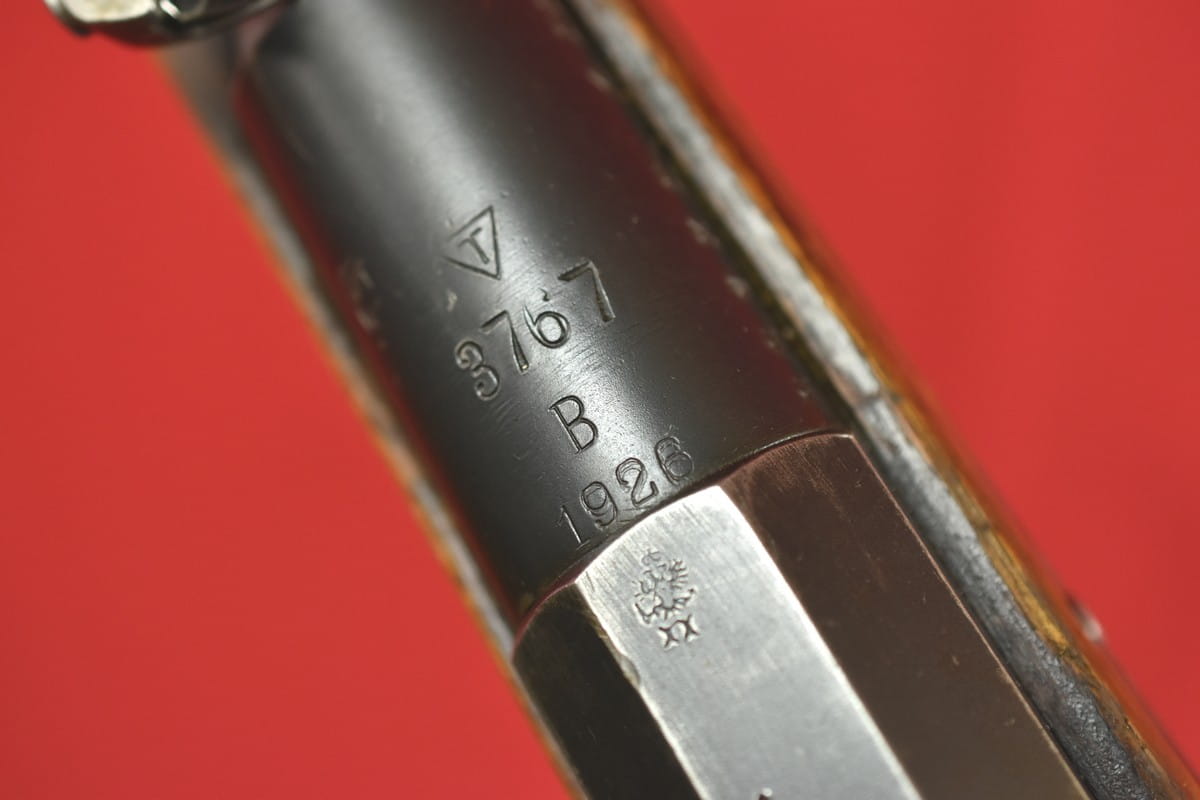 Na lufie obecne są następujące stemple: SA (Suomen Armeija), litera "B" (wymiary lufy), logo zakładów Tikkakoski - oraz data 1926.