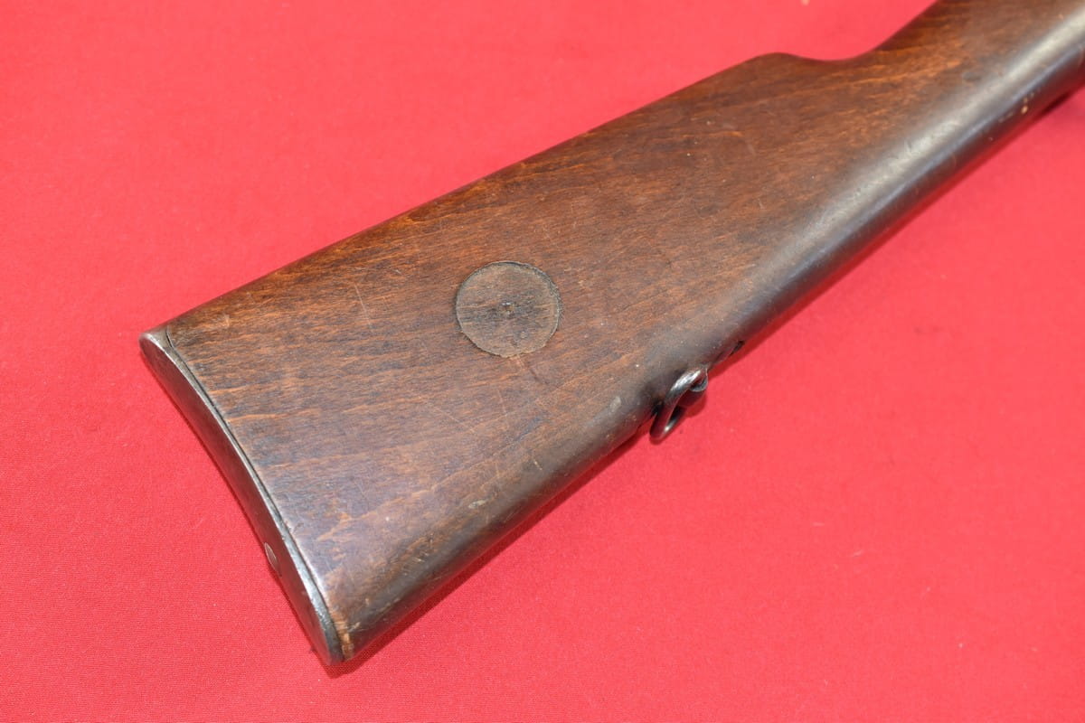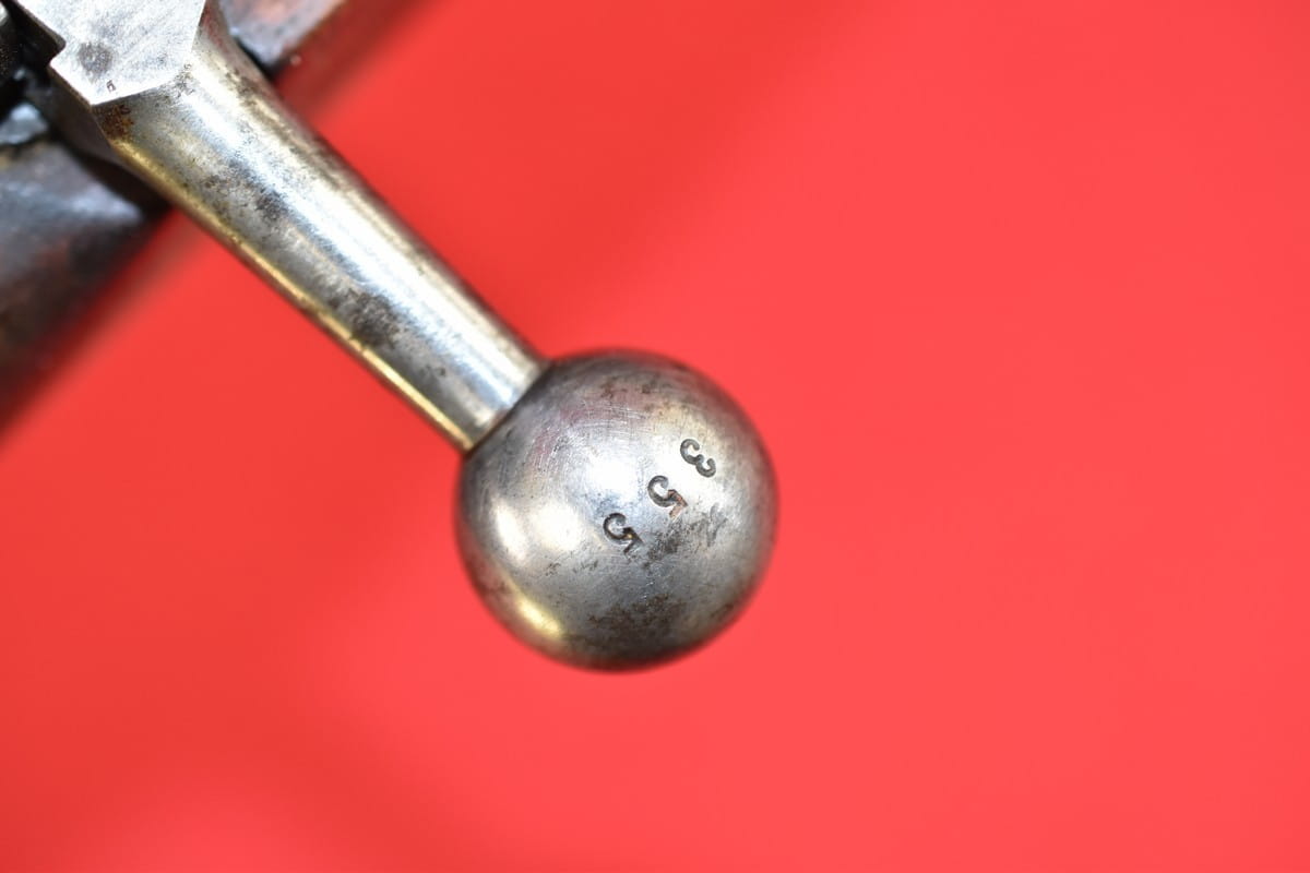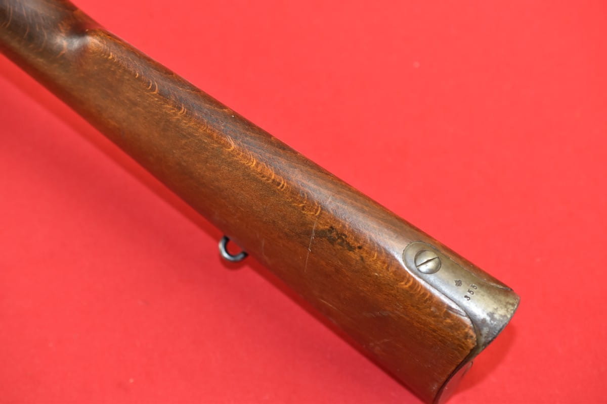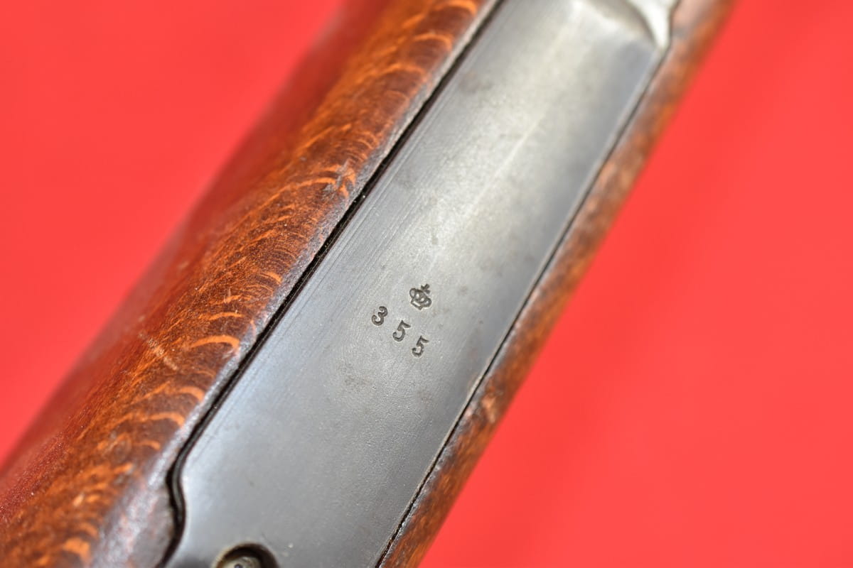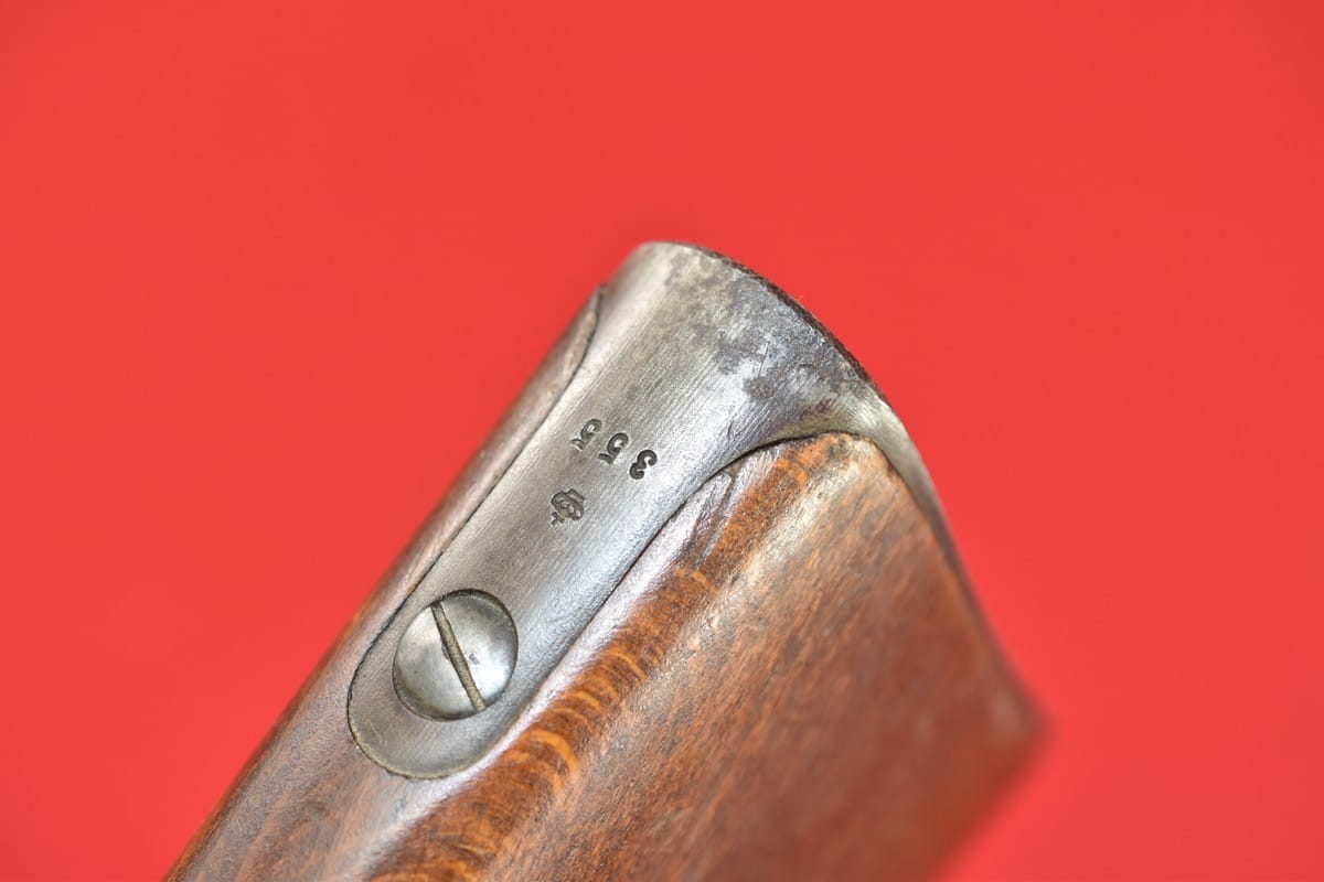 Egzemplarz zgodny numerycznie. Brak mosiężnego dysku na kolbie. Widoczne na zewnątrz wżery w niektórych miejscach - które ktoś usiłował usunąć papierem ściernym.