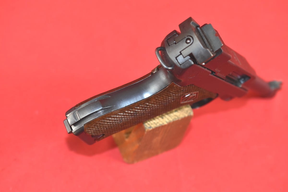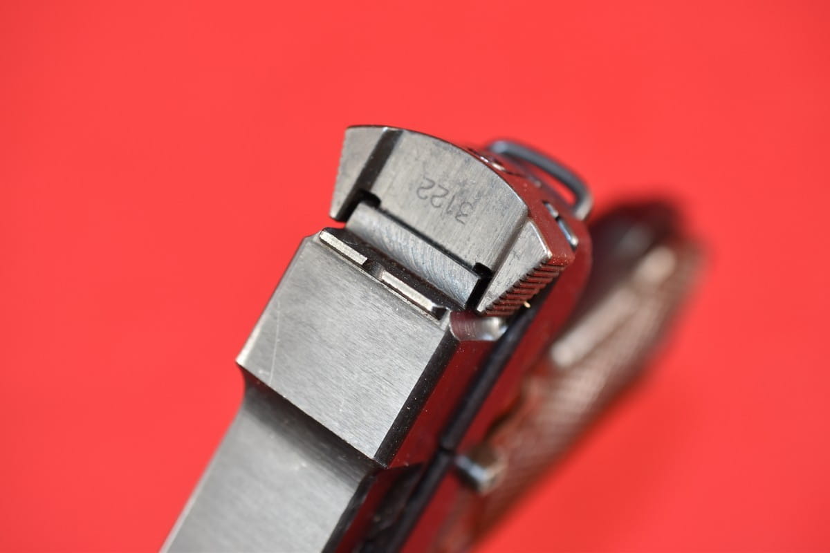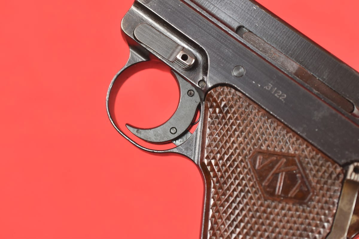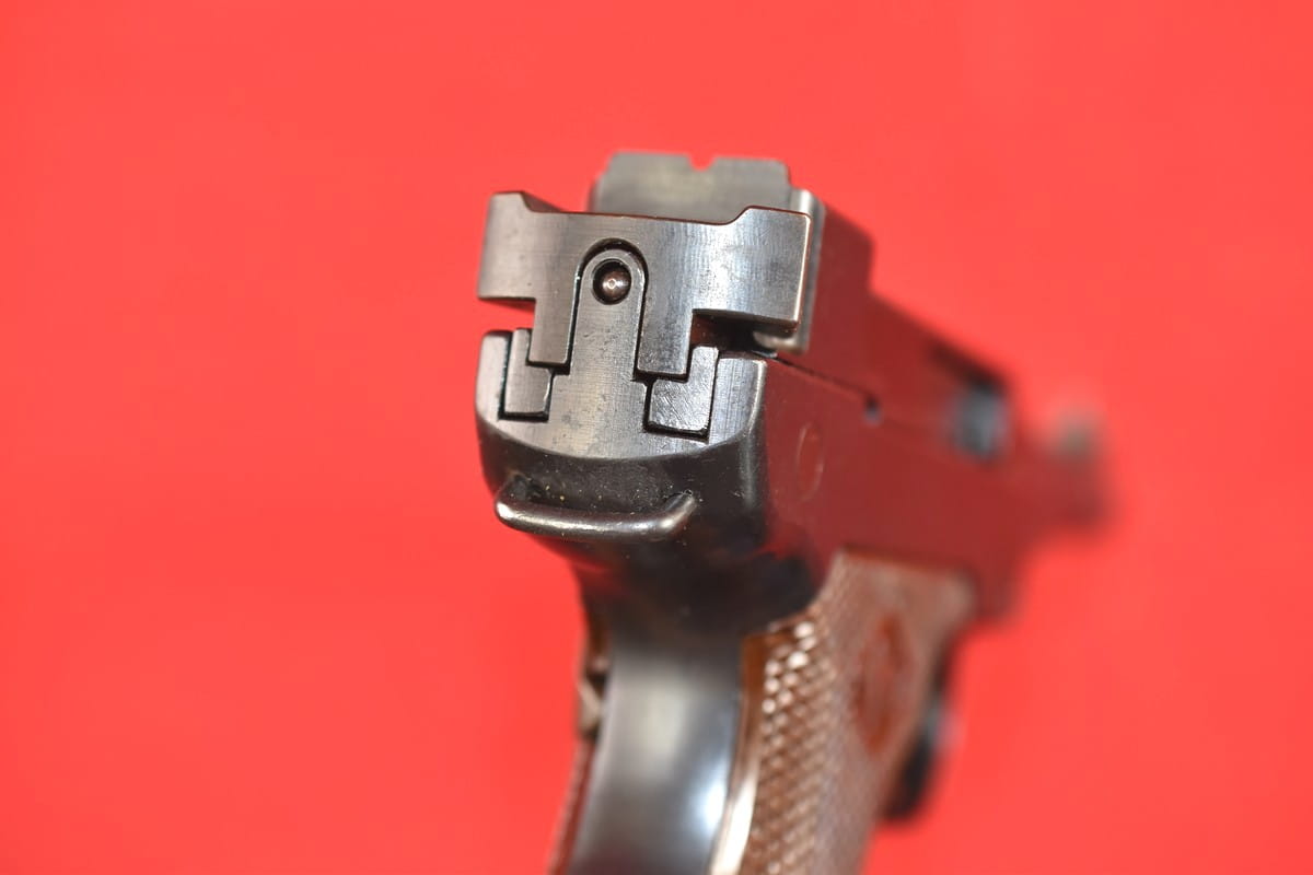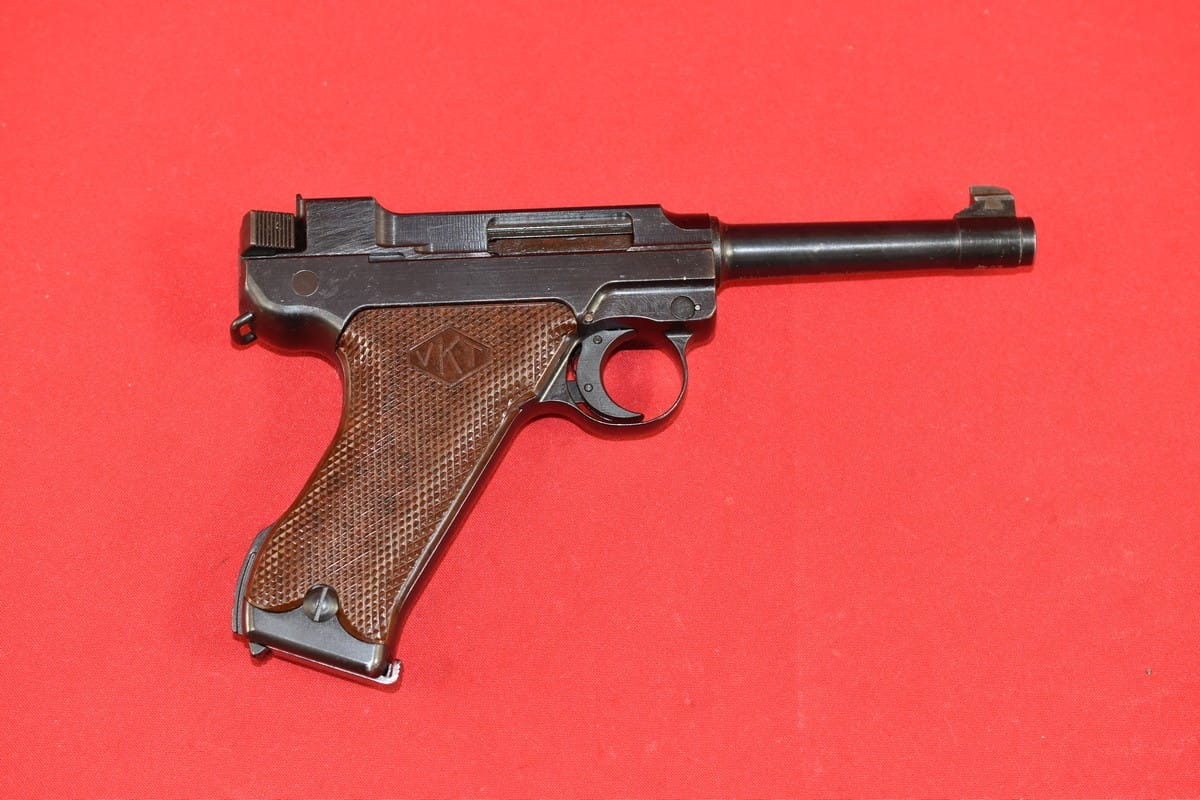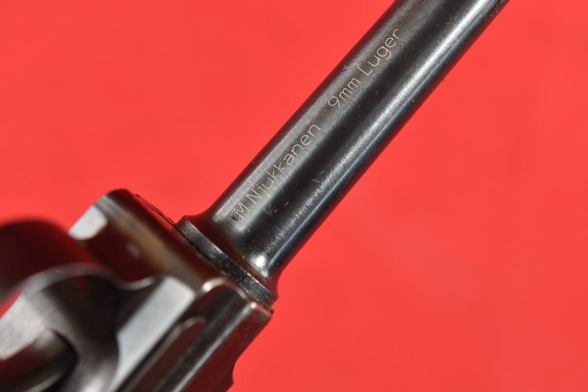 #5529 Pistolet Lahti L-35 kal. 9x19. Produkcja z tzw. I serii - z roku 1941. W latach powojennych poddany fińskiemu remontowi - podczas którego wymieniono komorę zamkową (najpewniej wraz z lufą). Na lufie obecne są stemple fińskiego atestu CiP z roku 2003 - oraz stempel firmy, która dokonała tej operacji. Sama komora zamkowa pochodzi z partii części zamiennych do L-35 wyprodukowanej w latach siedemdziesiątych.