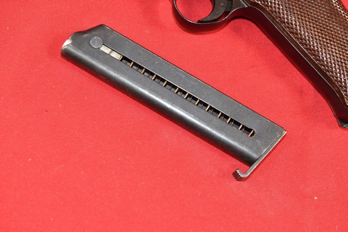 Magazynek produkcji szwedzkiej - w odróżnieniu od fińskiego oksydowany na czarno.