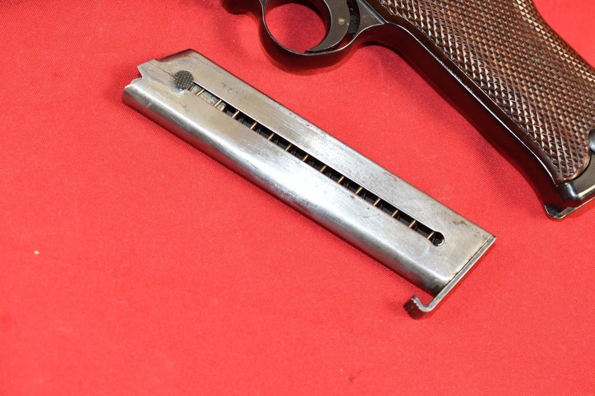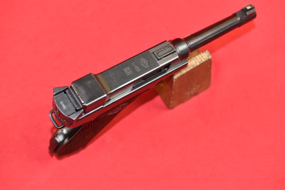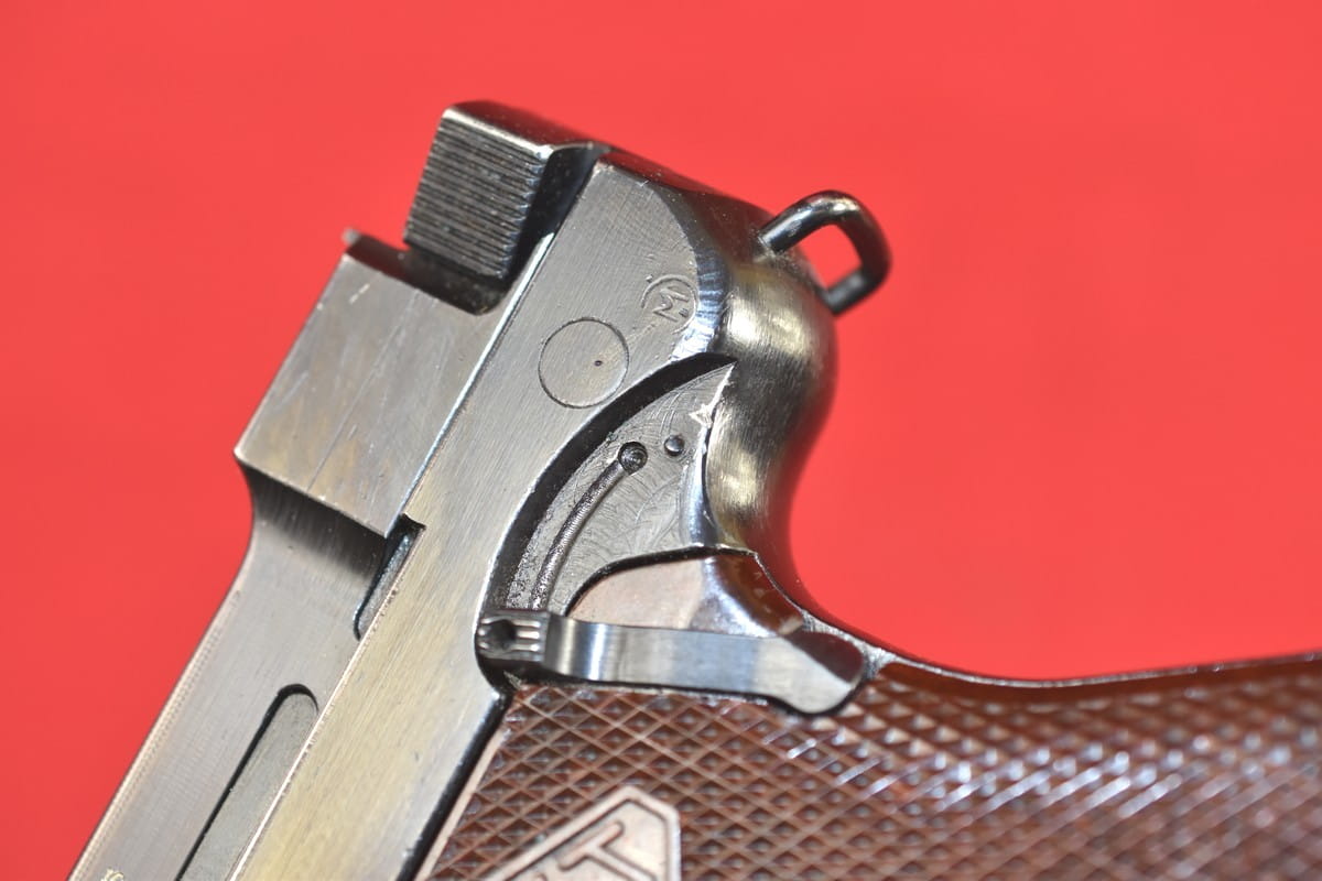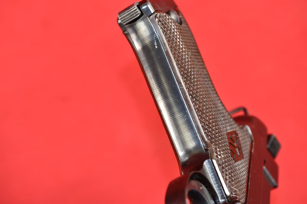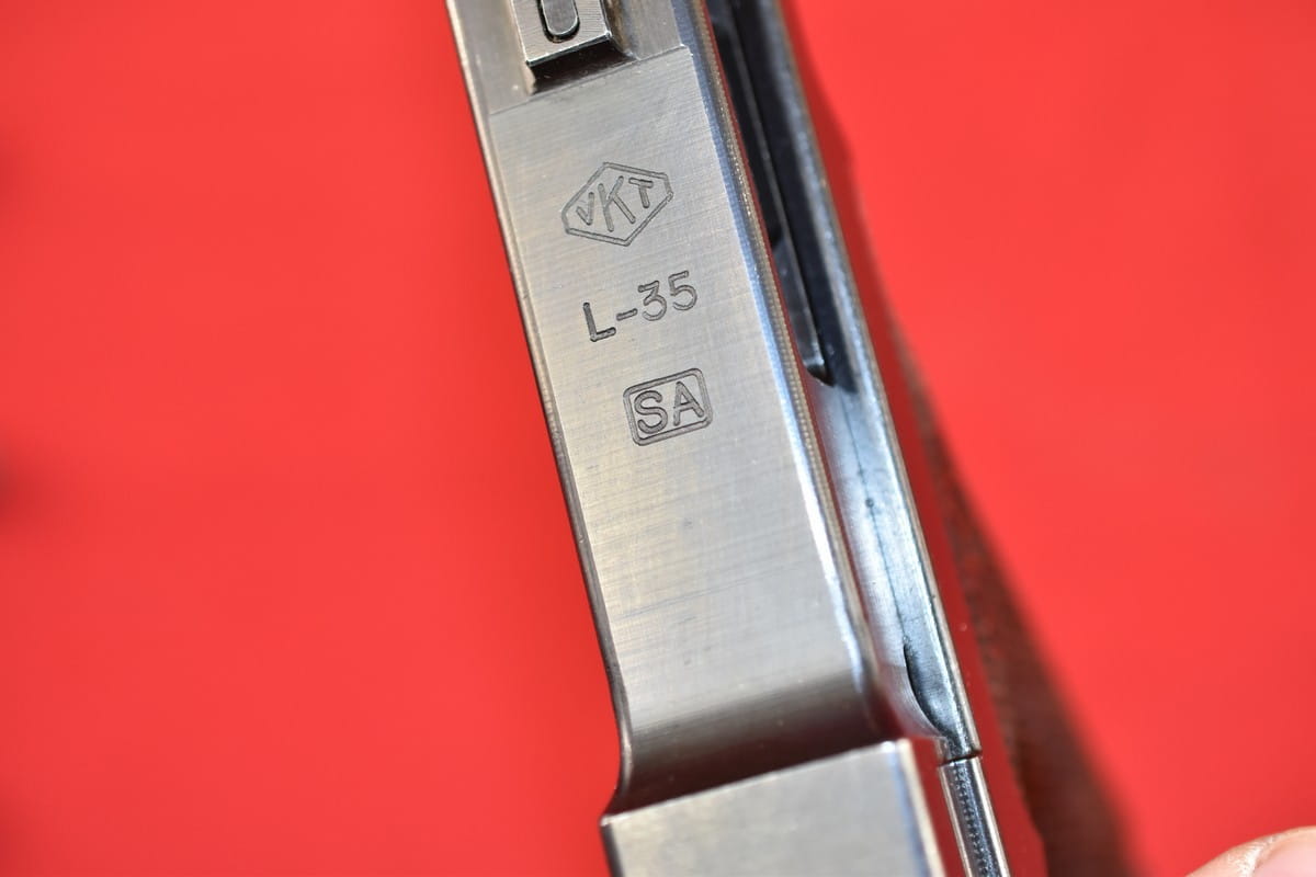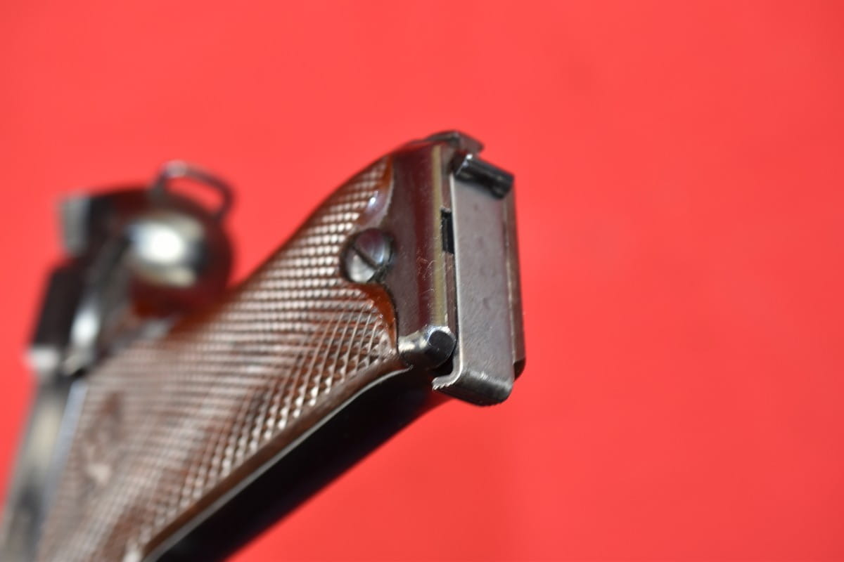 #5536 Pistolet Lahti L-35 kal. 9x19. Powojenna produkcja komercyjna na bazie części z odzysku (komora zamkowa z fachowo usuniętym numerem seryjnym) oraz części zapasowych - np. szkieletu z IV serii produkcyjnej (już bez zaczepu kaburokolby).