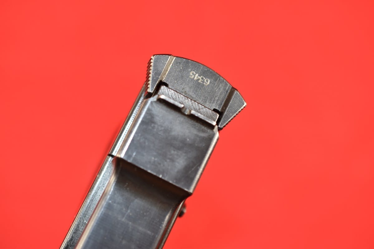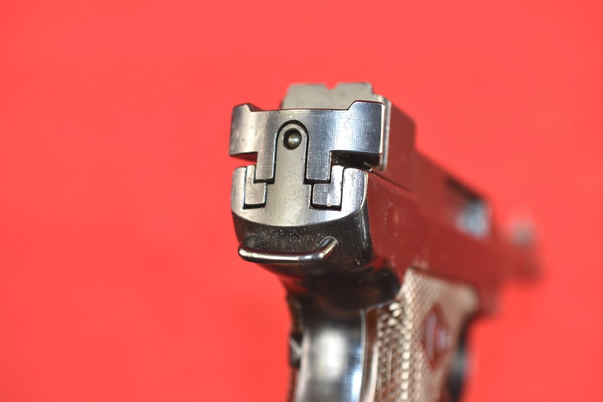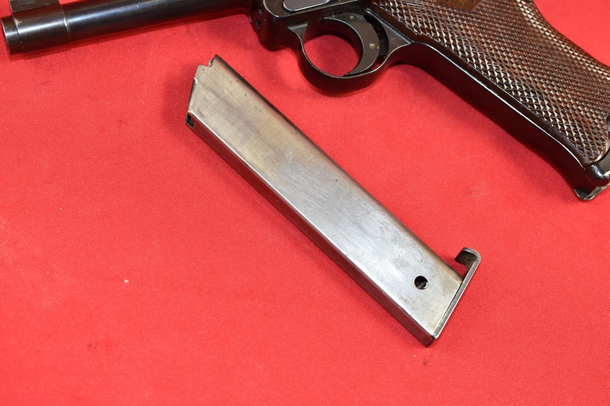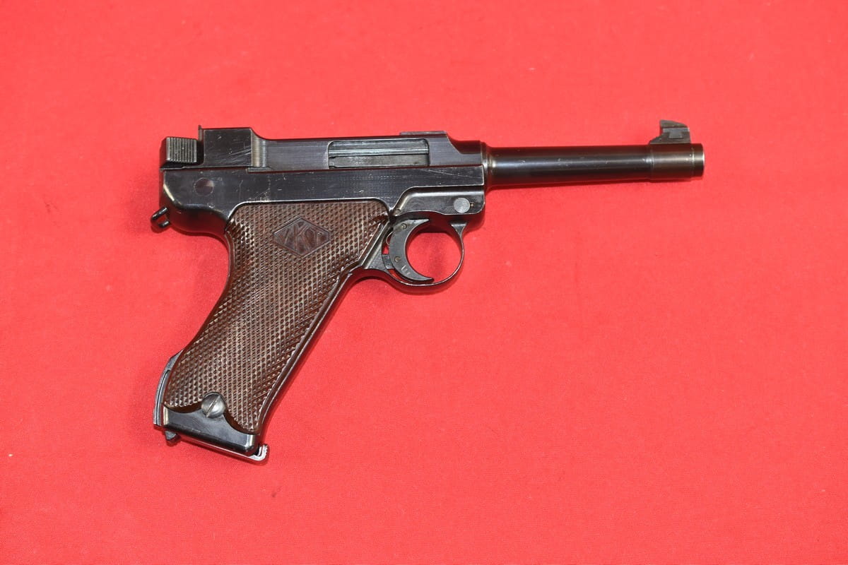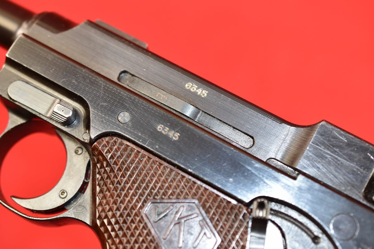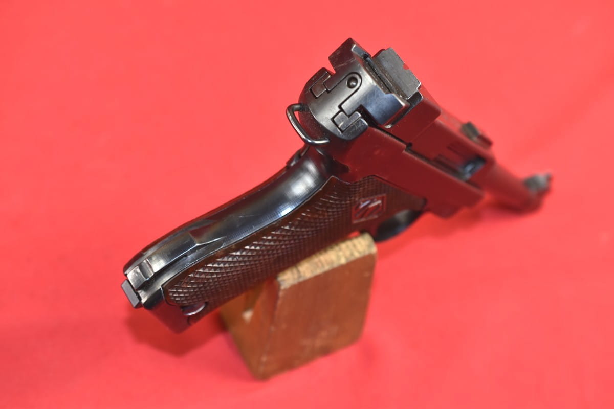 #5536 Pistolet Lahti L-35 kal. 9x19. Powojenna produkcja komercyjna na bazie części z odzysku (komora zamkowa z fachowo usuniętym numerem seryjnym) oraz części zapasowych - np. szkieletu z IV serii produkcyjnej (już bez zaczepu kaburokolby).
