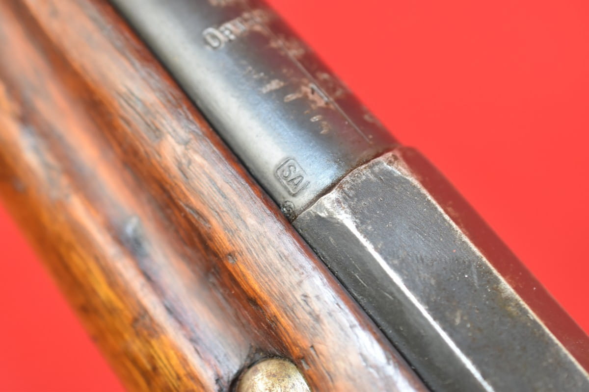 Na kolbie obecny jest mosiężny dysk wskazujący na przynależność tego egzemplarza do szkoły oficerów rezerwy. Uwagę zwraca również fabryczna oksyda - nie fińska. Na lufie obecny jest stempel armii fińskiej w postaci prostokąta z literami "SA" - czyli Suomen Armeija. Z kolei stempel "D" oznacza, że broń została przystosowana do fińskiego naboju D166.