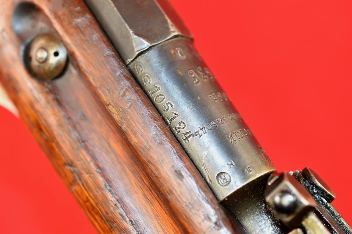 #5648 Karabin Mosin 1891 kal. 7,62x54R. Produkcja rosyjskiego arsenału w Iżewsku z roku 1906. Broń po 1918 znalazła się w Finlandii, gdzie była używana w armii. Stąd wzięły się fińskie ingerencje: fińska oksyda, fińskie oznaczenia, wymieszane części - fińskiej / radzieckiej / rosyjskiej produkcji, oraz przekreślone / usunięte / uzgodnione numery.