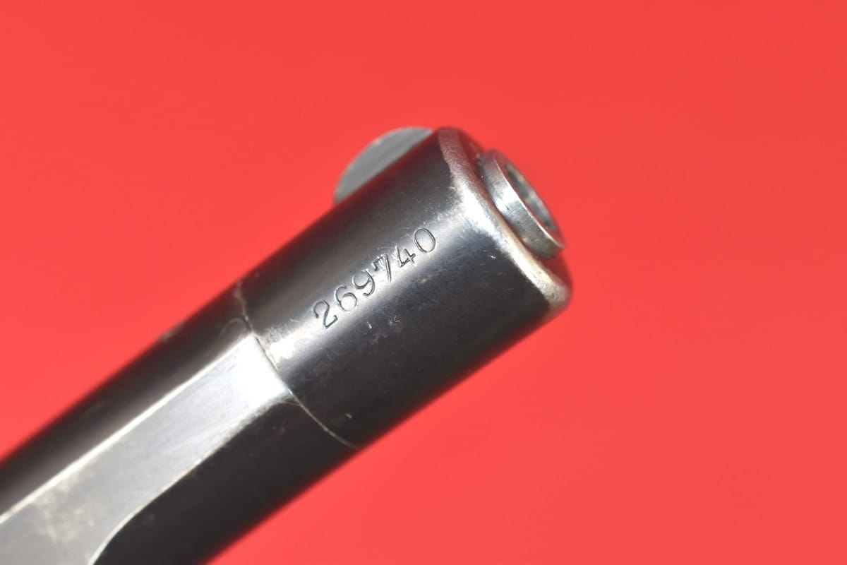 Broń zgodna numerycznie, oksyda oryginalna. Magazynek z epoki (nie powojenny).