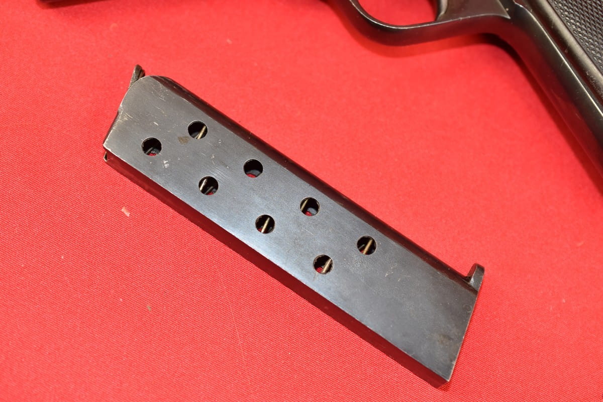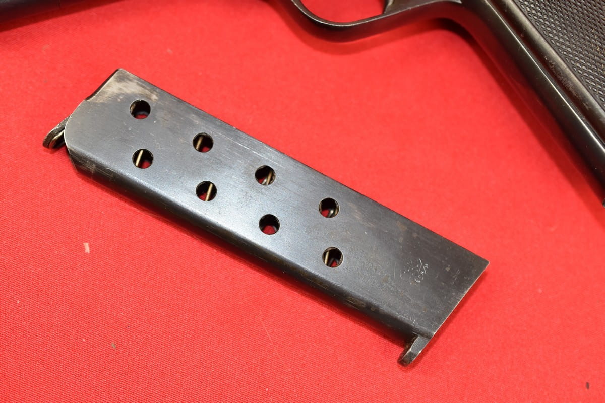 Broń zgodna numerycznie, oksyda oryginalna. Magazynek z epoki (nie powojenny).
