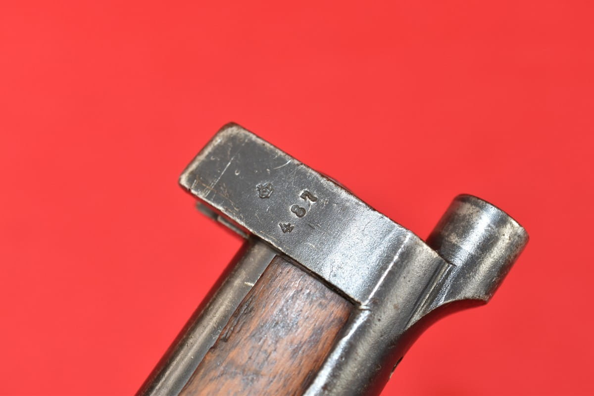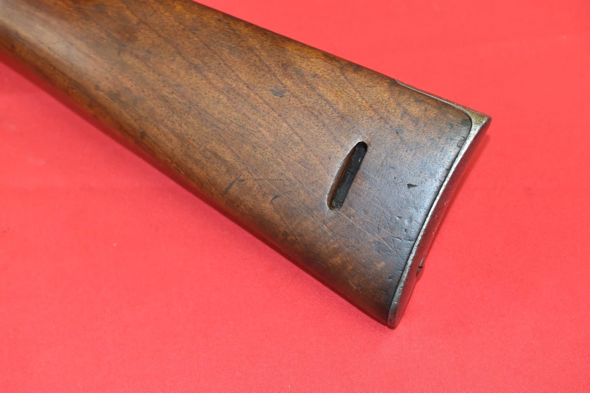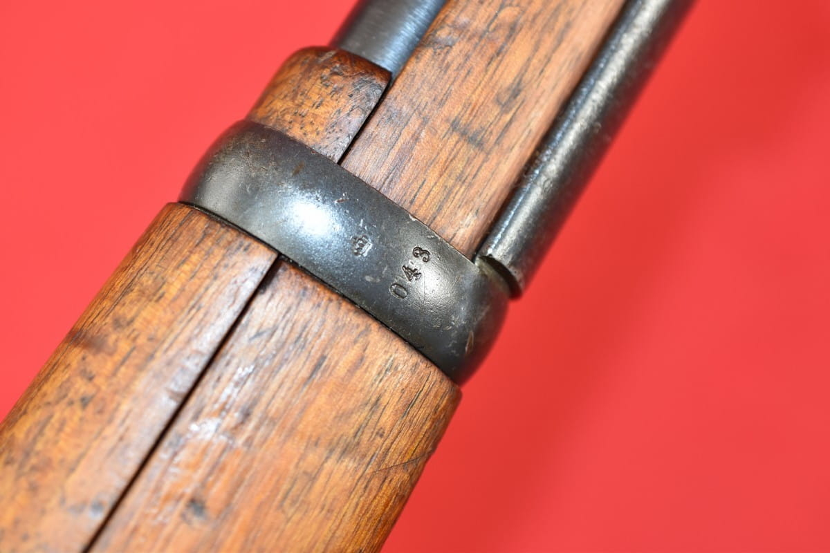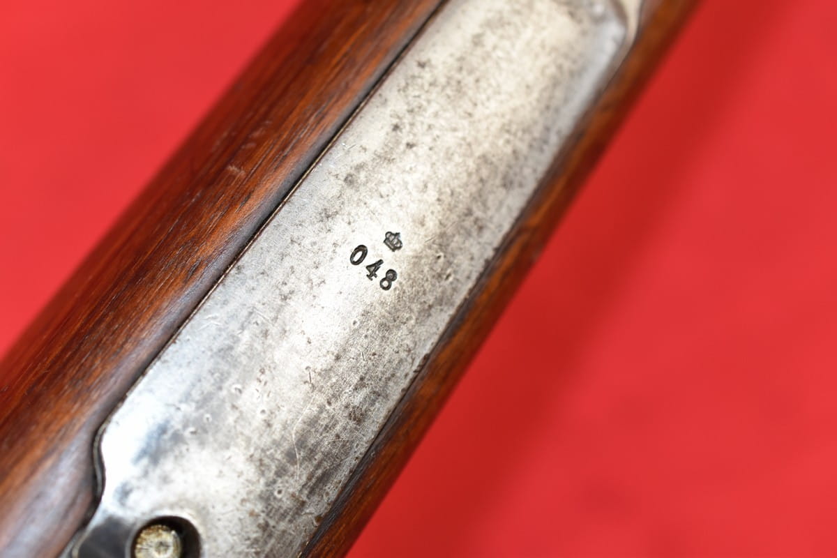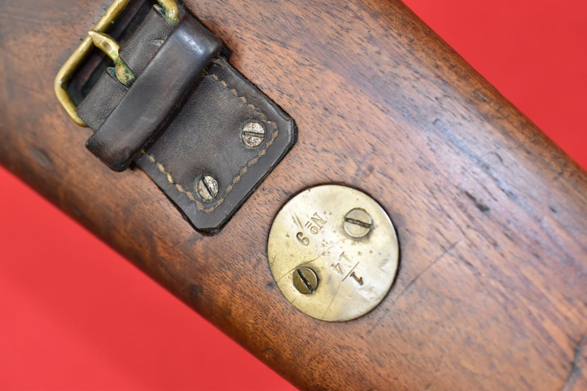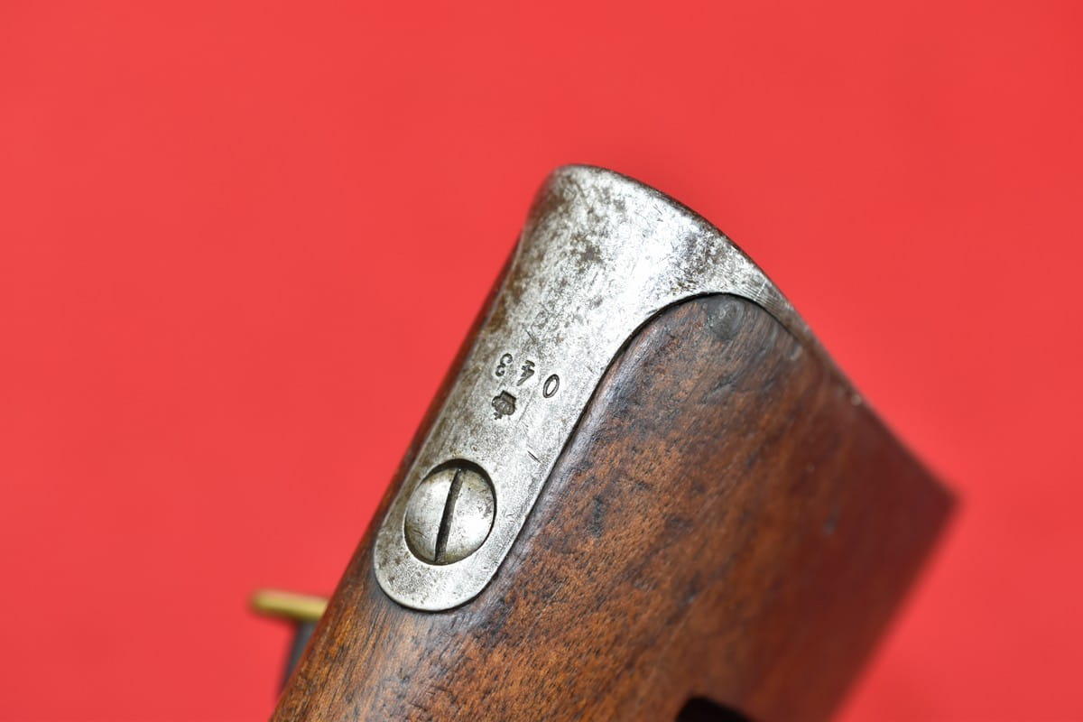Egzemplarz niezgodny numerycznie. Na kolbie obecny jest oryginalny, mosiężny dysk z oznaczeniem jednostki, w jakiej był używany (jednostka zaopatrzenia).